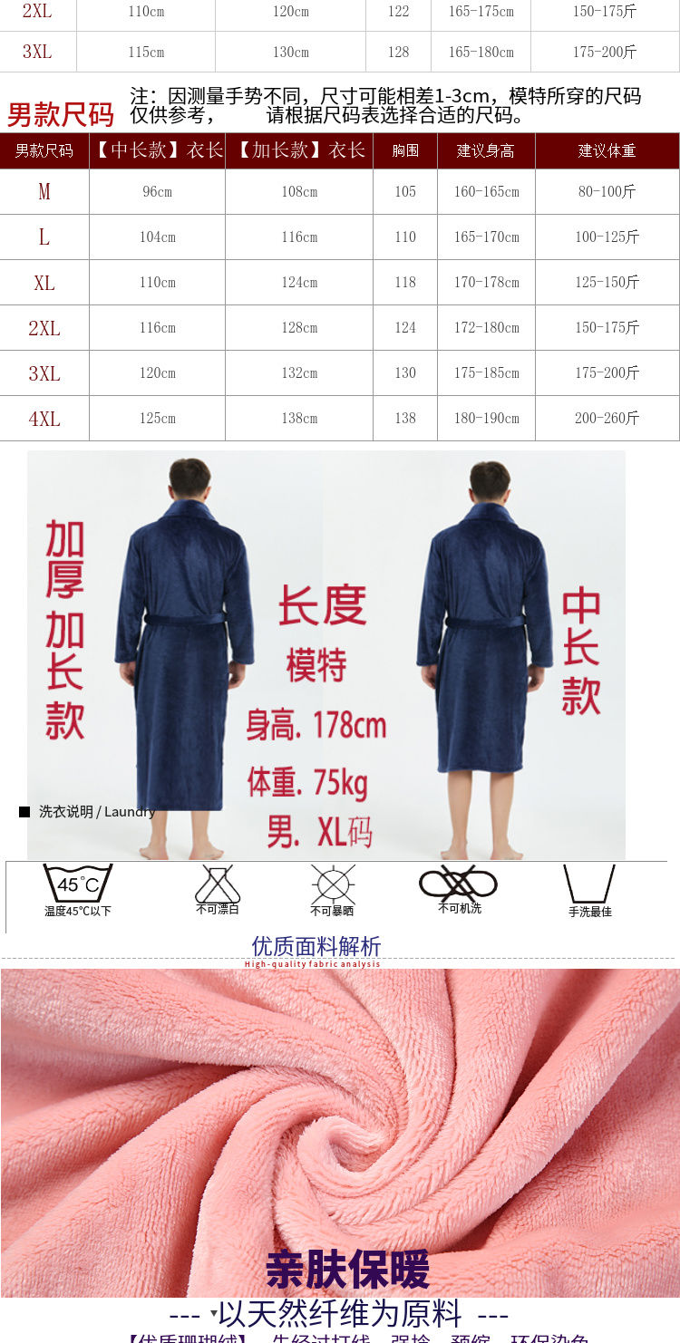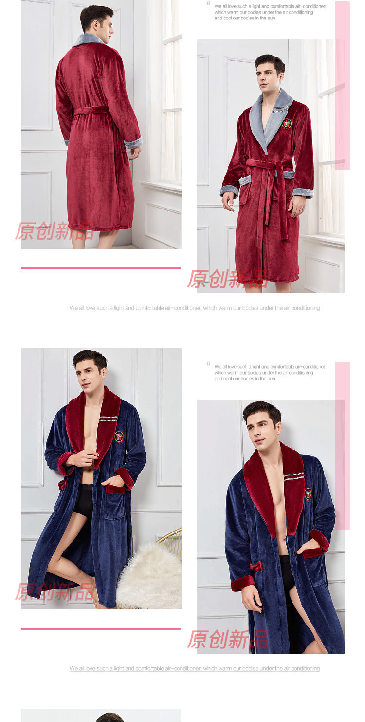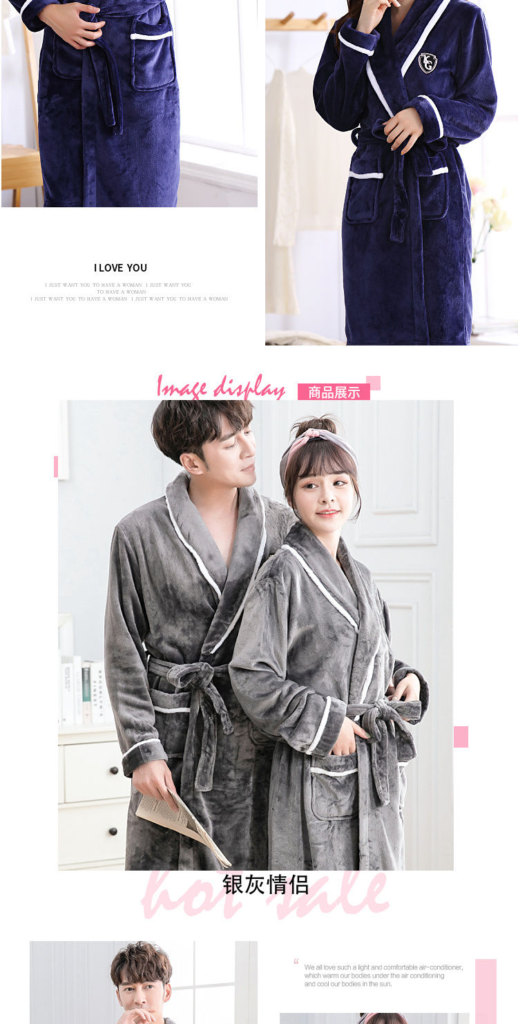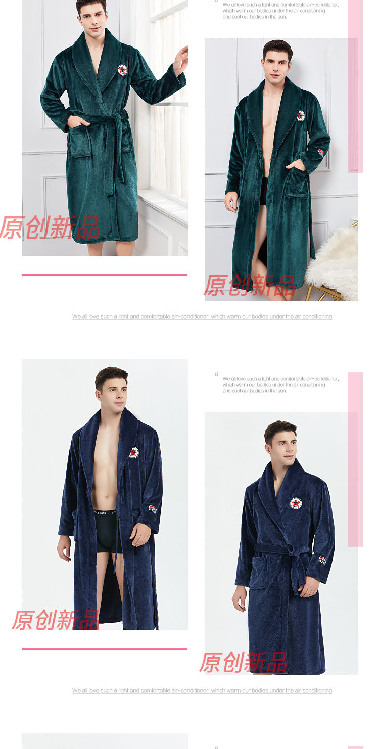【原创正品】冬季珊瑚绒情侣睡袍女加厚法兰绒浴袍男士大码家居服