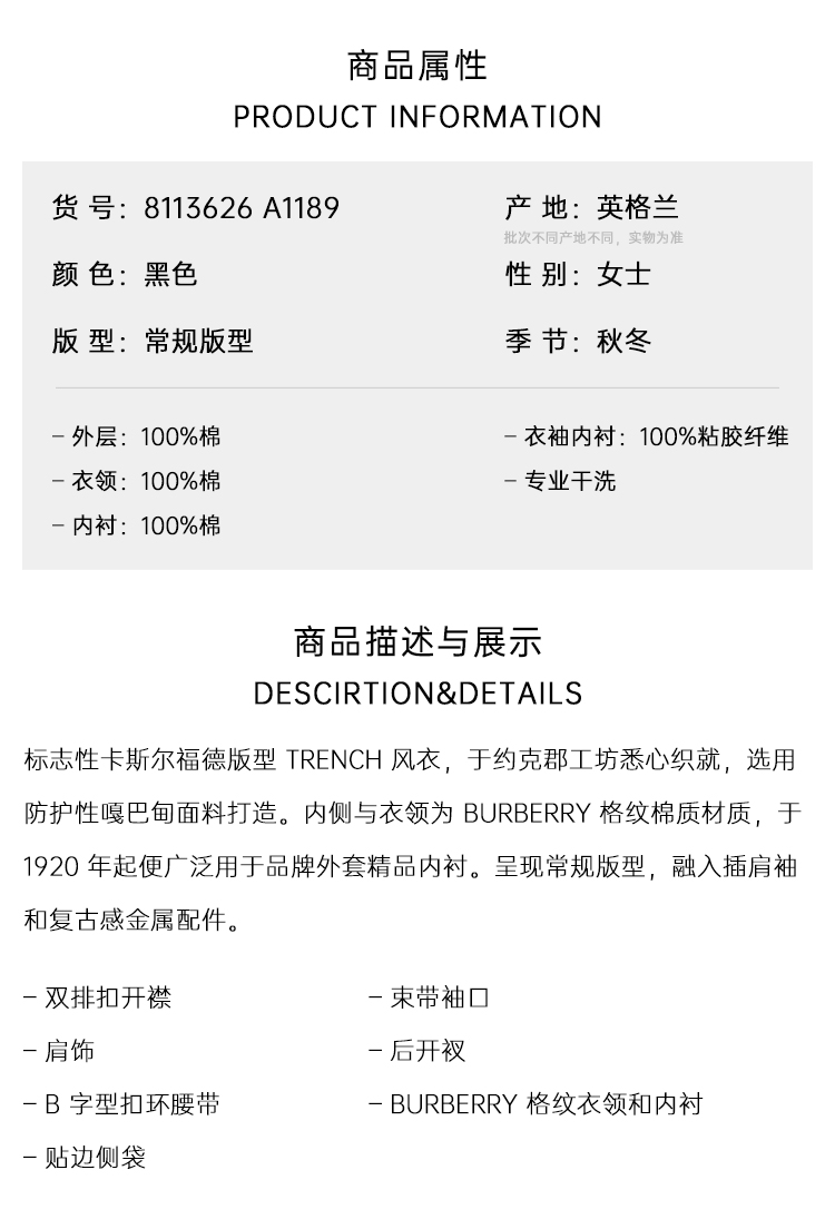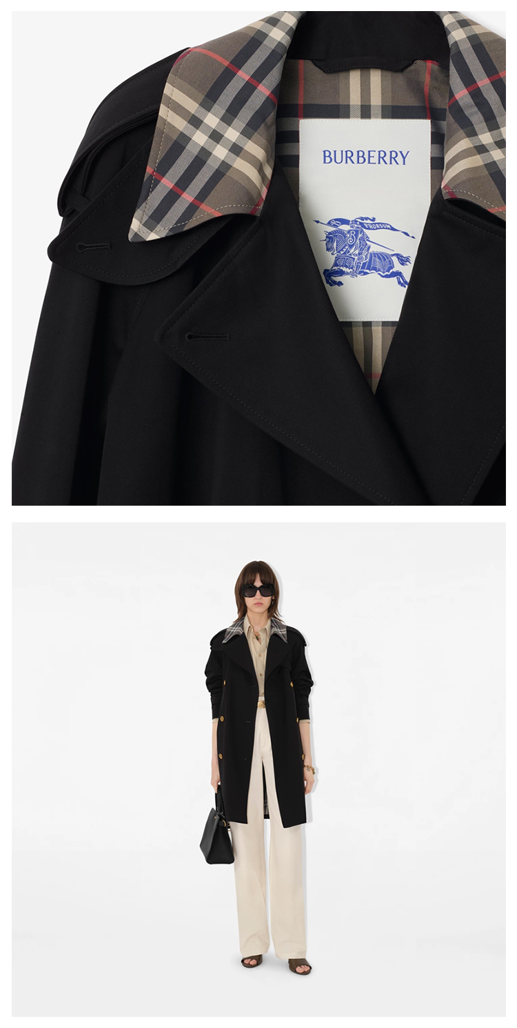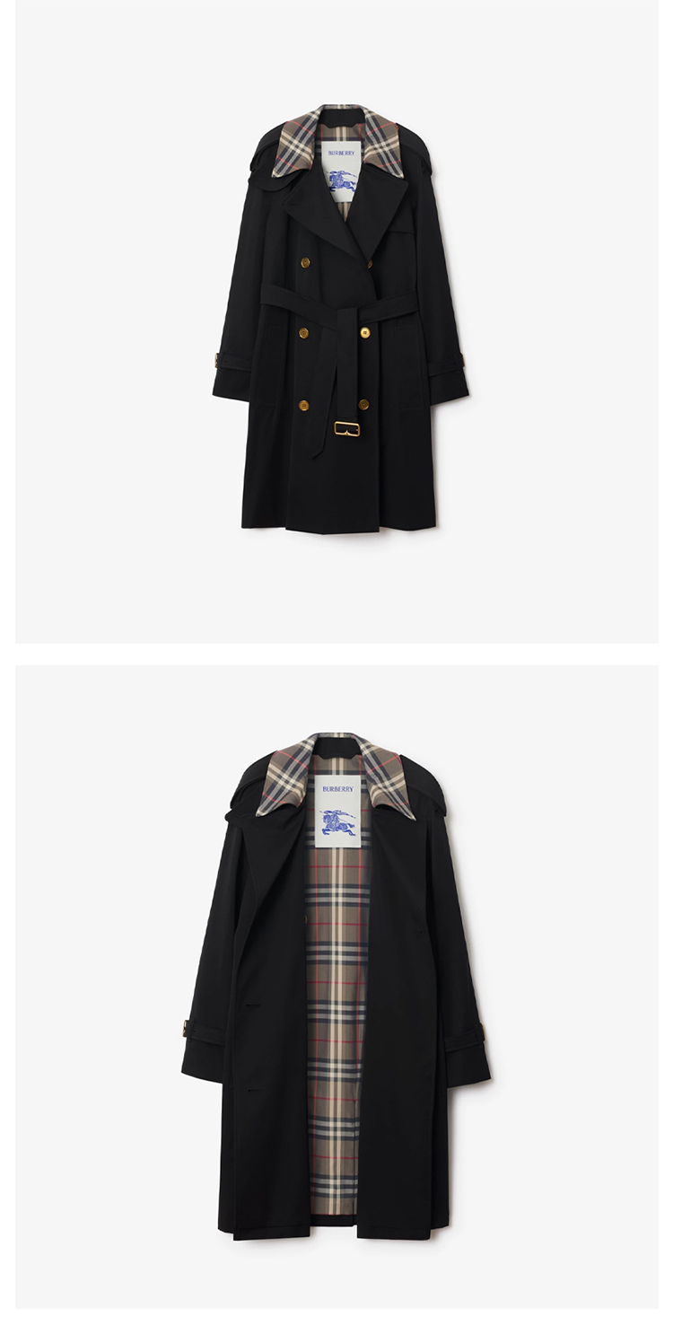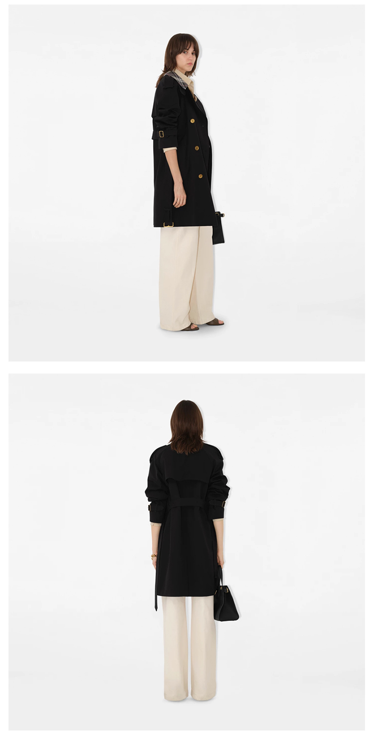 BURBERRY 巴宝莉 女士卡斯尔福德版型 – 中长款格纹衣领 Trench 风衣 黑色 8113626 A1189