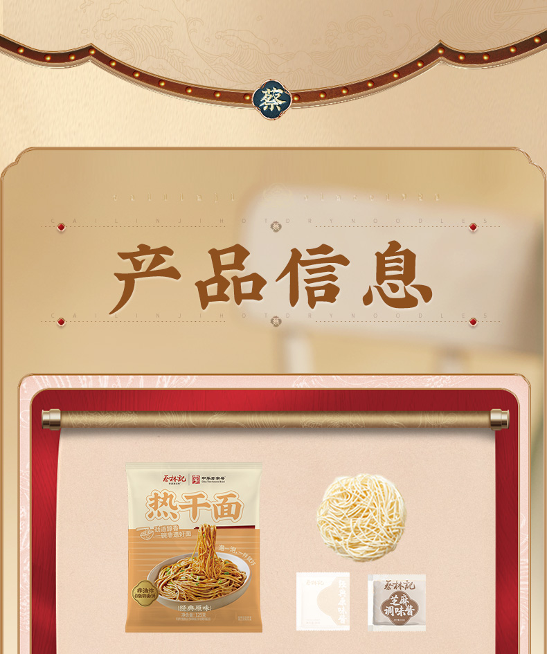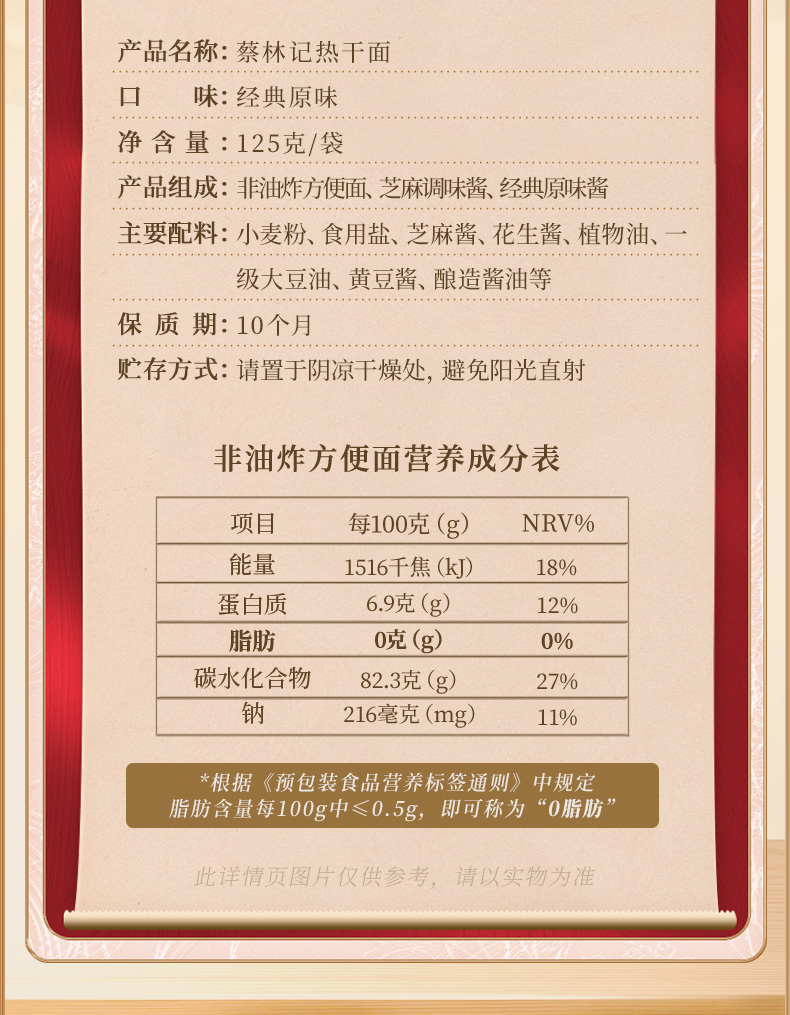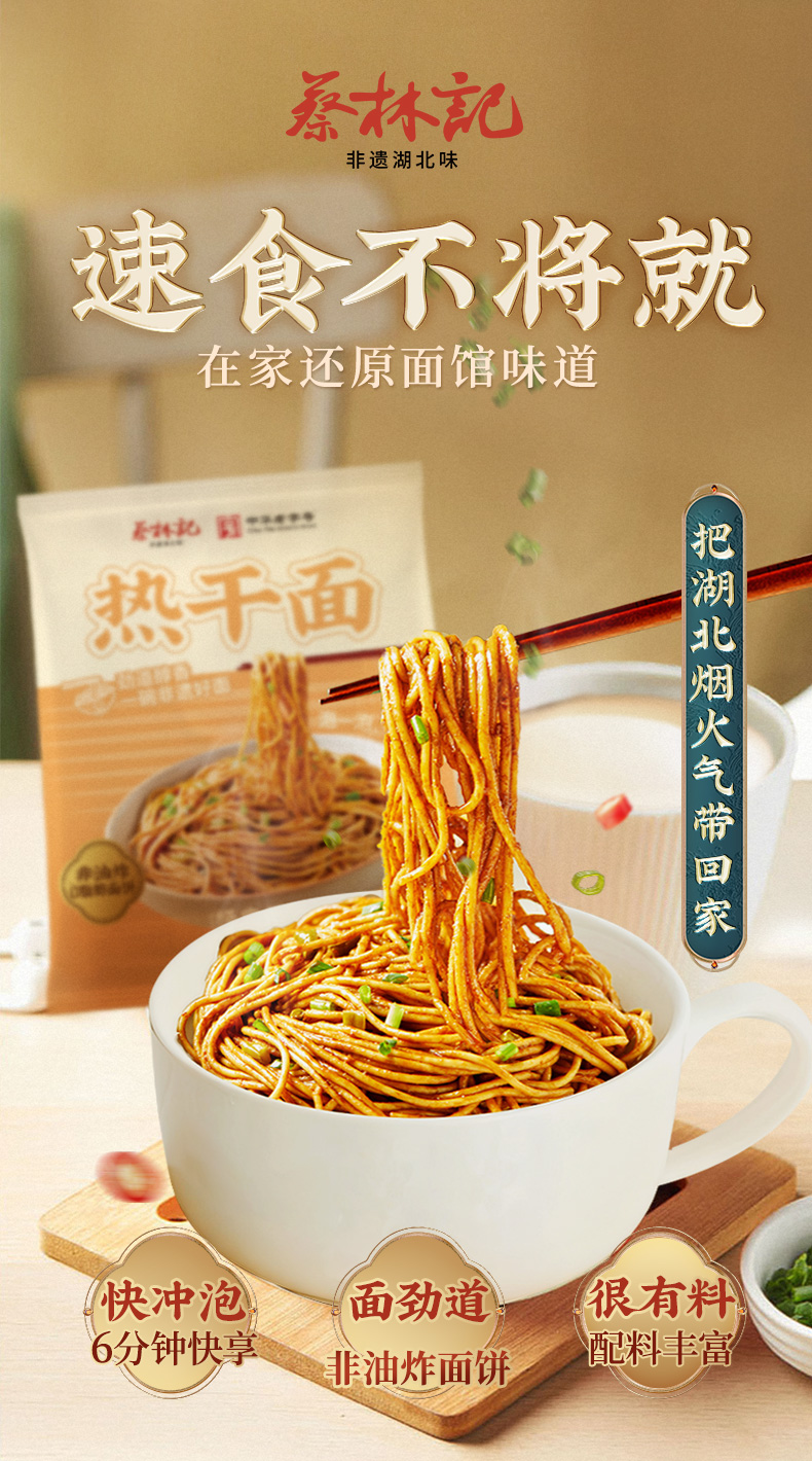 【新品】蔡林记冲泡免煮热干面125g非油炸面饼方便袋装