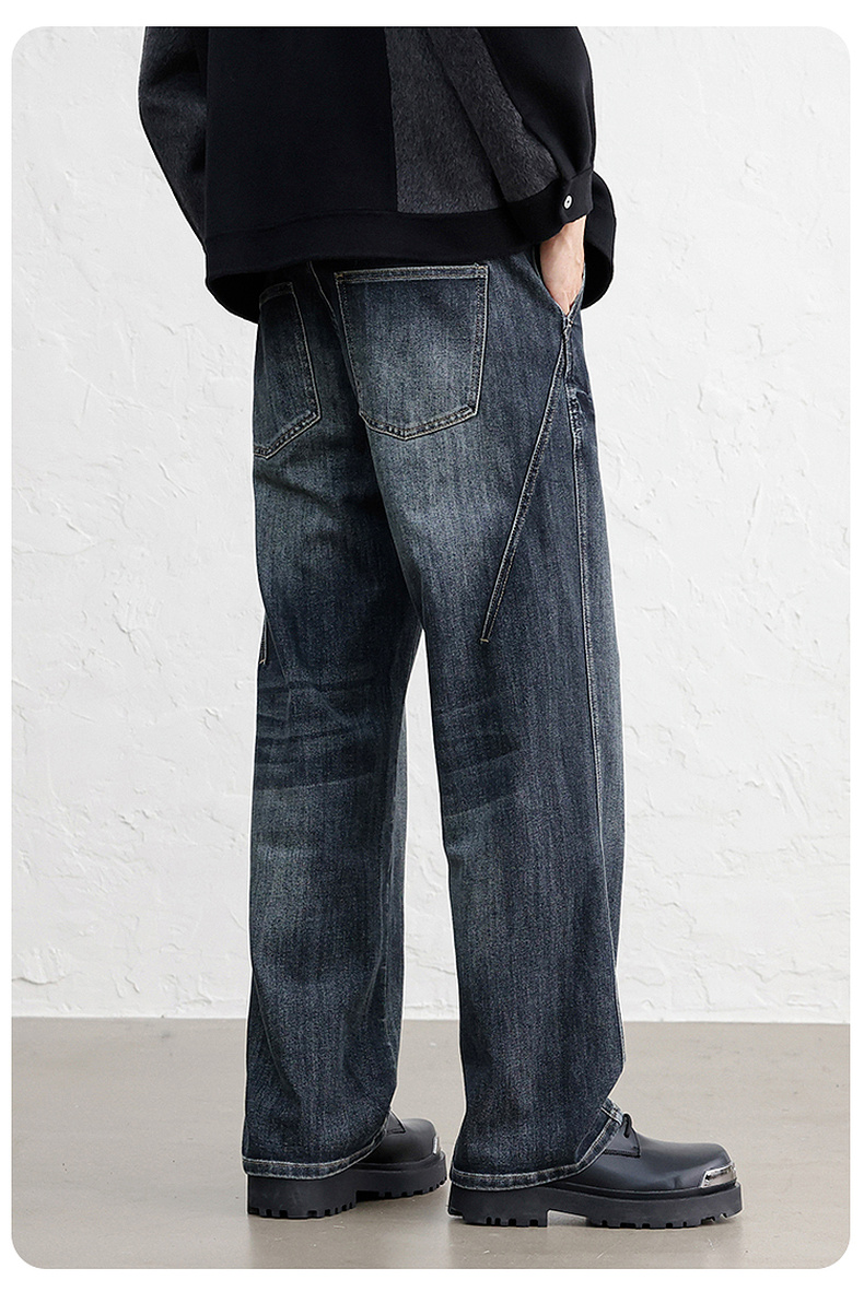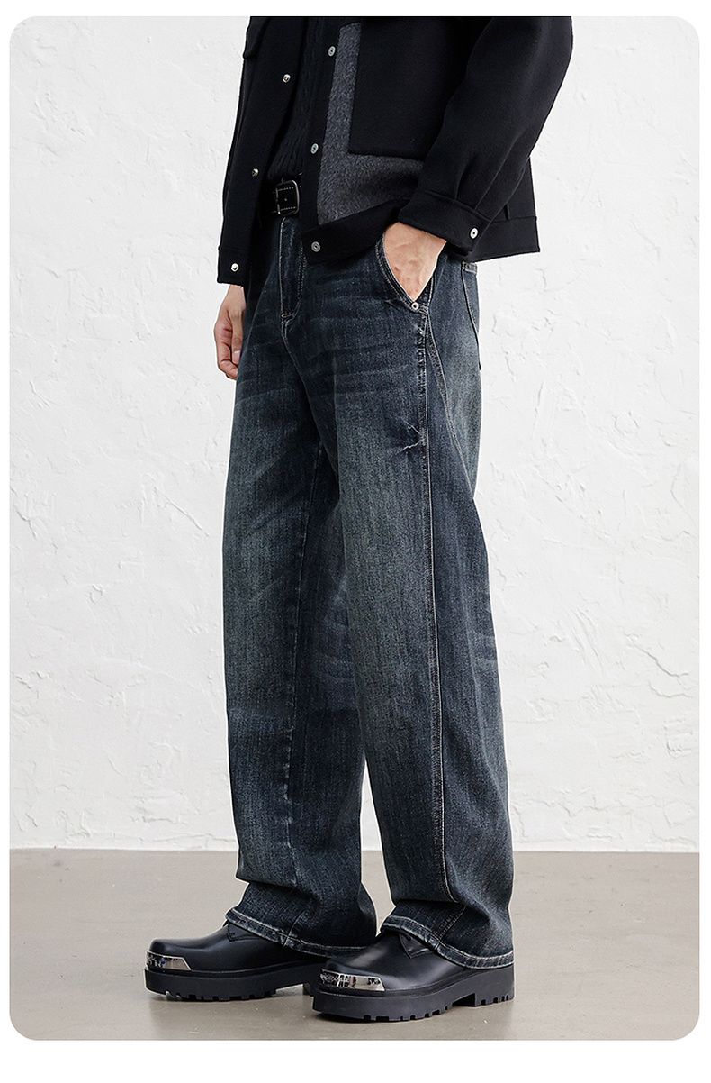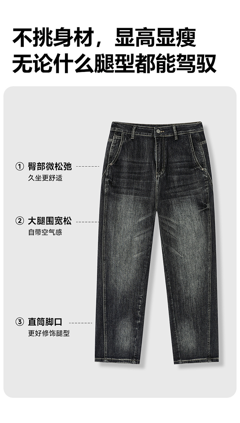 GXG男装25秋季时尚潮流复古水洗宽松直筒休闲日常通勤男式牛仔裤K&C