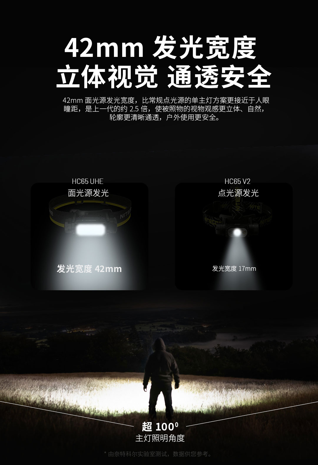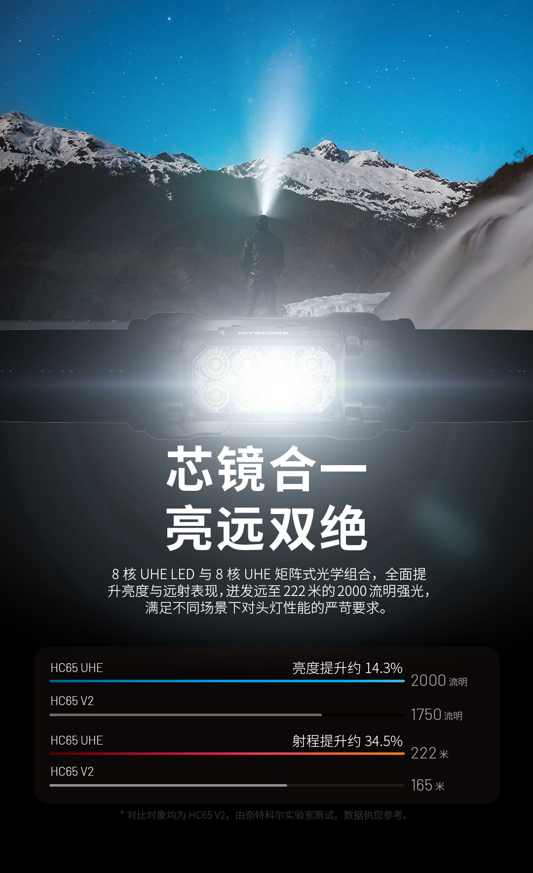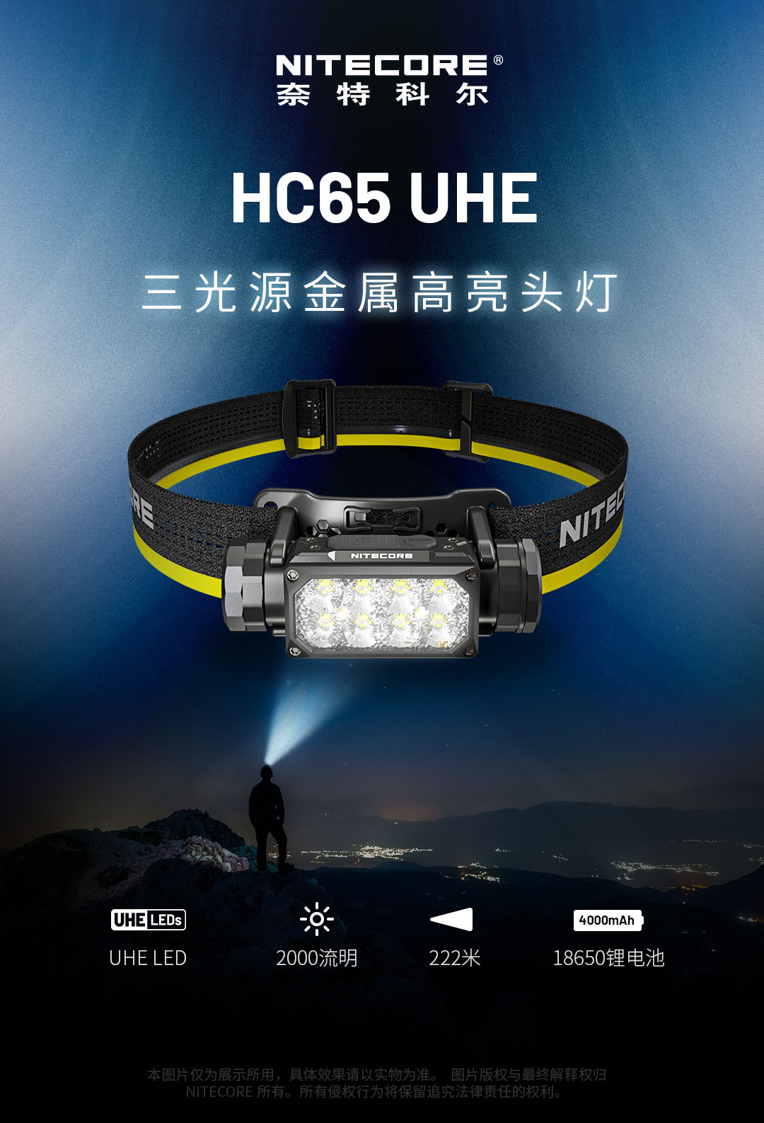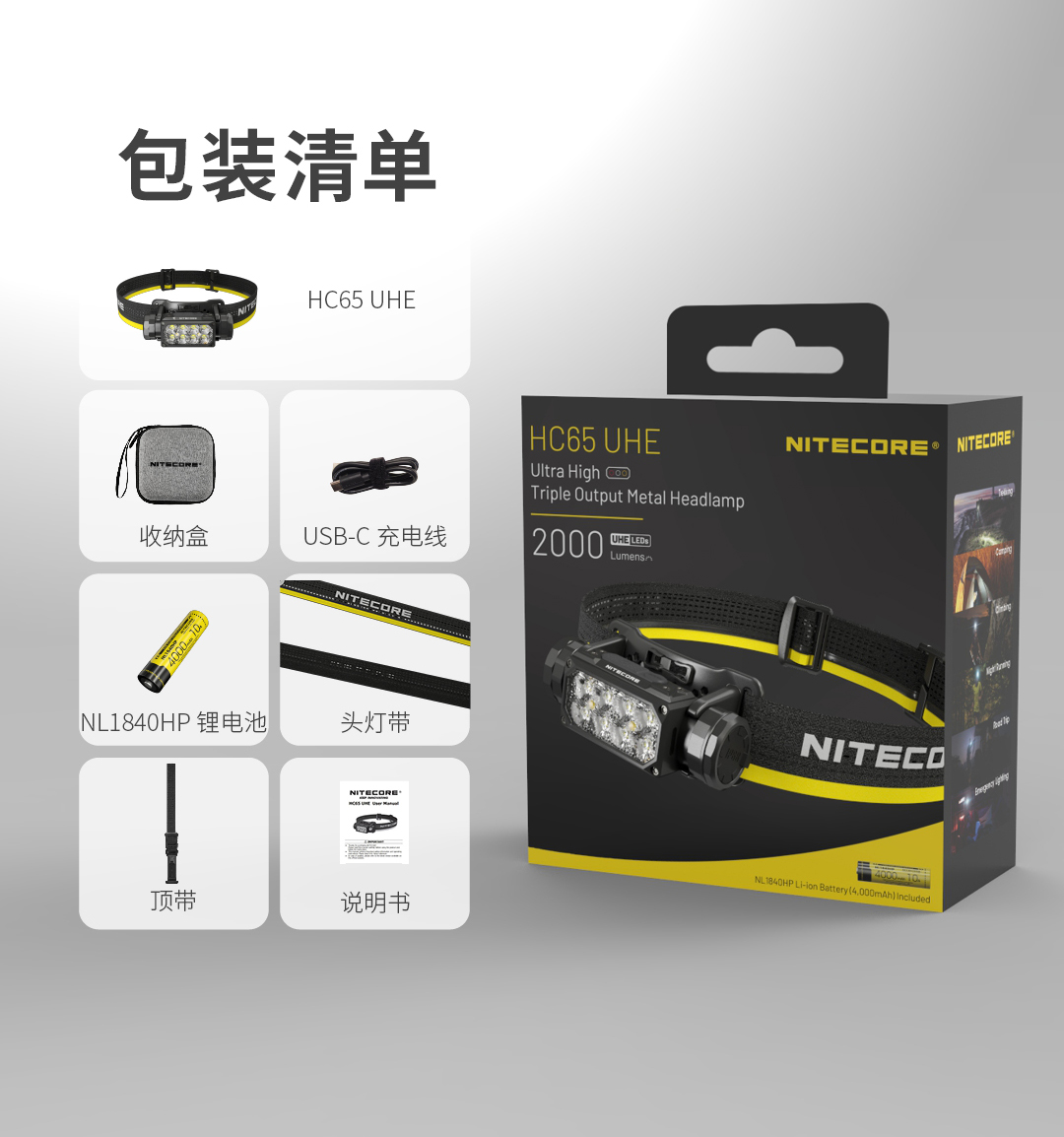 NITECORE奈特科尔HC65 UHE金属可充电双光源18650锂电池头灯