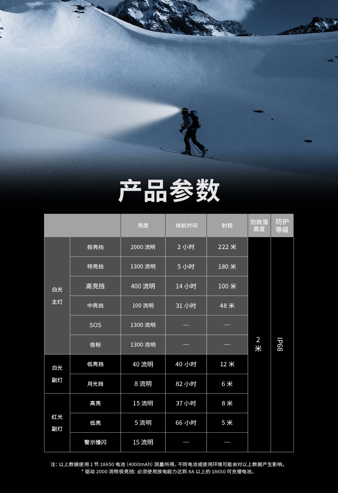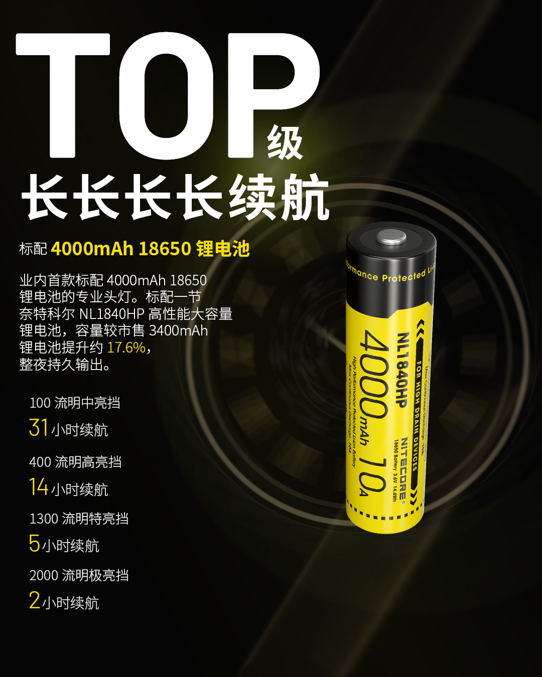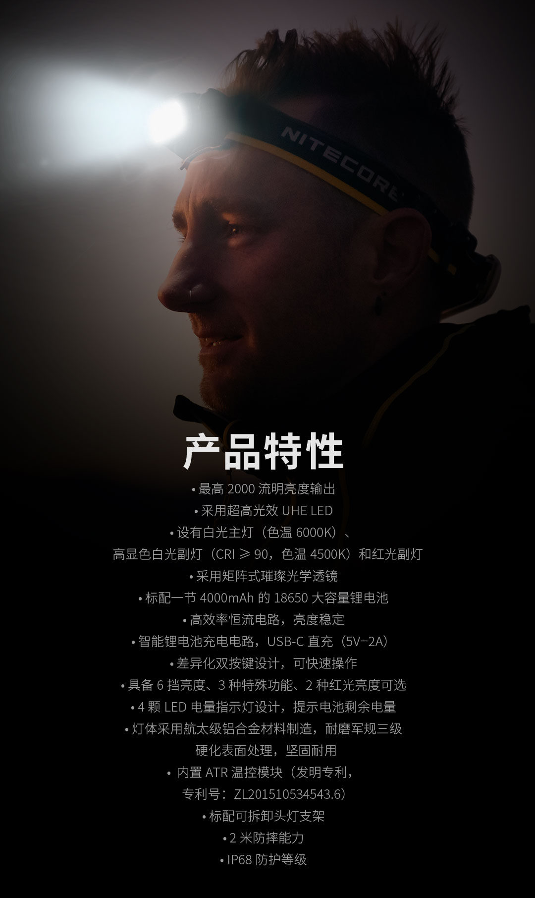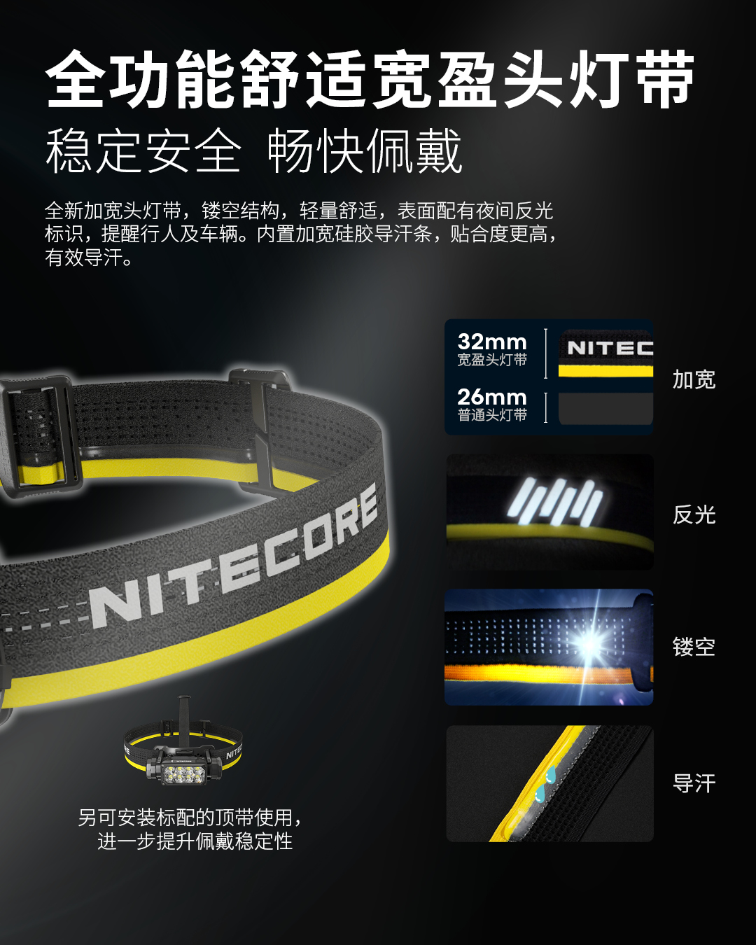 NITECORE奈特科尔HC65 UHE金属可充电双光源18650锂电池头灯