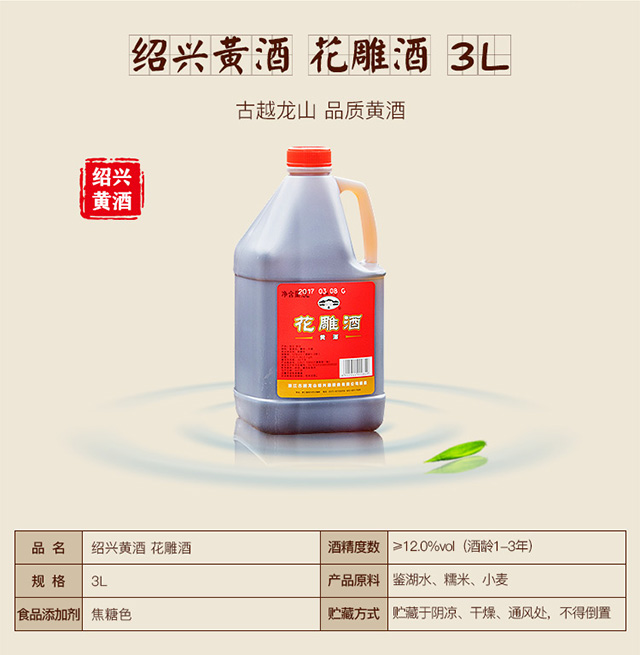 古越龙山 绍兴黄酒 花雕酒 3L 桶装(新老包装随机发货)