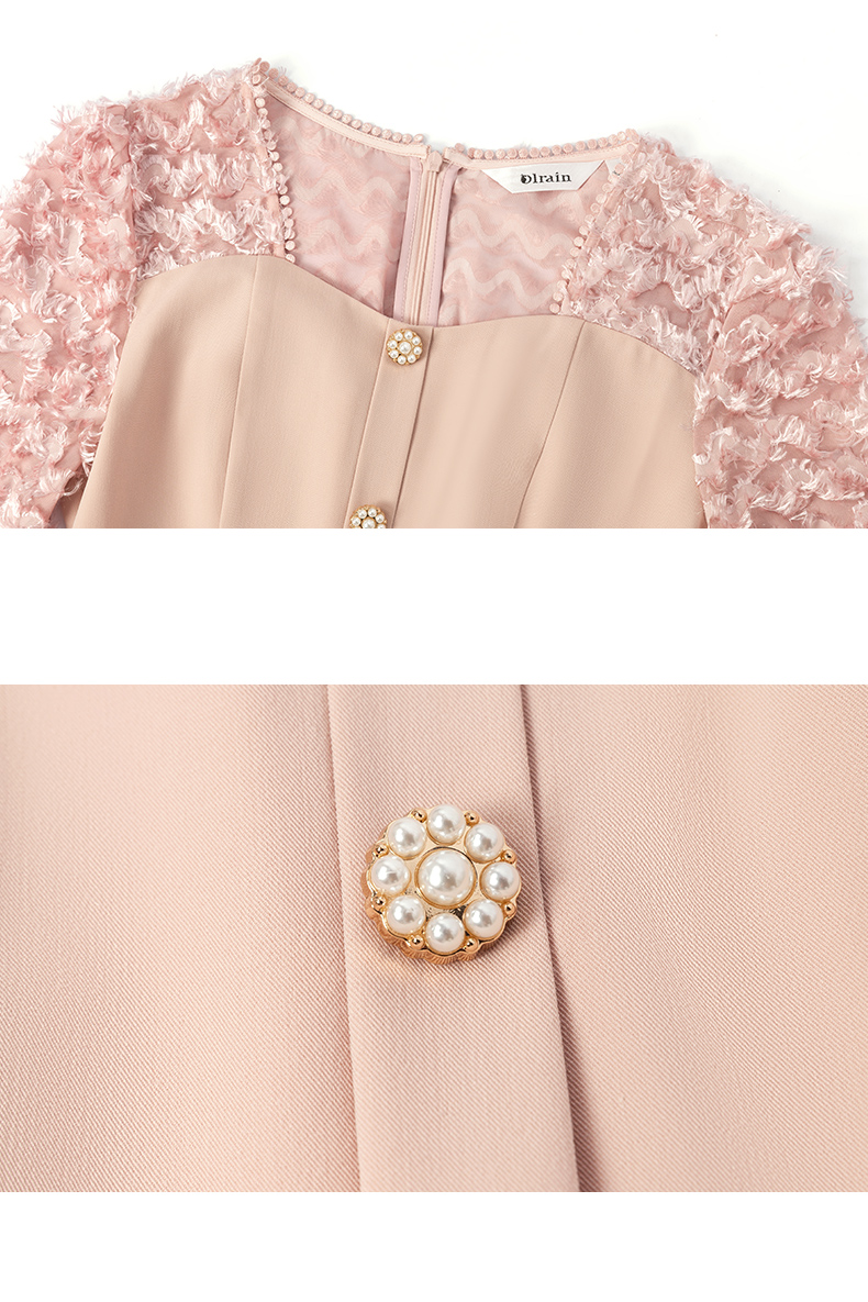 OLrain欧芮儿杏色短袖T恤女夏季法式气质蕾丝衫百搭镂空花边上衣