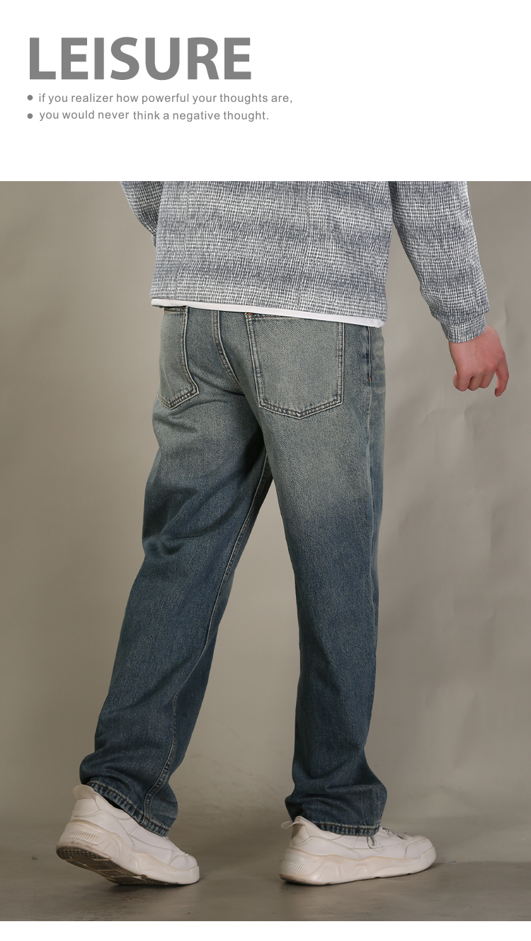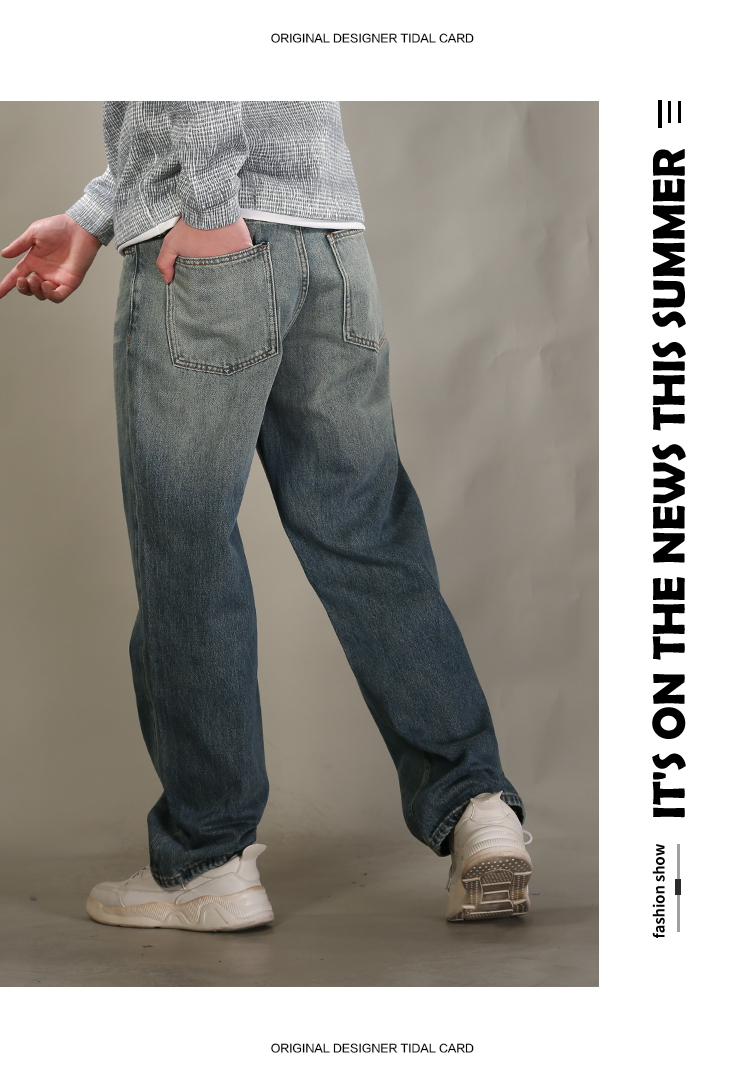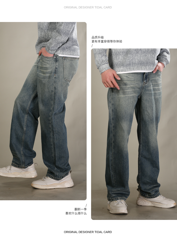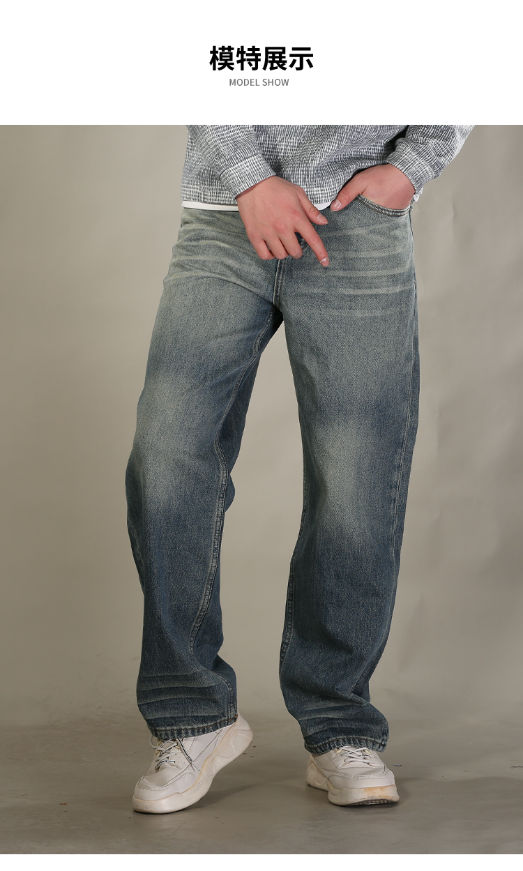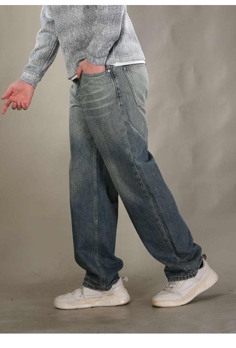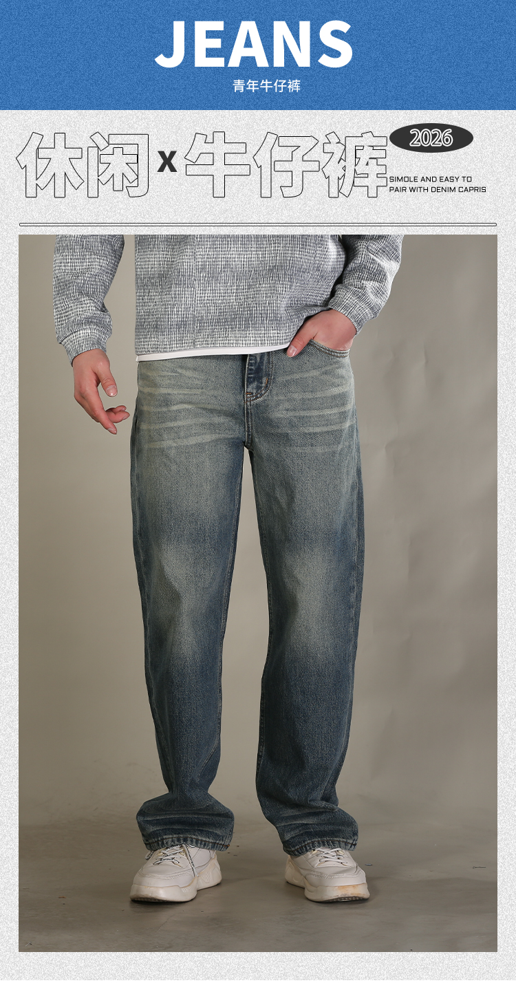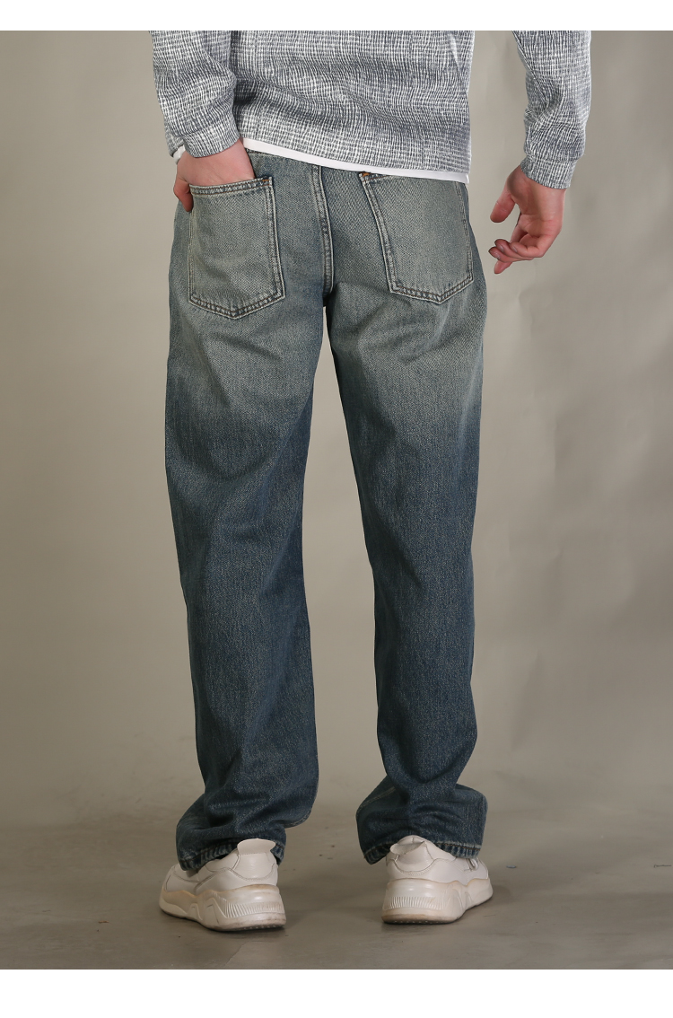 DRONKOO 2026 正常腰上下渐变复古洗水中厚牛仔长裤