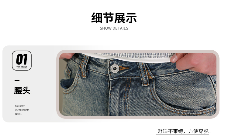 DRONKOO 2026 半松紧腰前斜破骨膝盖破缝压皱喷色中厚牛仔长裤