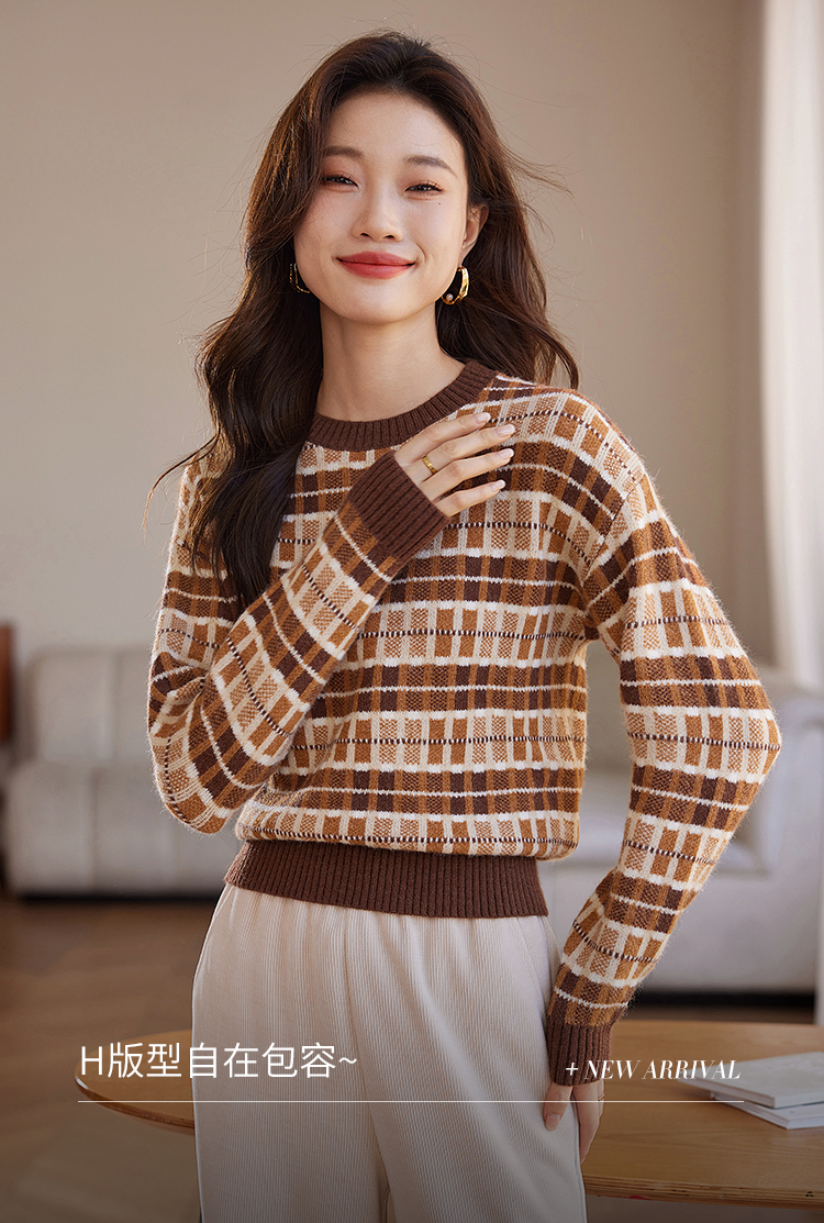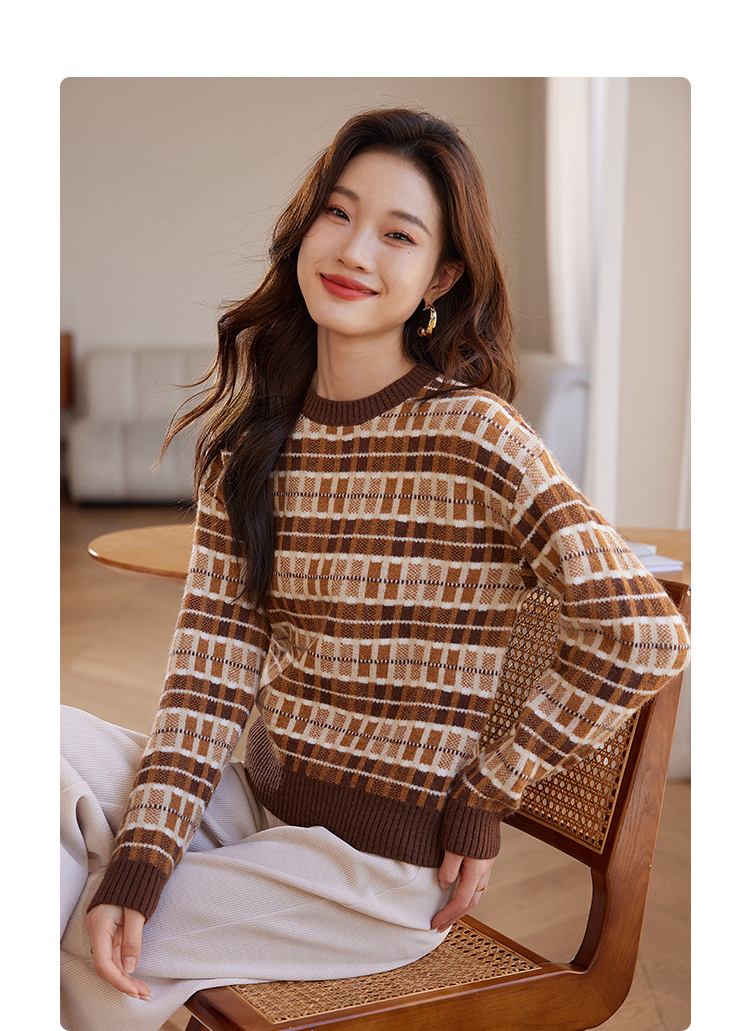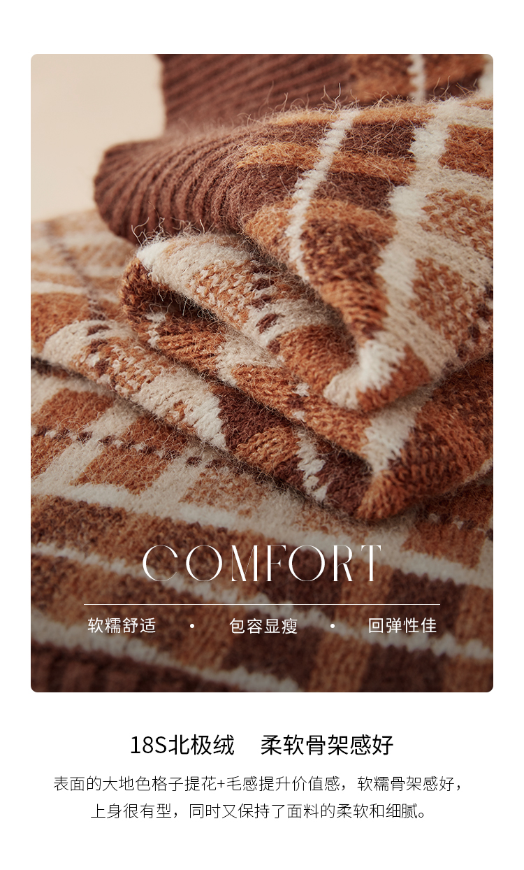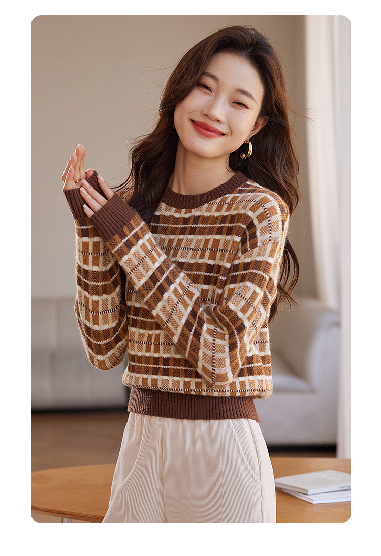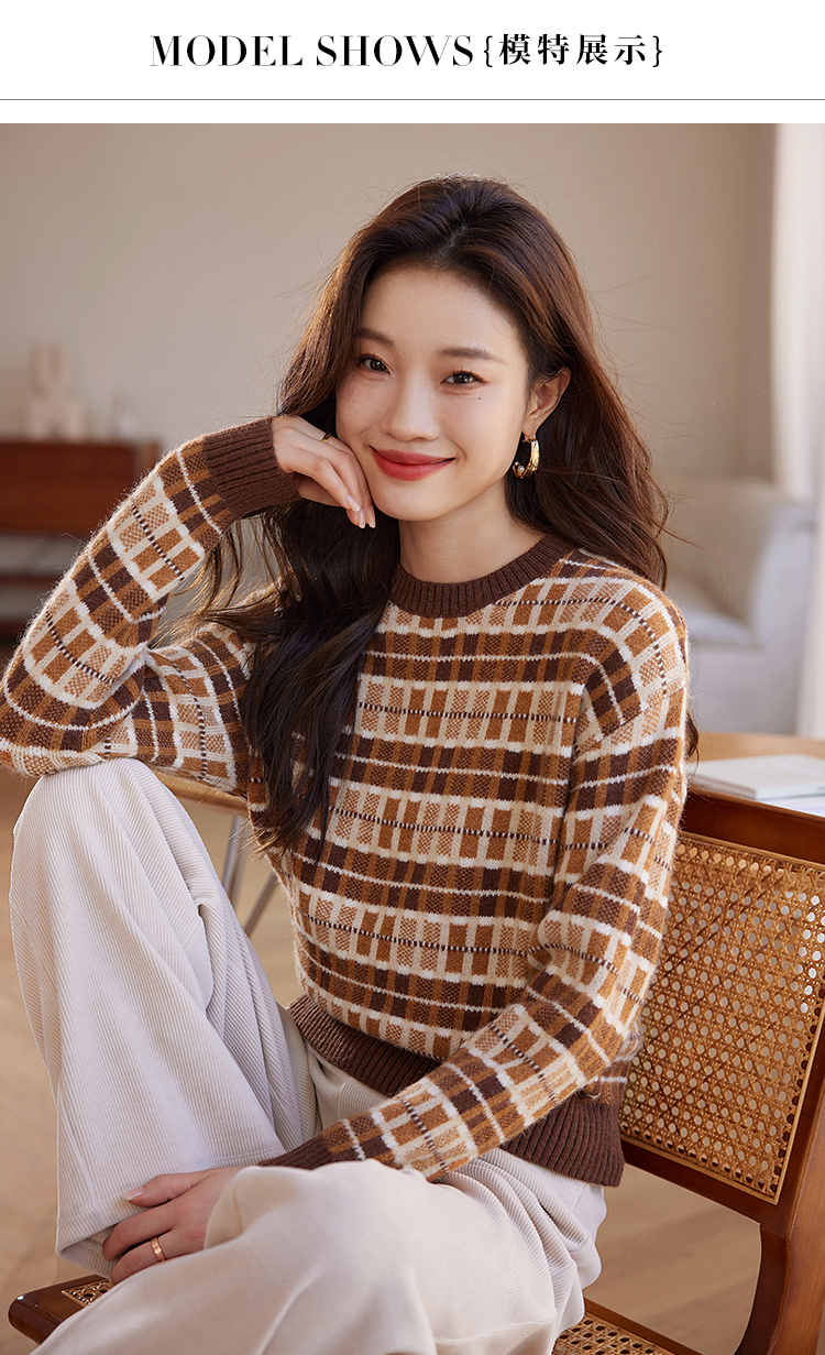 【年终特卖】熙世界美拉德慵懒风复古格子毛衣女秋冬时尚洋气针织衫2025年新款