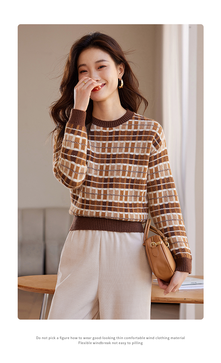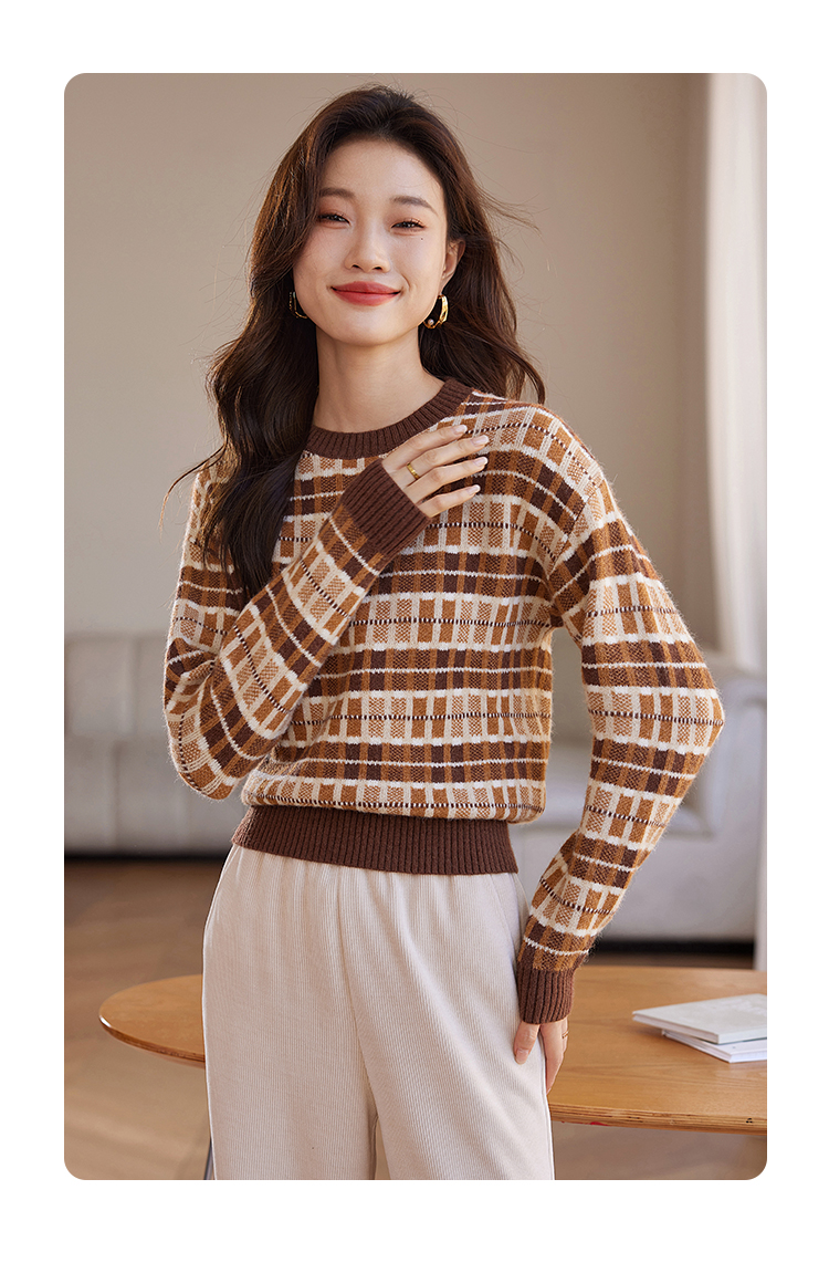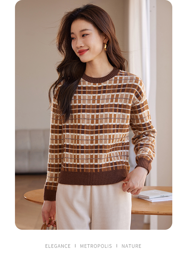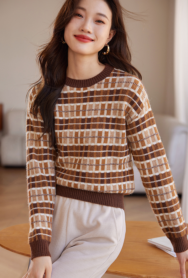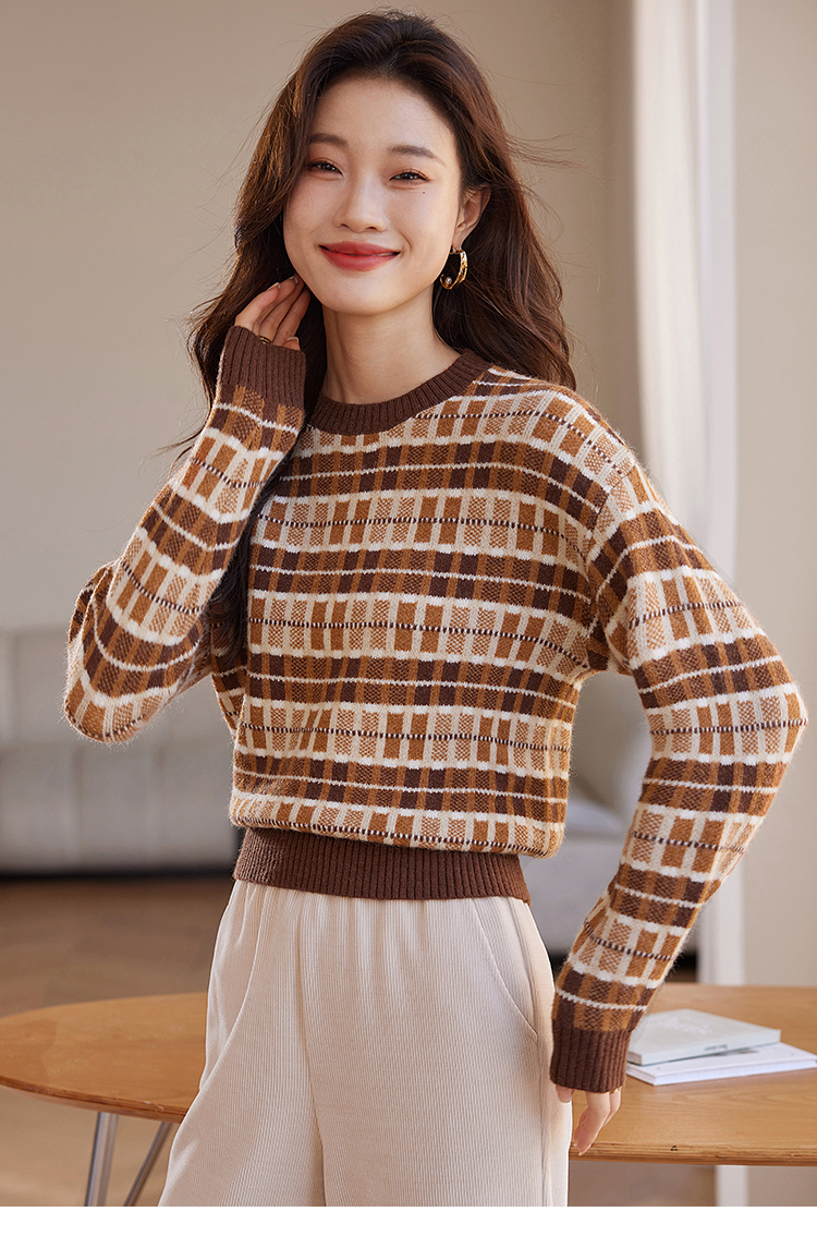 【年终特卖】熙世界美拉德慵懒风复古格子毛衣女秋冬时尚洋气针织衫2025年新款