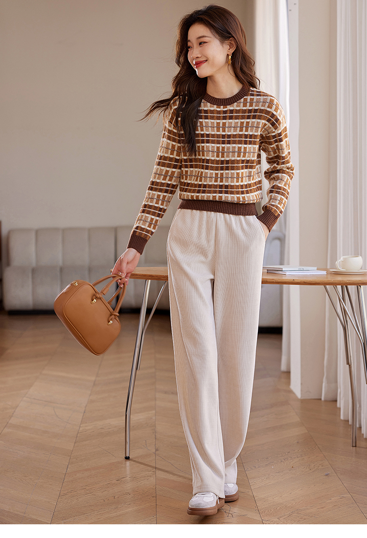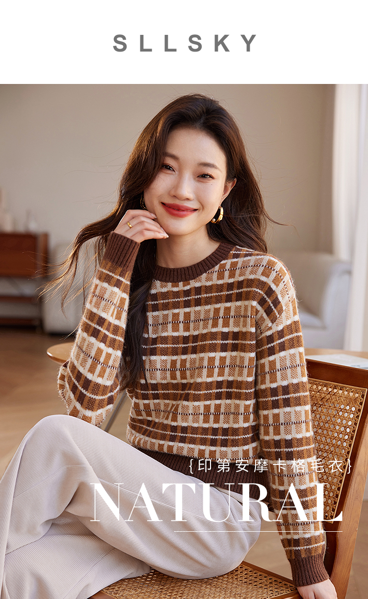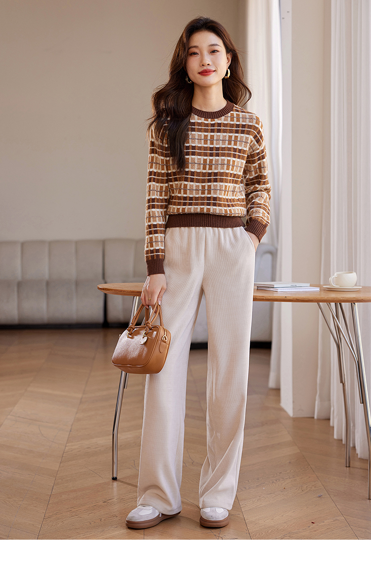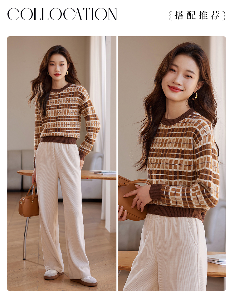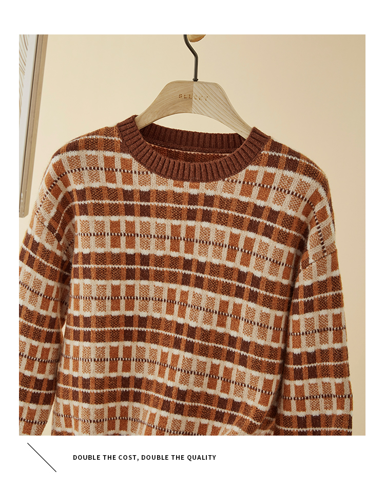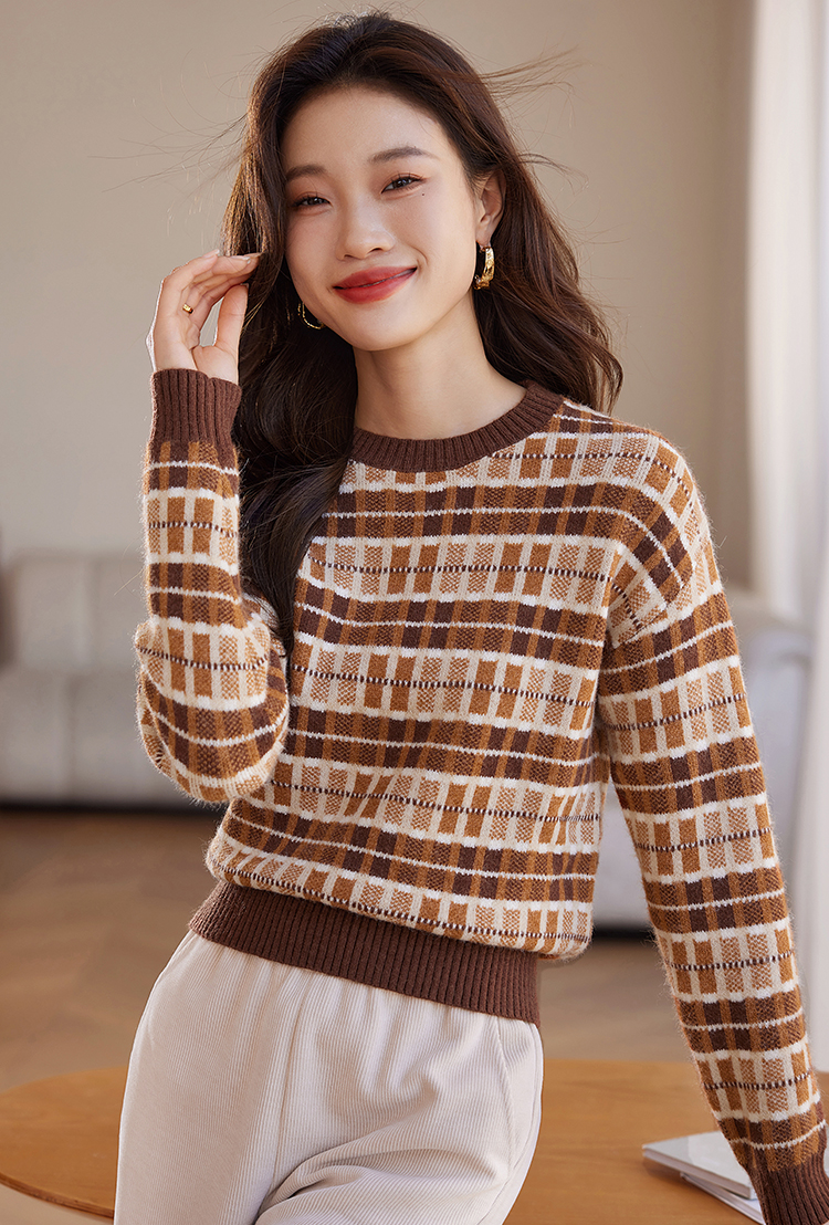 【年终特卖】熙世界美拉德慵懒风复古格子毛衣女秋冬时尚洋气针织衫2025年新款