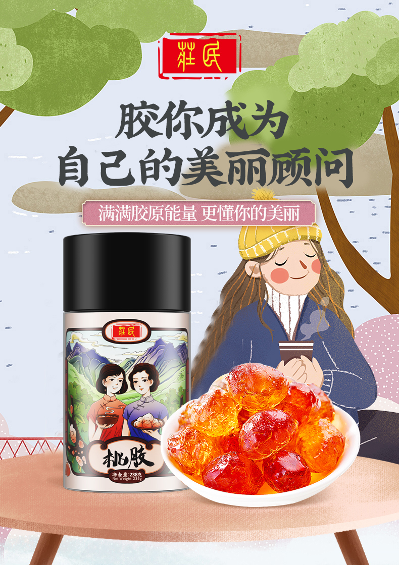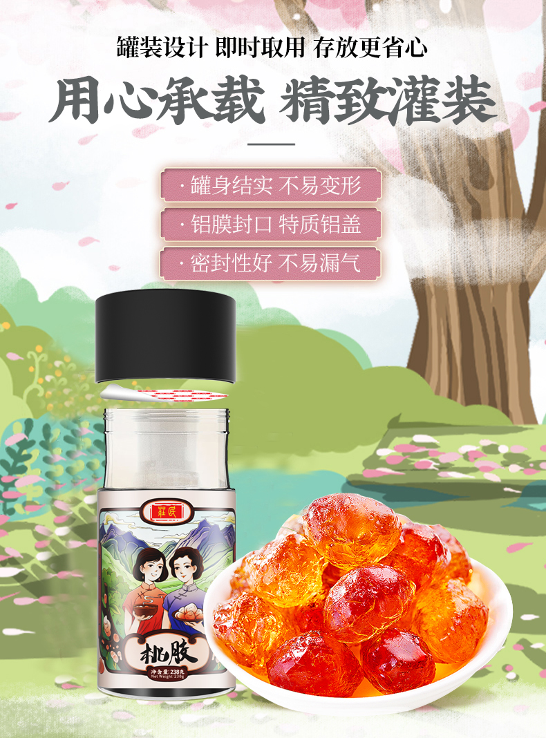 庄民 桃胶 桃花泪 精选大颗粒 杂质少 泡发好 颗粒均匀 238g/罐