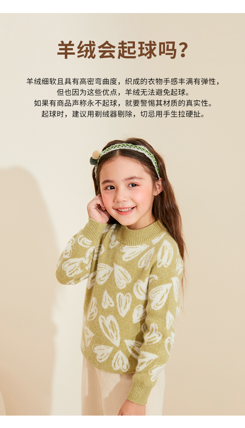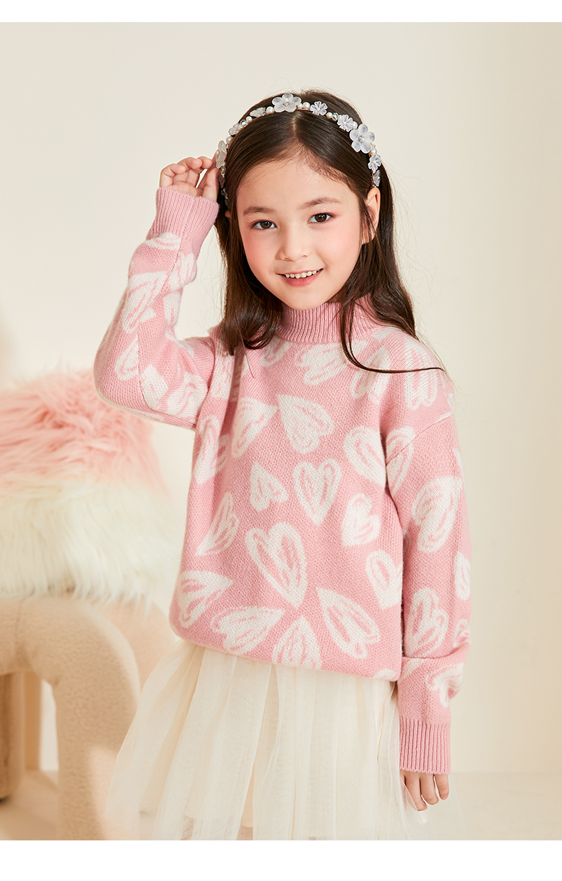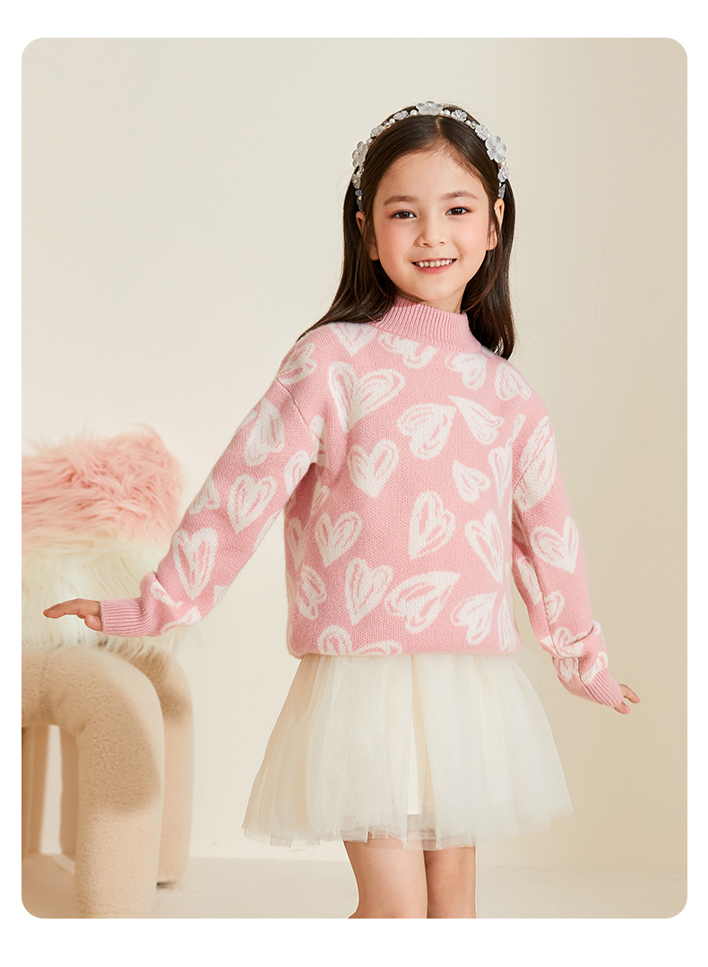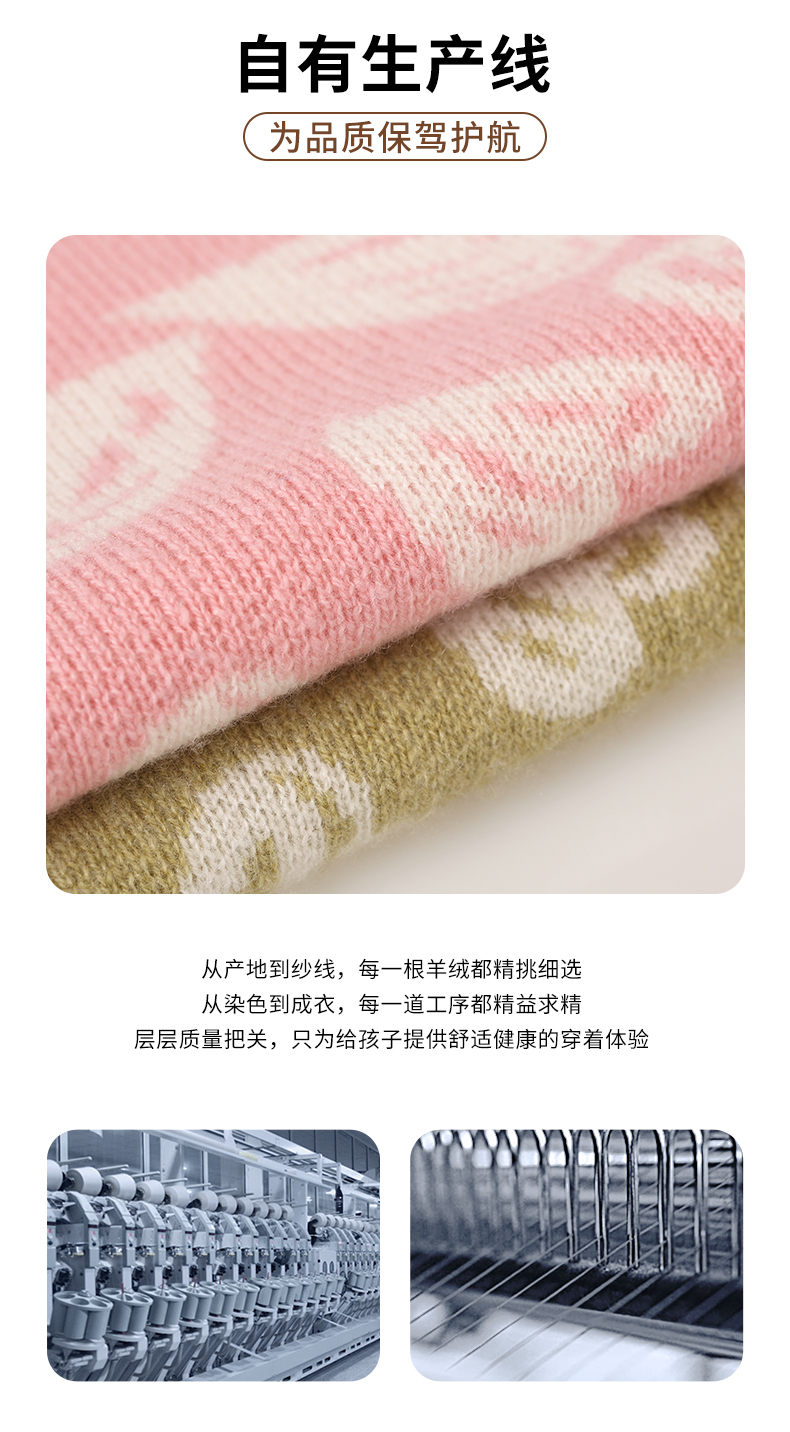 【半高领提花童装羊绒衫】羊绒世家22年秋冬新品女宝内搭100%山羊绒保暖针织毛衣