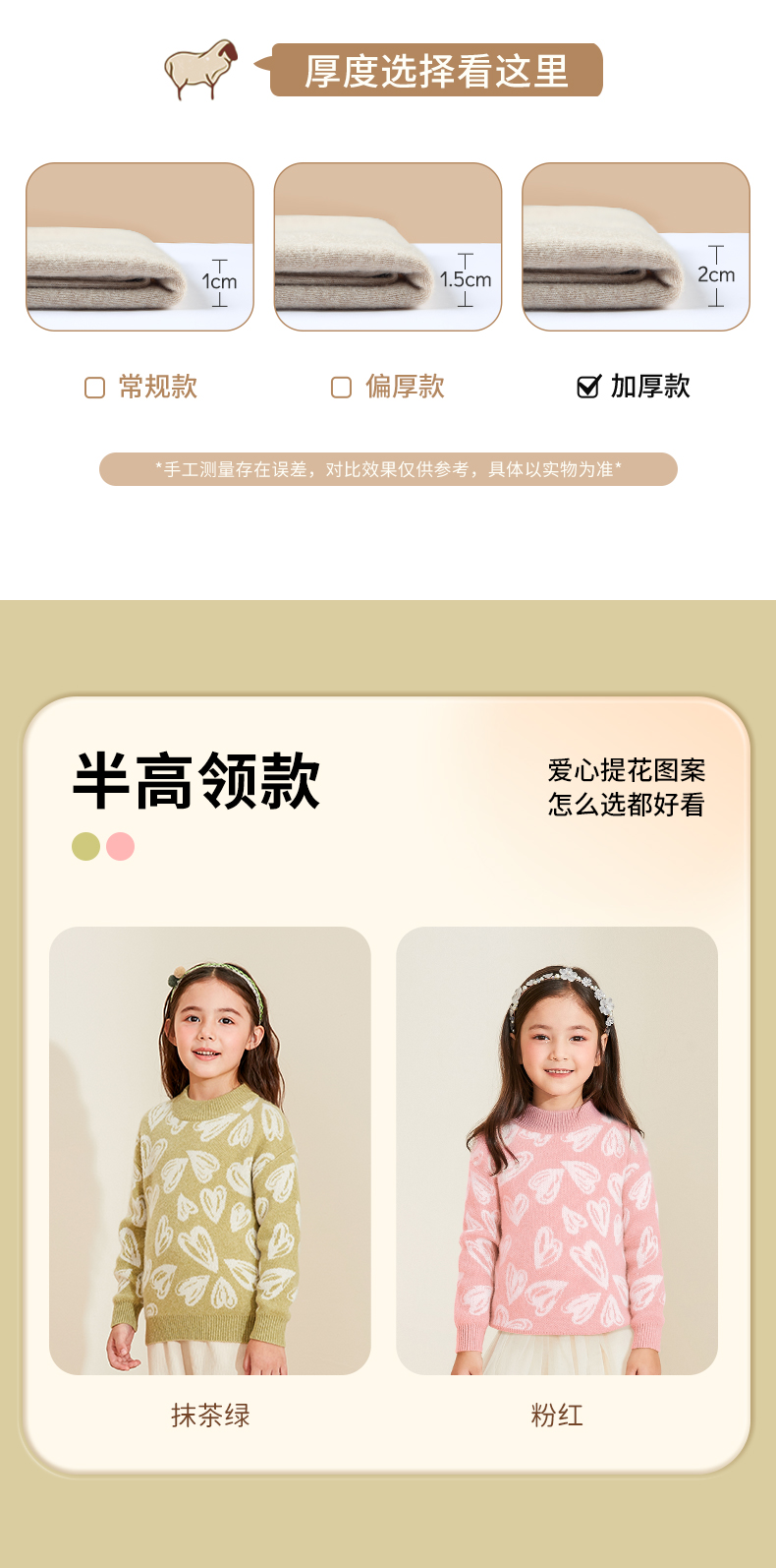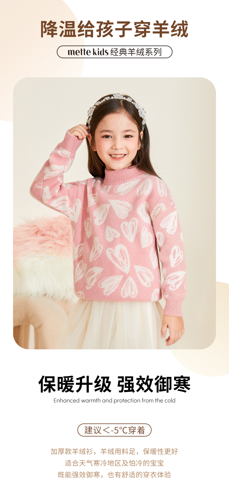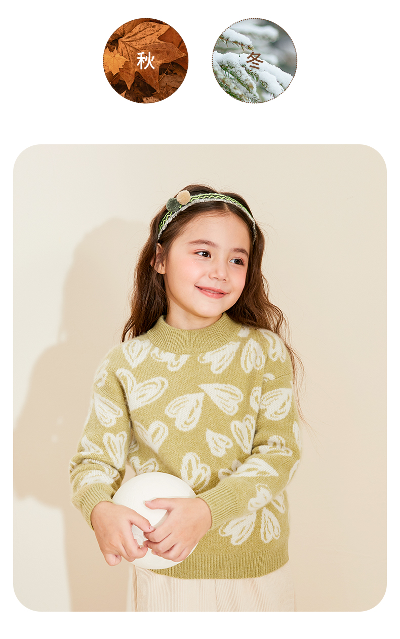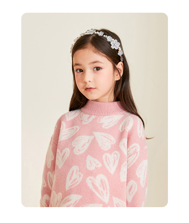 【半高领提花童装羊绒衫】羊绒世家22年秋冬新品女宝内搭100%山羊绒保暖针织毛衣