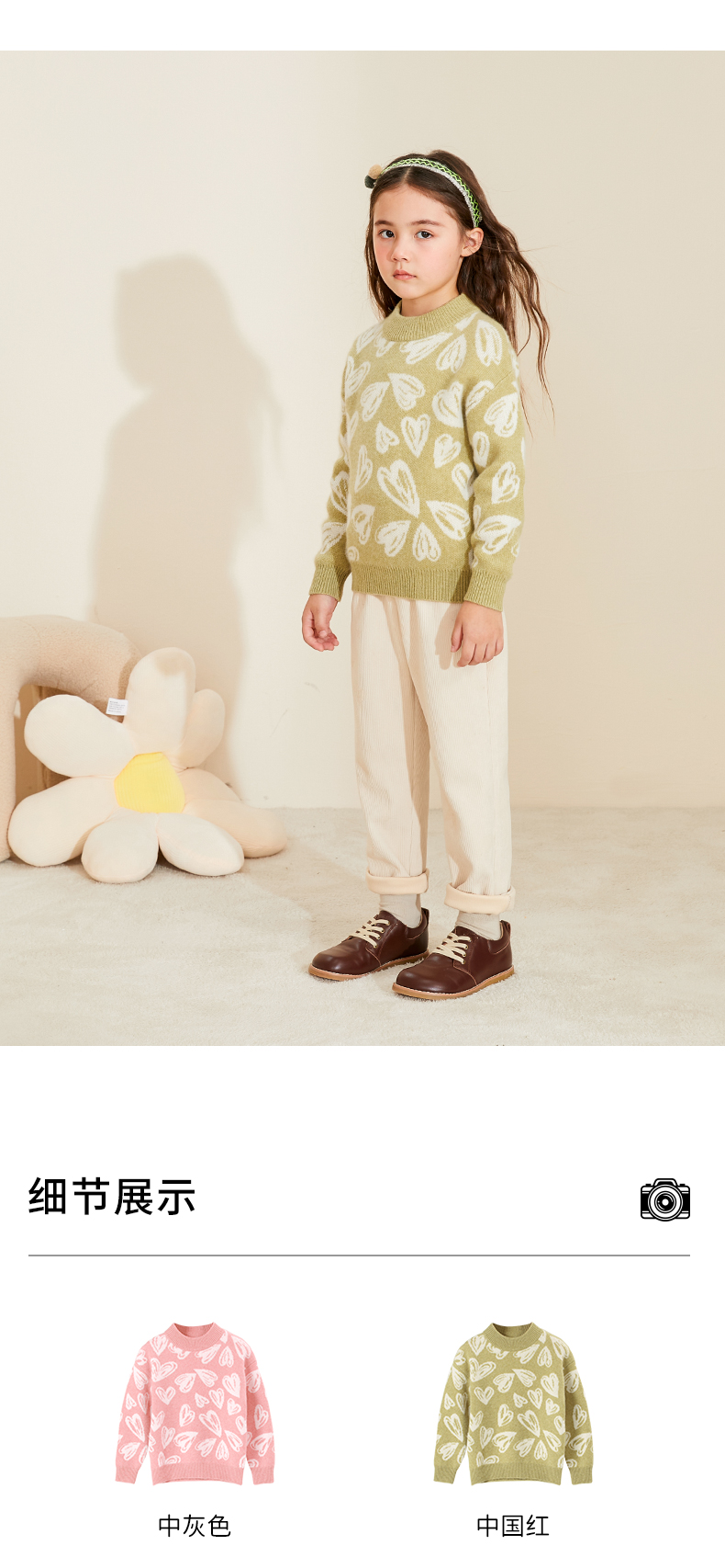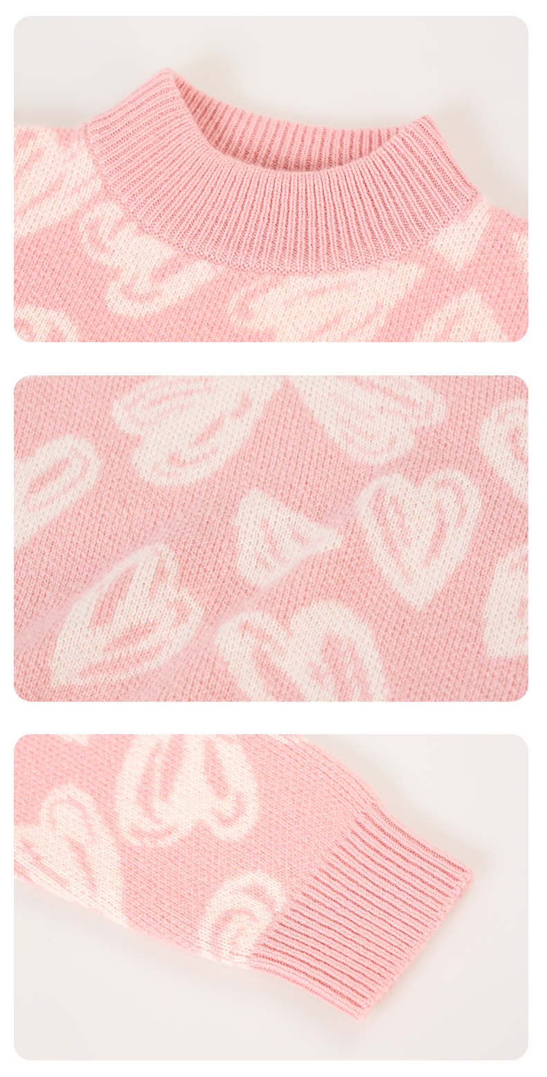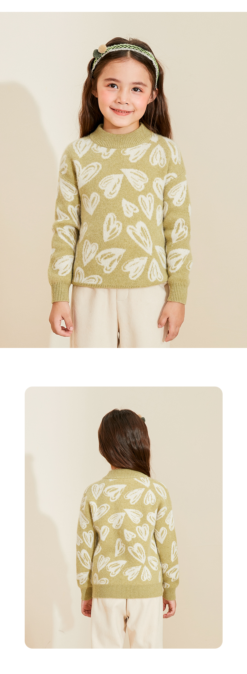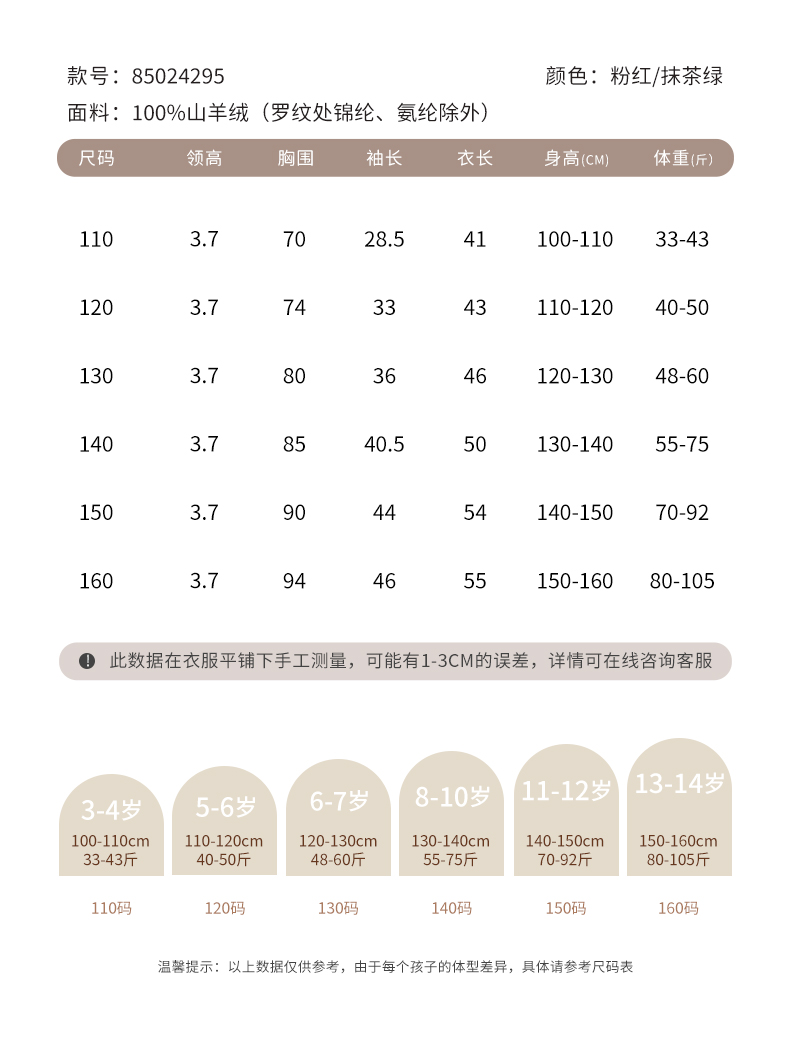 【半高领提花童装羊绒衫】羊绒世家22年秋冬新品女宝内搭100%山羊绒保暖针织毛衣