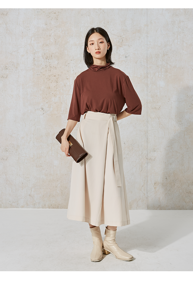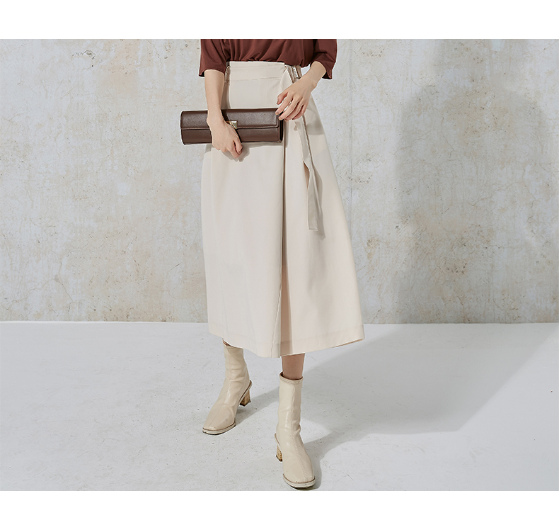 NUTS秋季新款气质通勤时尚纯色设计感半身长裙女231063004B