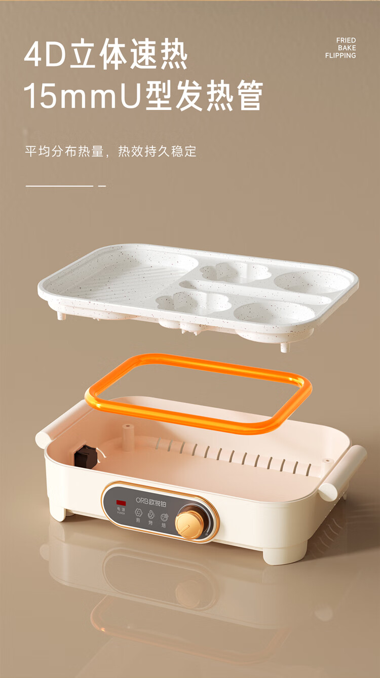 【分仓直发包邮】欧锐铂趣味家多功能煎烤机ORB-1449