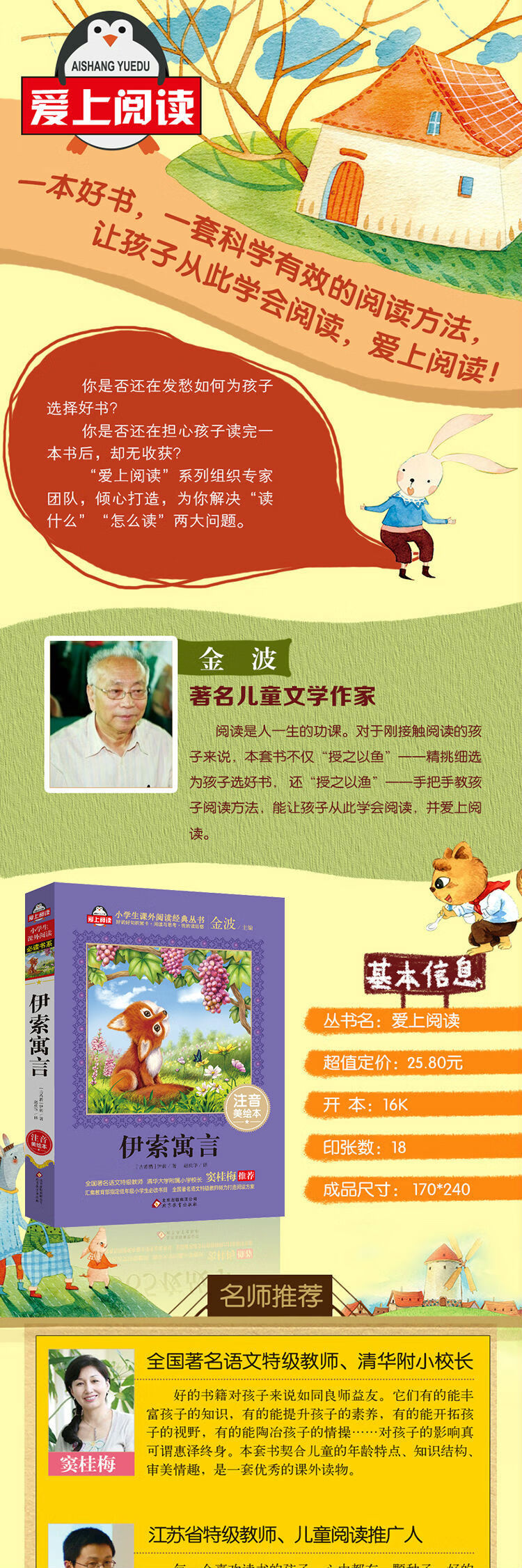 这本伊索编写的《伊索寓言(注音美绘本)》是“小学生语文阅读经典读书系”其中一册。