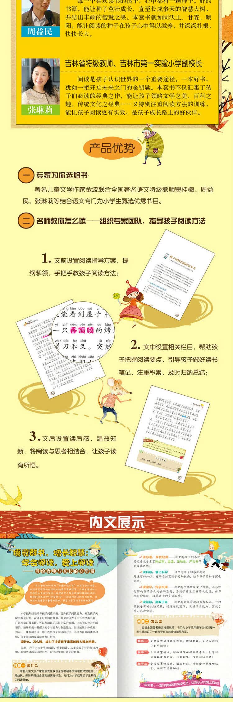 邀请全国著名语文特级教师,专门为小学低年级学生针对每一类书籍制订了一套科学有效的阅读指导方案。