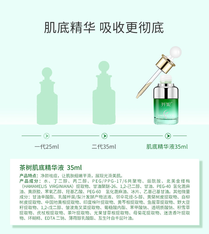 芬妮茶树肌底精华液 35ml 淡化痘印粉刺清洁控痘控油收缩毛孔