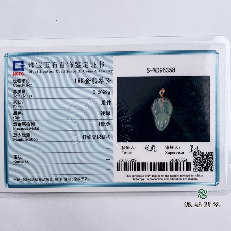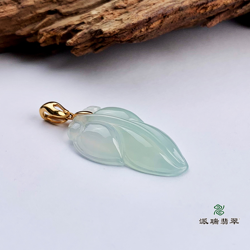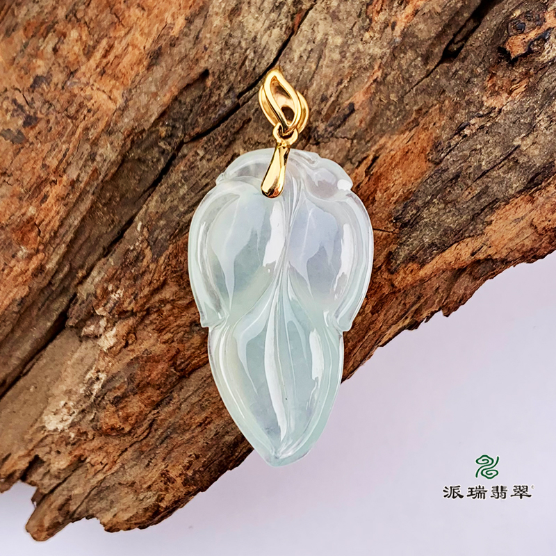 派瑞翡翠 18k金翡翠吊坠 冰种 无色
