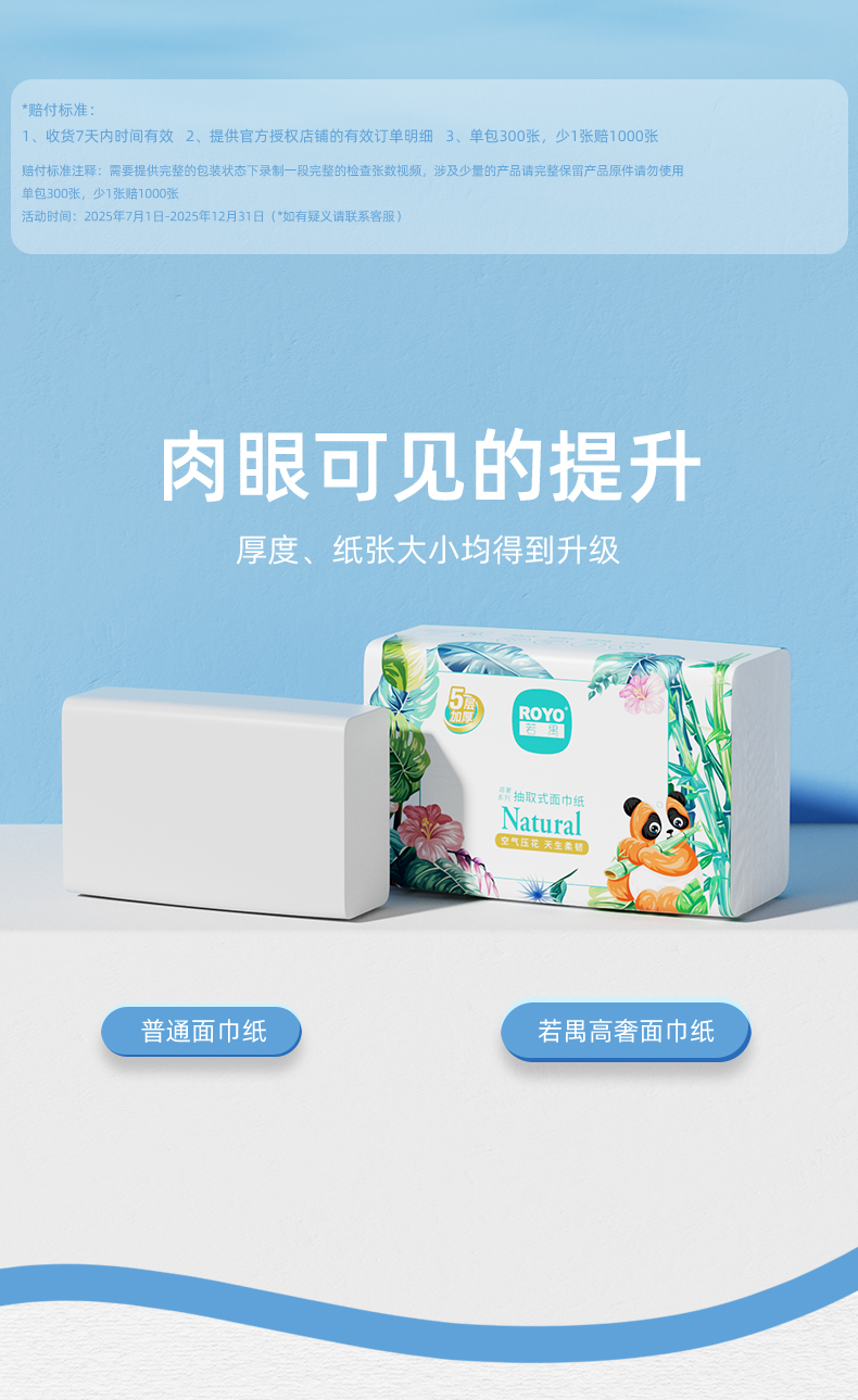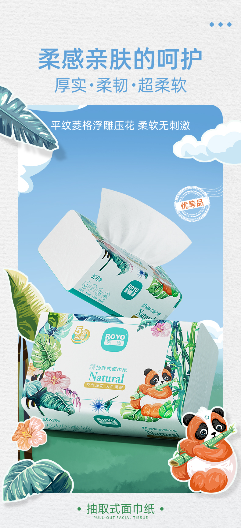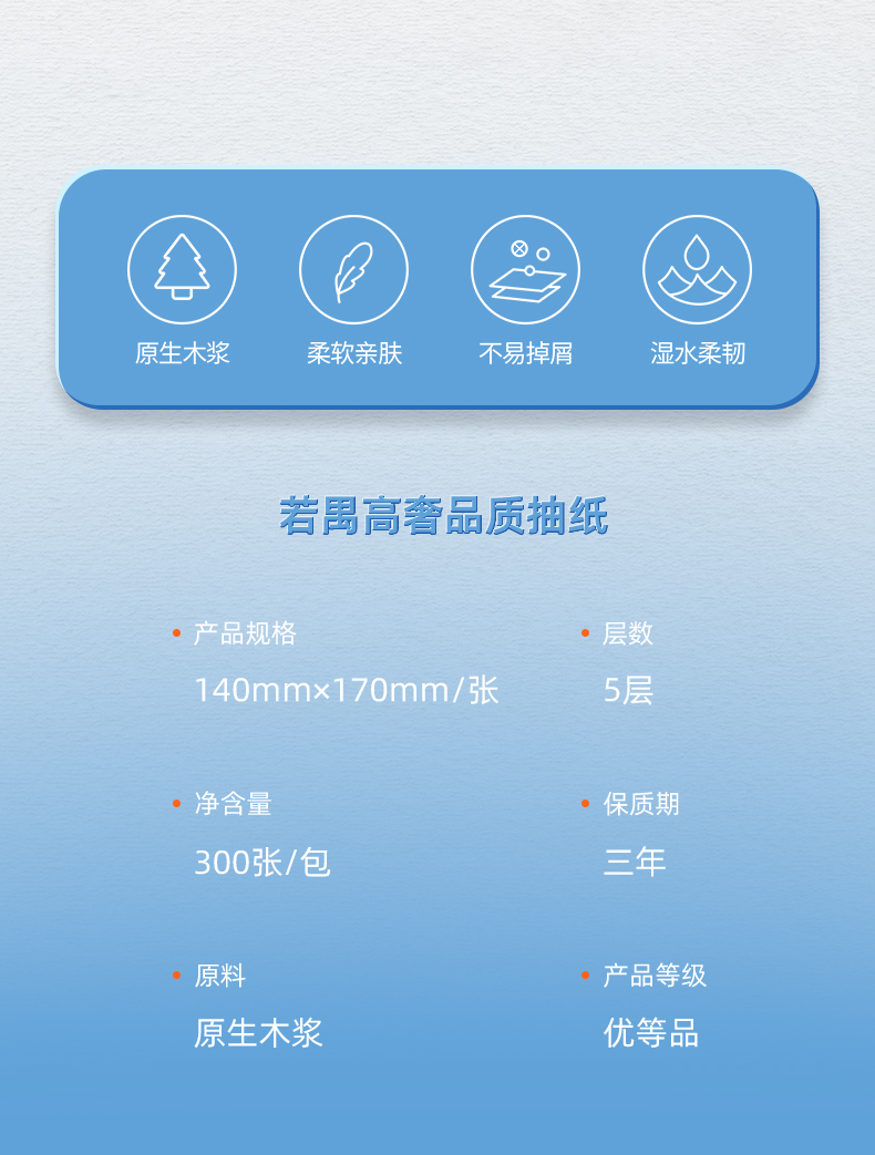 若禺软抽纸高奢禺宝系列5层加厚300张/包原生木浆柔软亲肤湿水可用1件30包RR2108