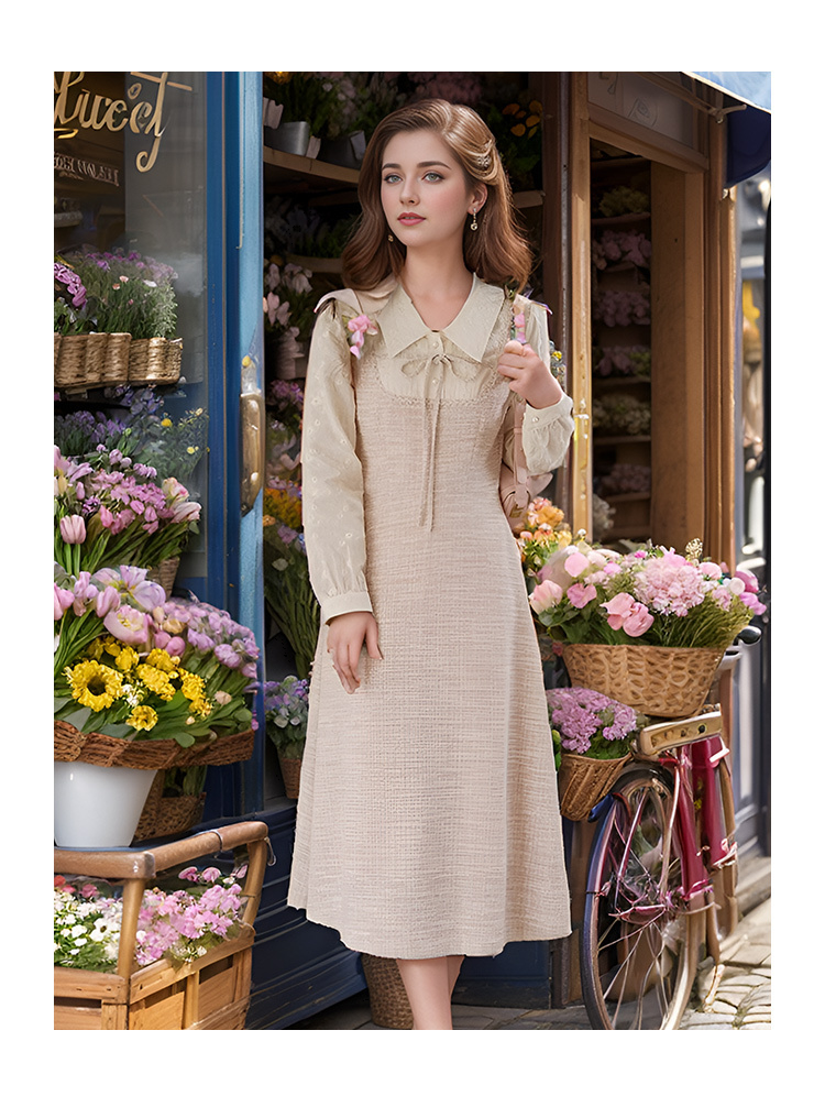 奢姿大码女装2026夏季时尚撞色娃娃领连衣裙胖妹妹气质小香风长裙9962854579