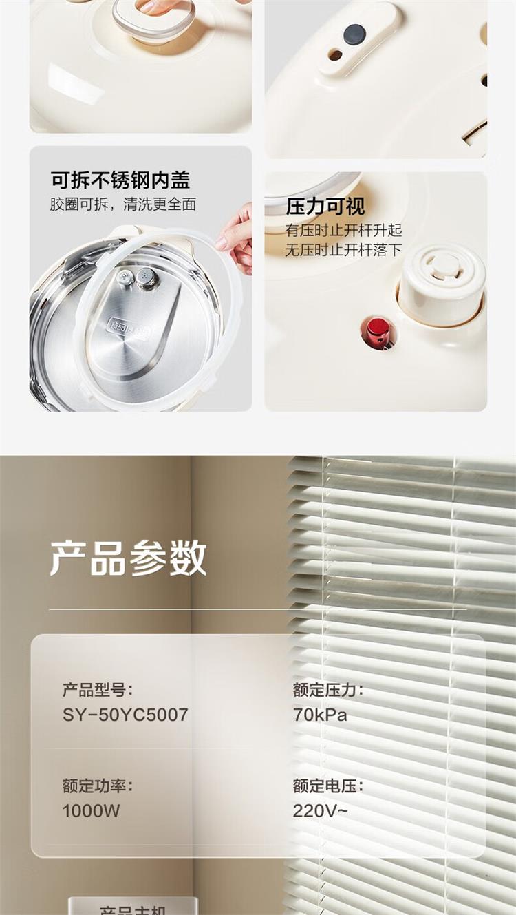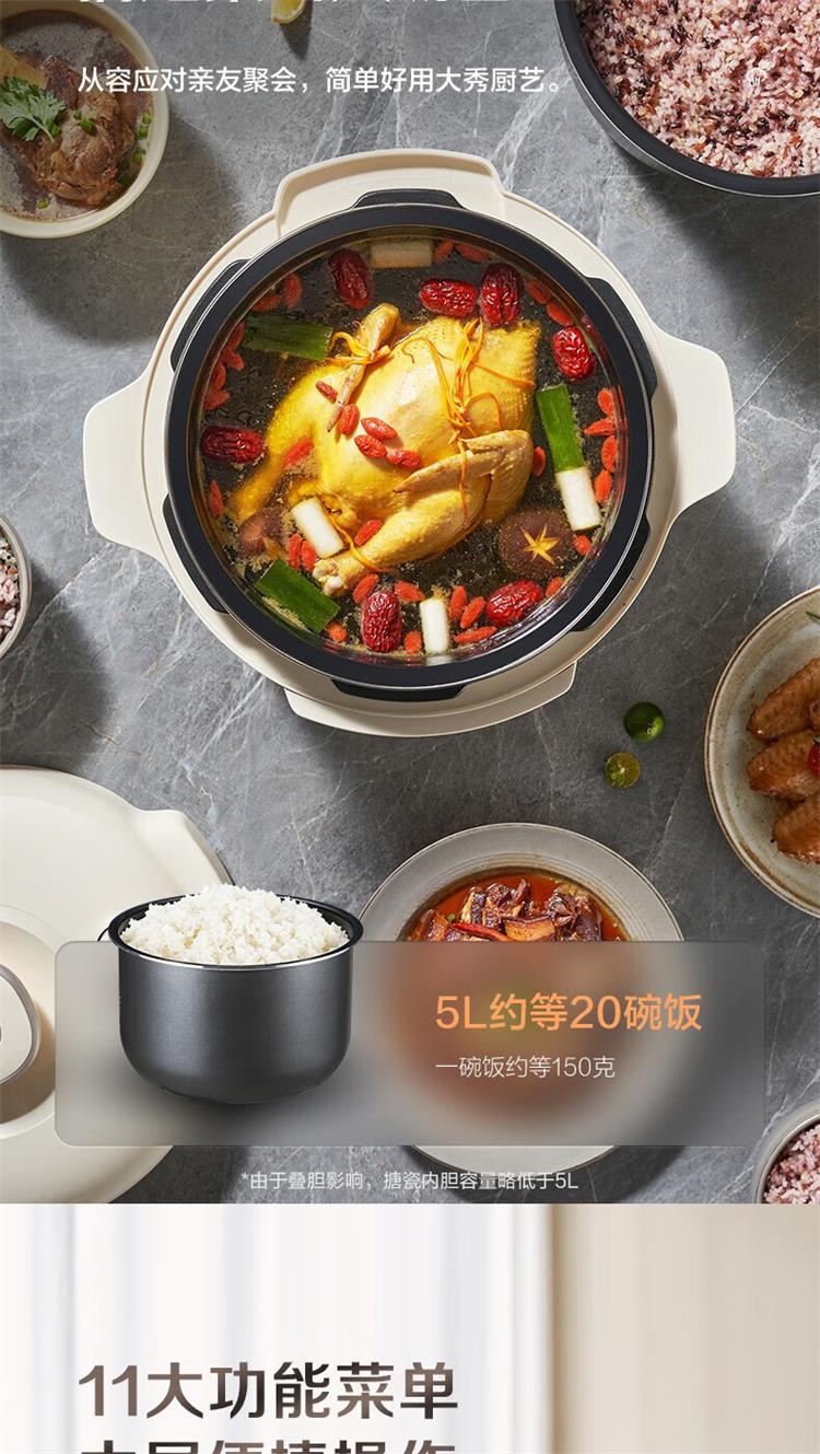 苏泊尔电压力锅5L 双胆 SY-50YC5007