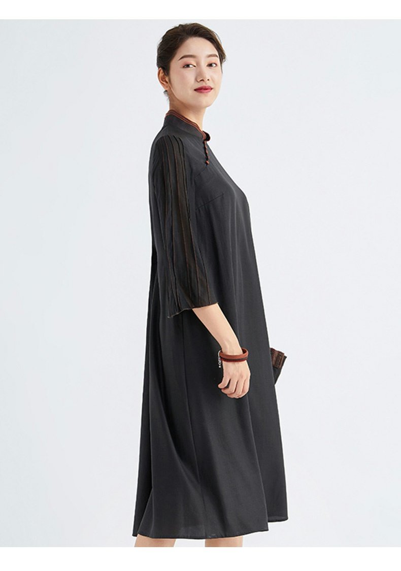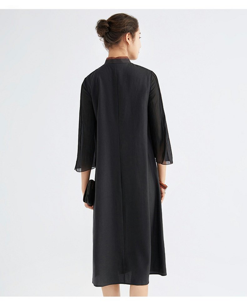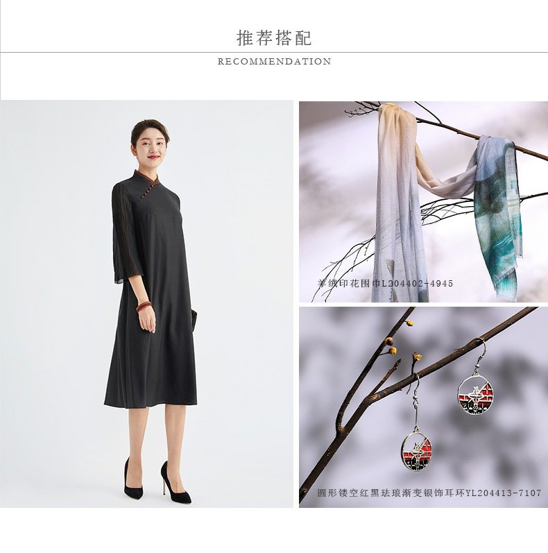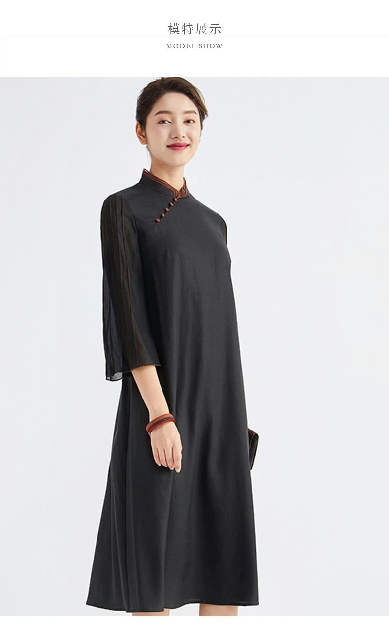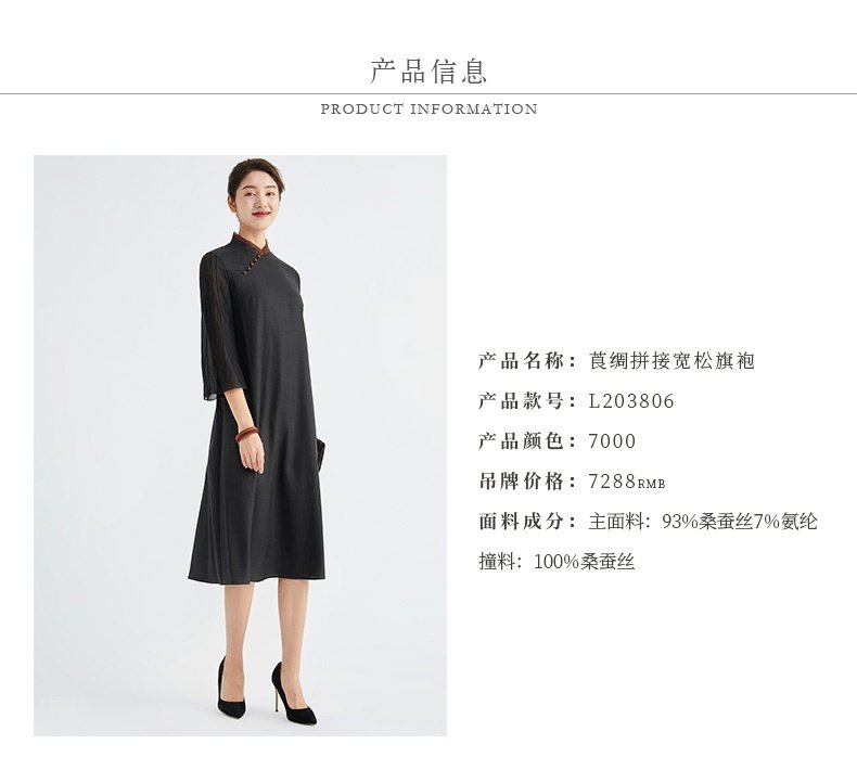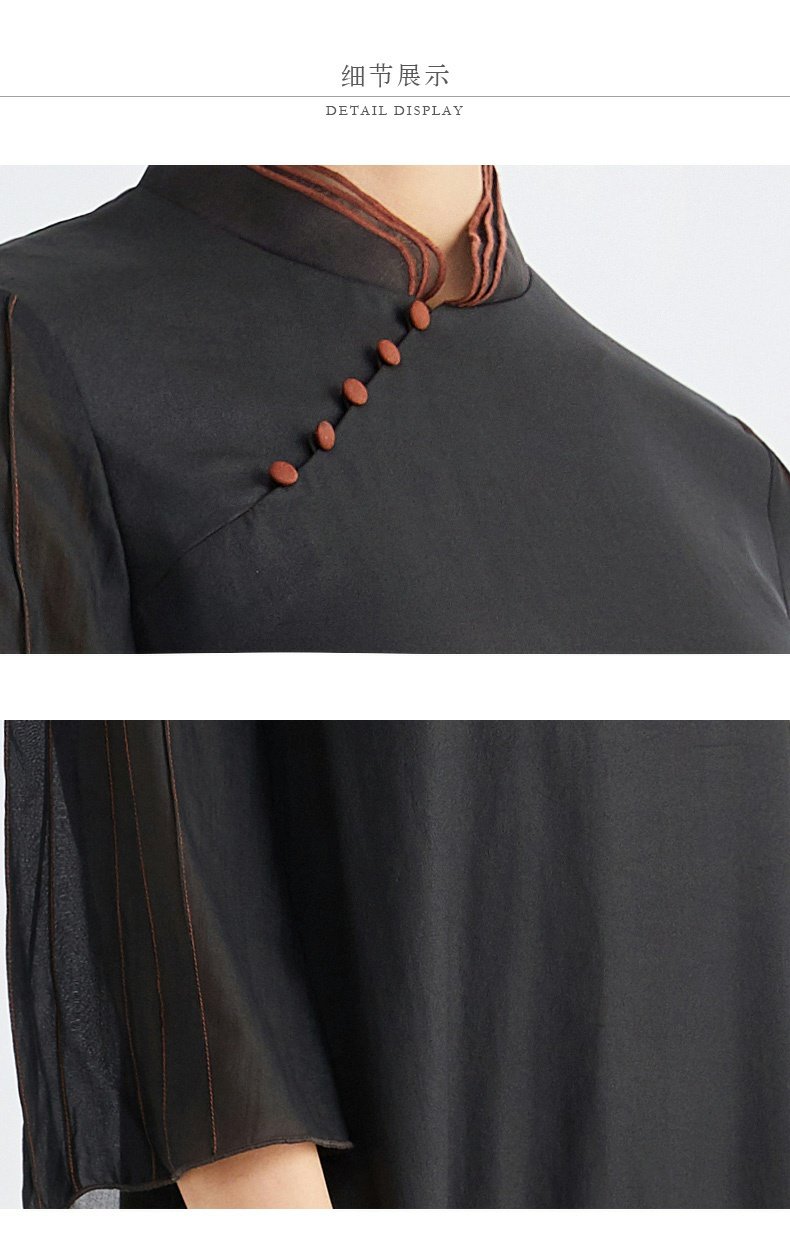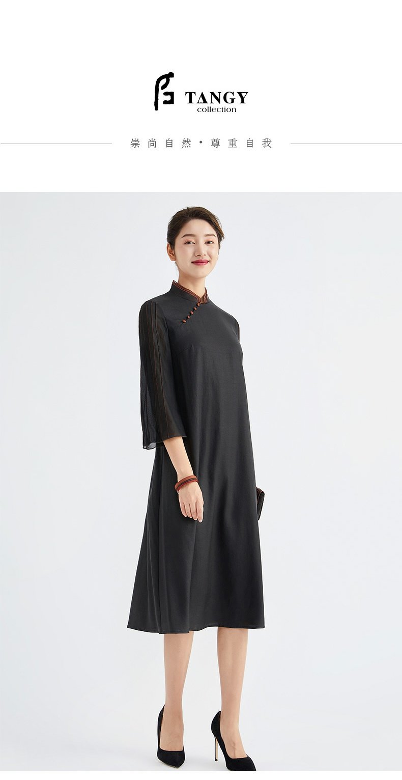 TANGY Collection/天意精品春秋新品林隐系列莨绸拼纱宽松旗袍