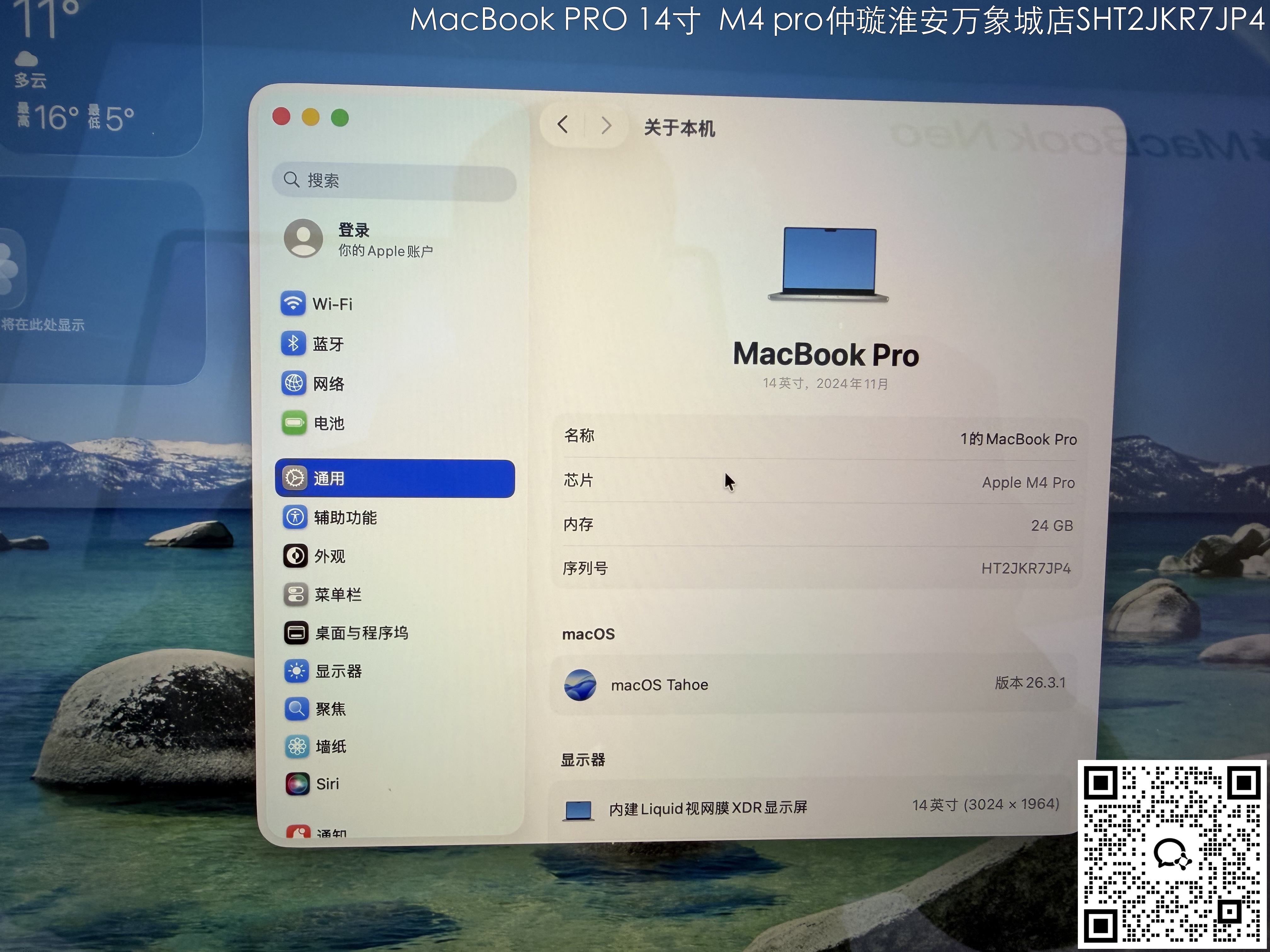 【门店样品】2️⃣14 英寸 MacBook Pro: Apple M4 Pro 芯片店铺同步在售,库存更新可能不及时看中直接扫码联系店内销售。