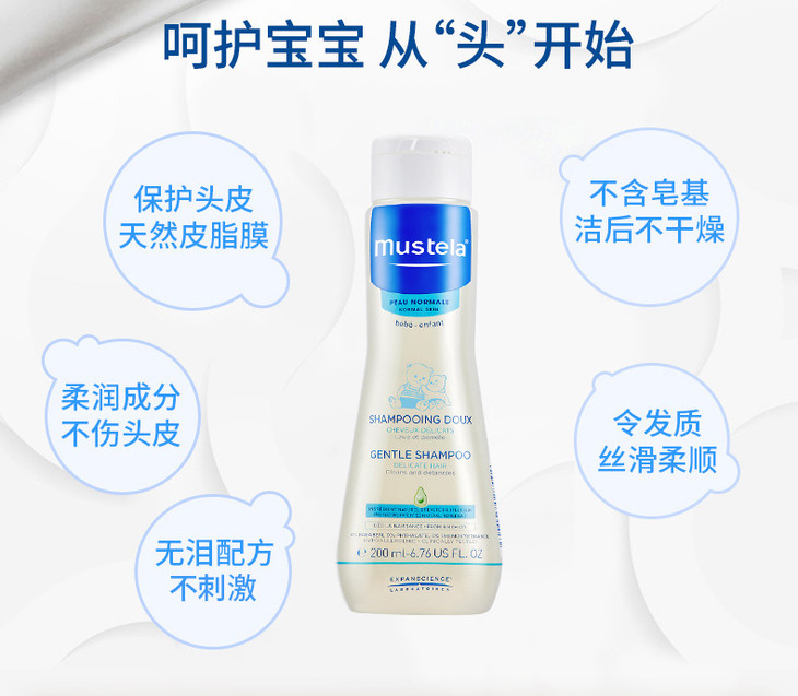 法国妙思乐Mustela婴幼儿洗发露200ml