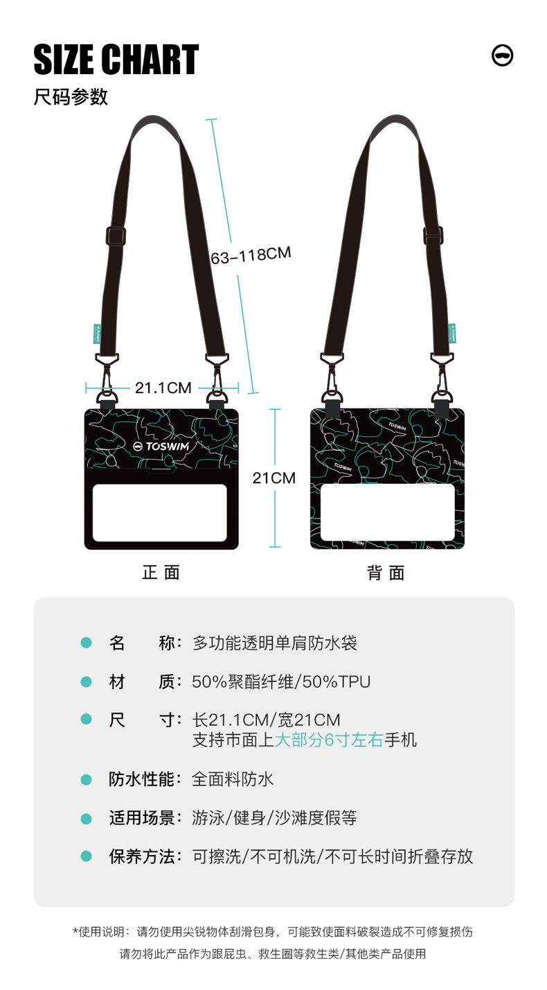TOSWIM手机防水袋潜水套可触屏游泳拍照便携单肩斜跨防水游泳包