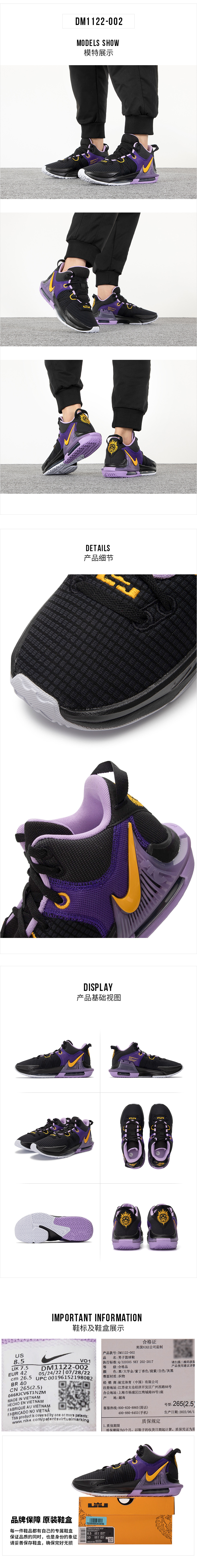 nike耐克 篮球鞋 22秋季新款詹姆斯耐磨轻便透气舒适休闲鞋跑步鞋实战防滑耐磨场上运动鞋 DM1122-002
