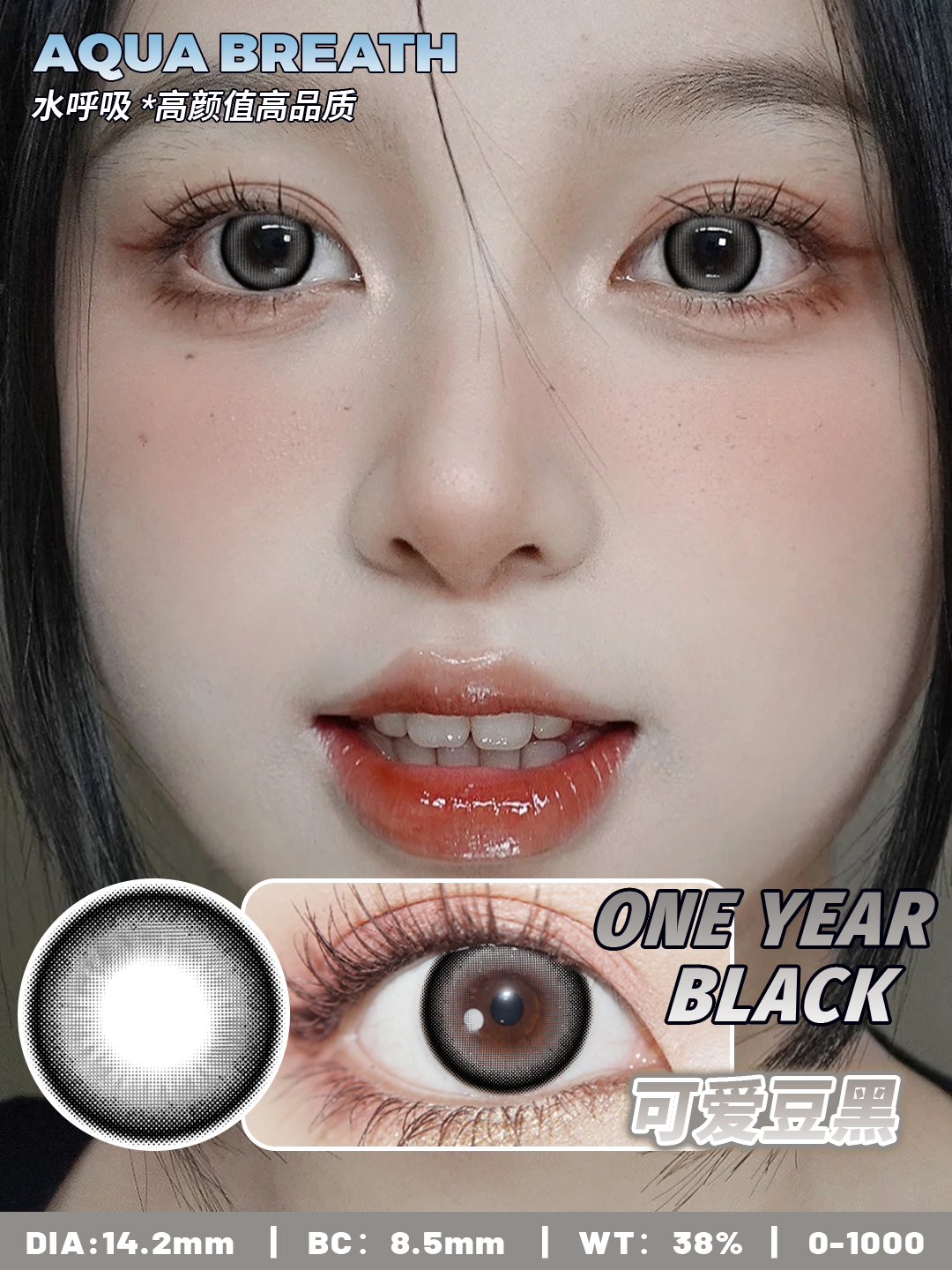 【瓶装】水呼吸·半年抛度数新款小黑豆/糖心奶栗/初恋眼/赫本黑 0-1000 ~美瞳