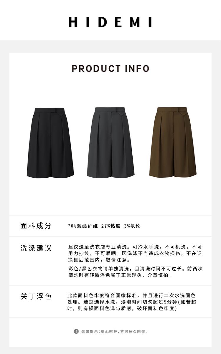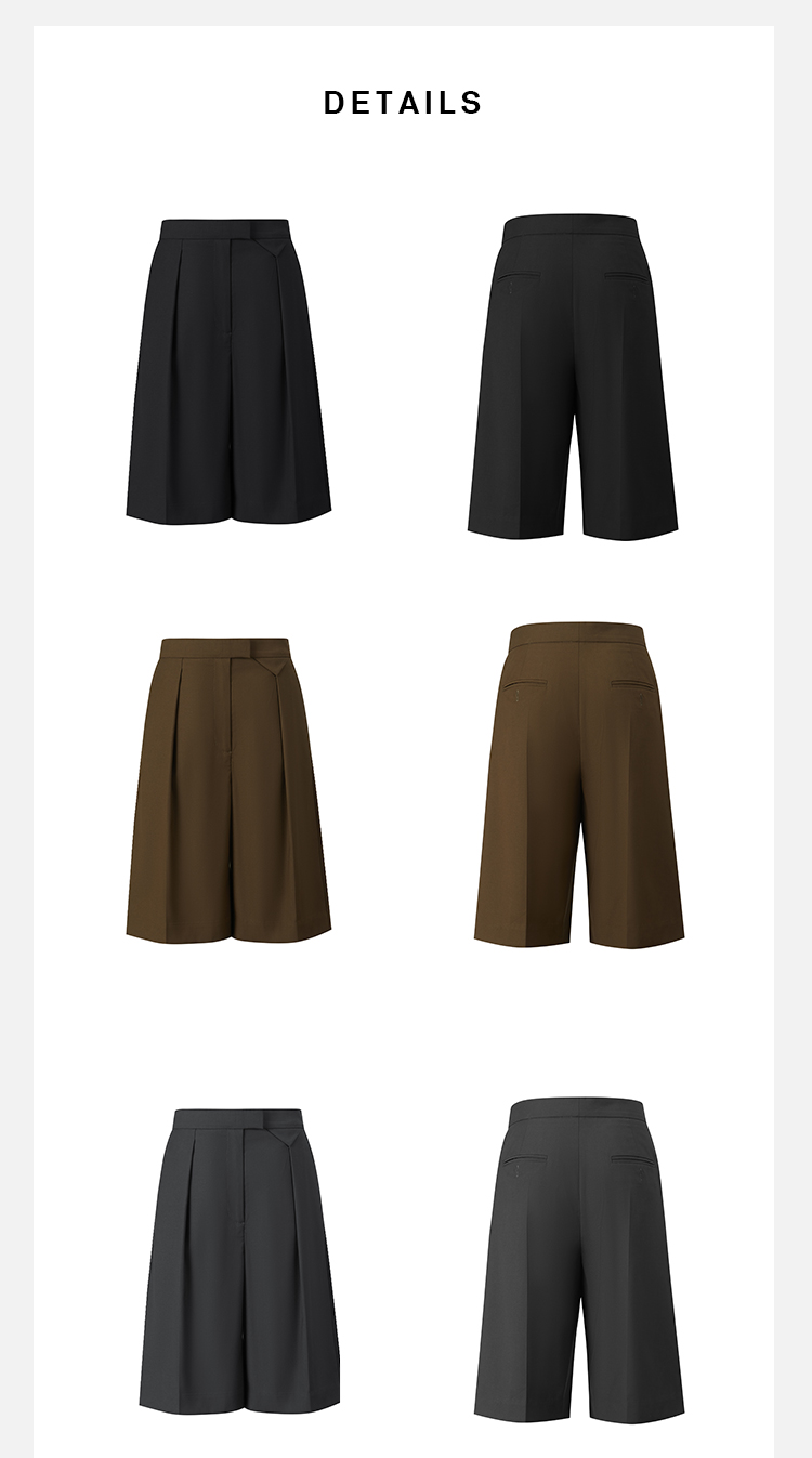 HIDEMI度假系列口袋极简设计感西裤式中短裤 棕绿/深灰/黑色
