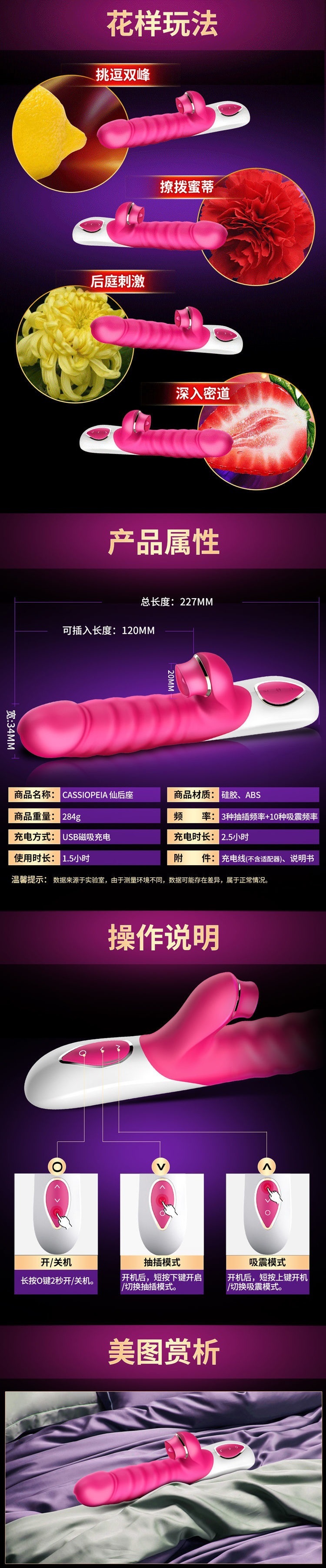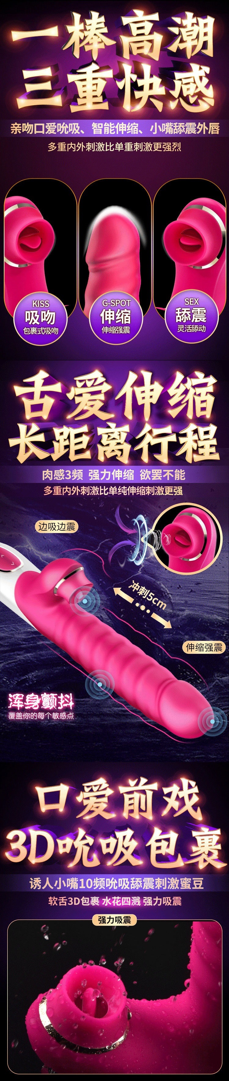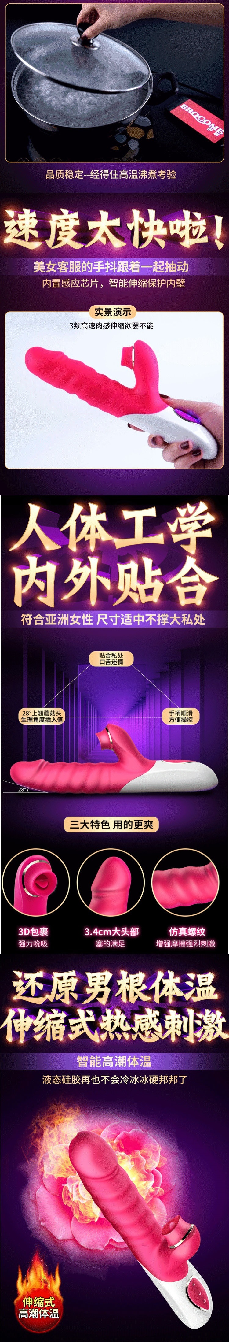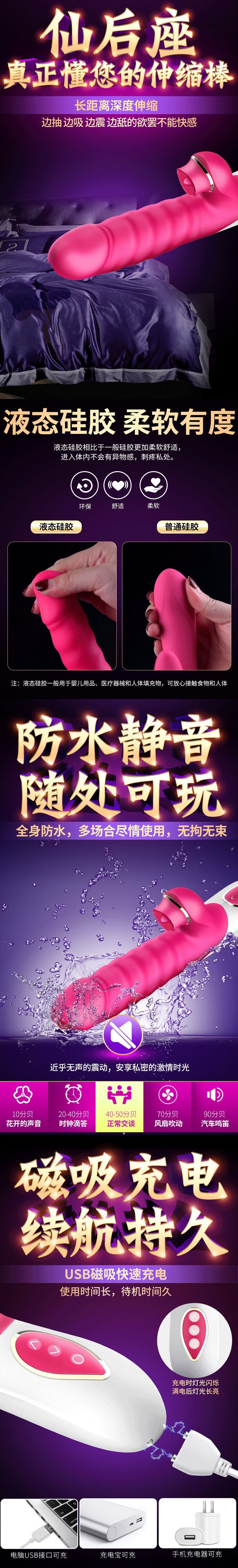 伊珞EROCOME震动棒插入式自慰器女用伸缩吮吸转珠棒成人用品女性性玩具av振动棒按摩棒房事自卫情趣用品