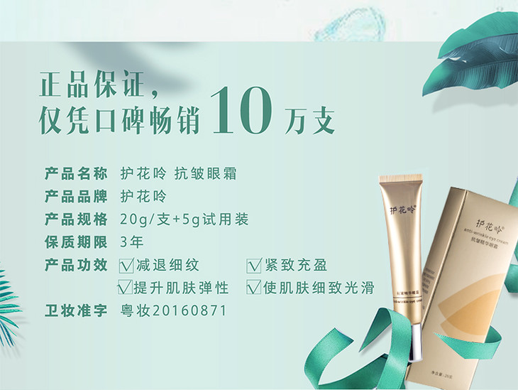 【k衰改善皱纹眼霜 送5g试用装】老牌国货“护花呤”