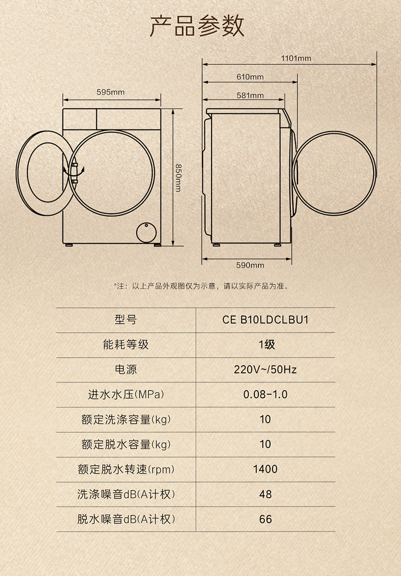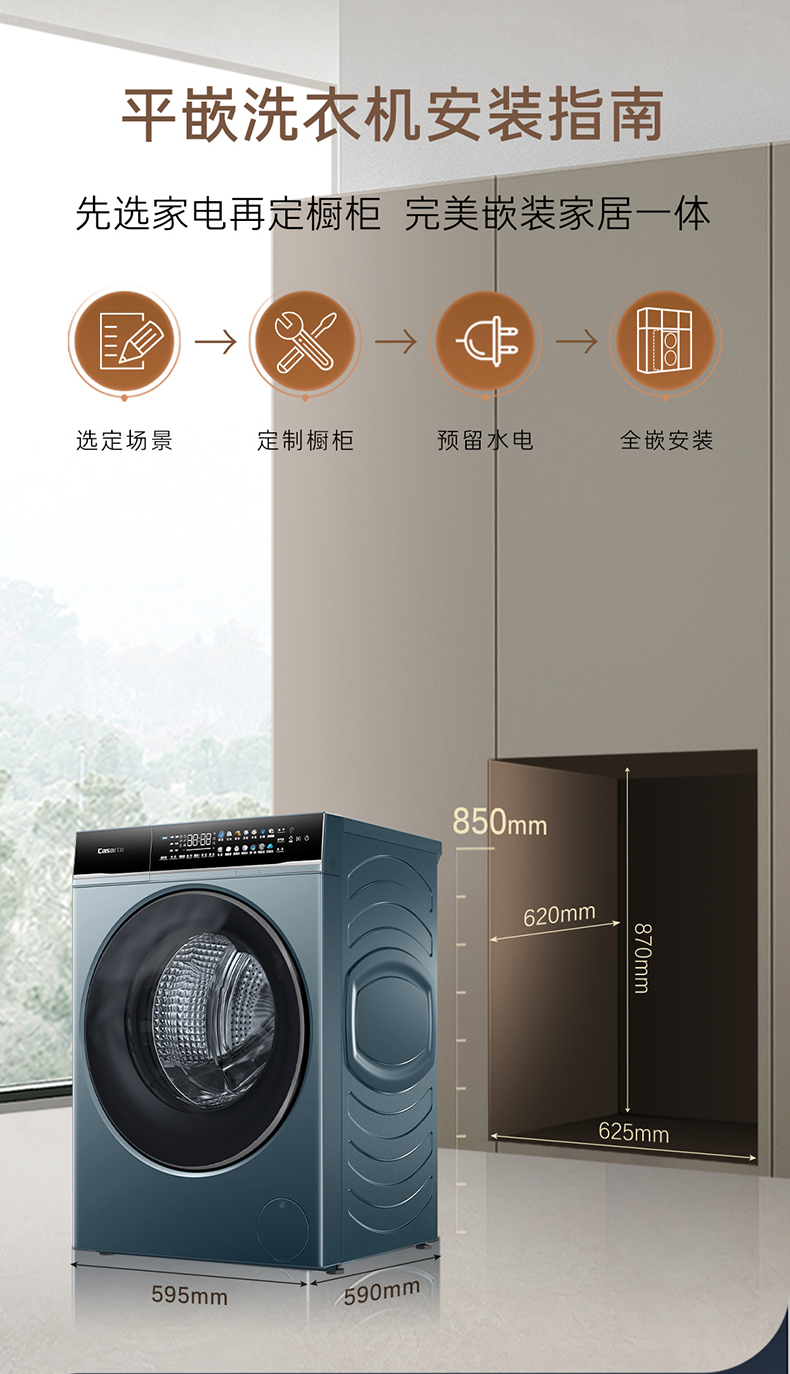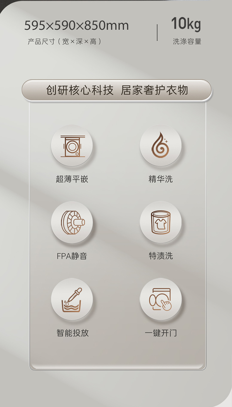 【卡萨帝揽光】超薄10kg家用全自动直驱除菌洗脱滚筒洗衣机LB单洗