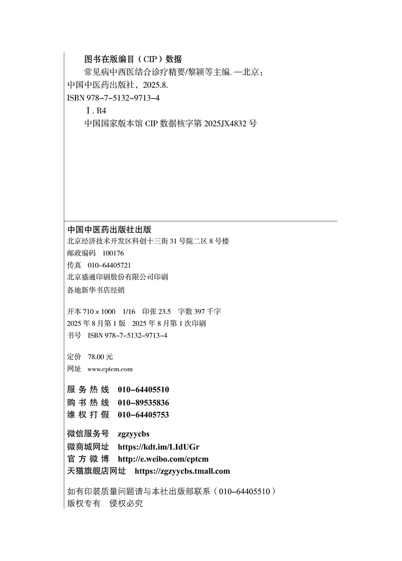常见病中西医结合诊疗精要 黎颖 宋娜 骆言 吴玥 郭佳 涵盖心血管系统 消化系统 泌尿生殖系统等及肿瘤等领域 中国中医药出版社