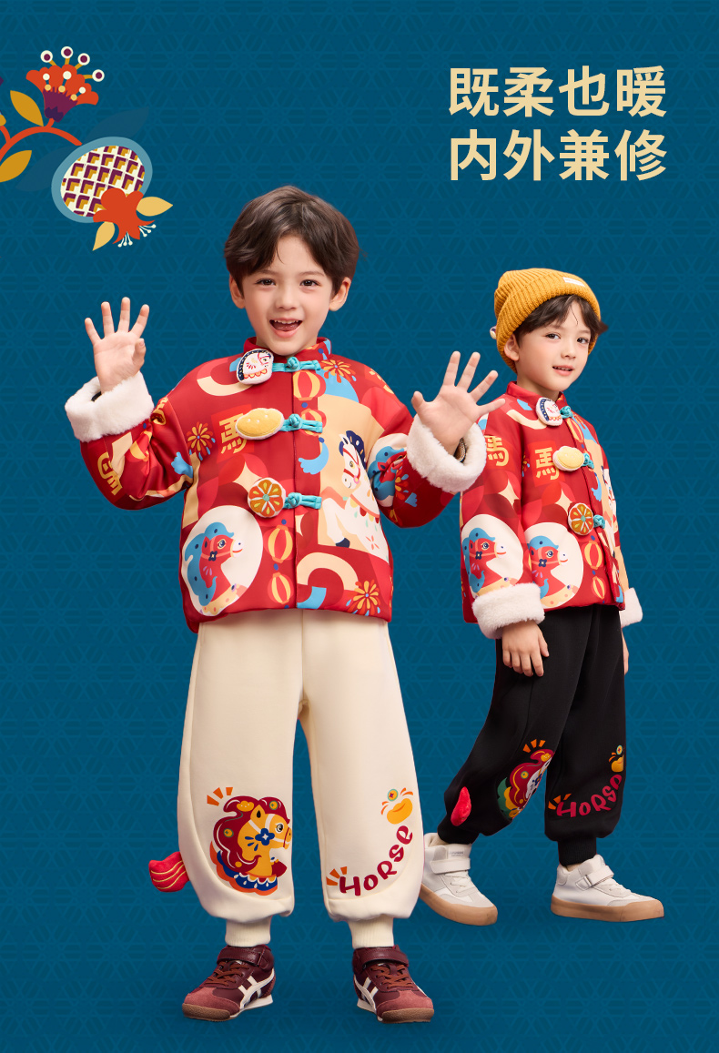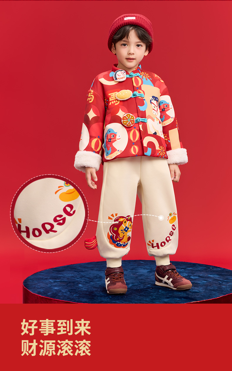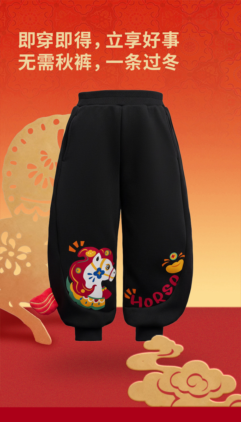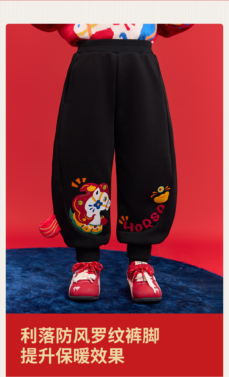 年衣童装加绒冬季新款女童休闲裤新中式国风加厚接好事加绒长裤