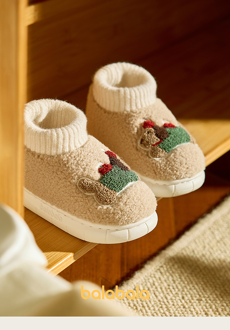 巴拉巴拉童鞋儿童拖鞋男女童2025年新款冬外穿室内加绒家居包跟鞋