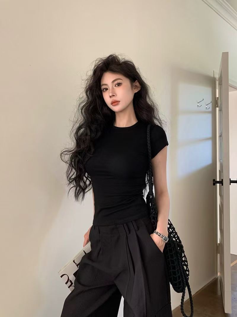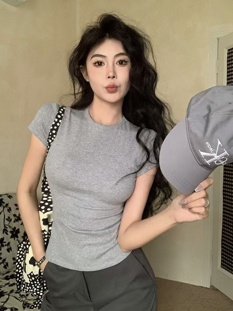 【19.9抢❗爆款正肩修身T恤】穿出小蛮腰,百搭版型上身显瘦,吸湿透气不闷热,夏季正肩t恤白色短袖女修身辣妹短款打底衫新款圆领外穿QQ