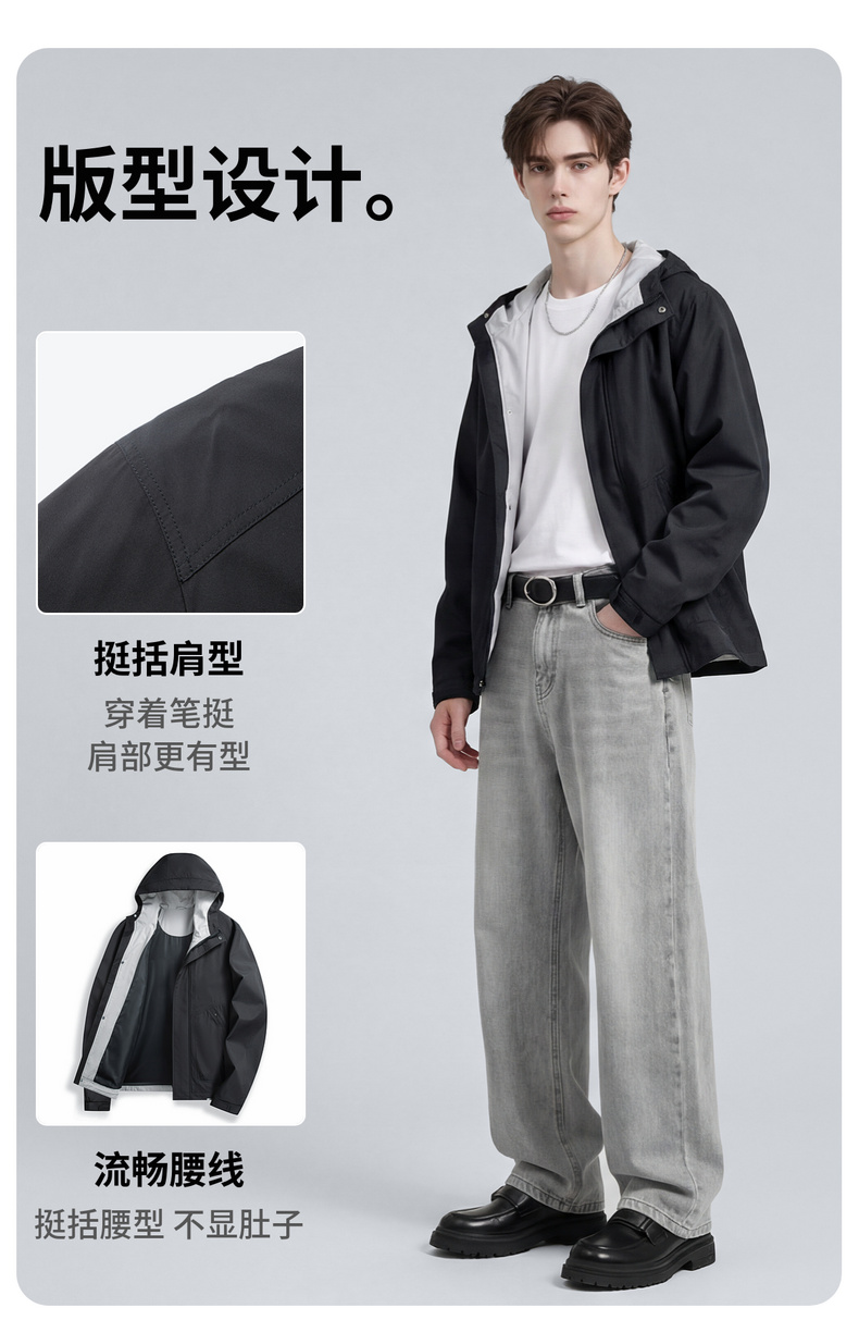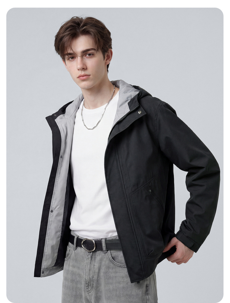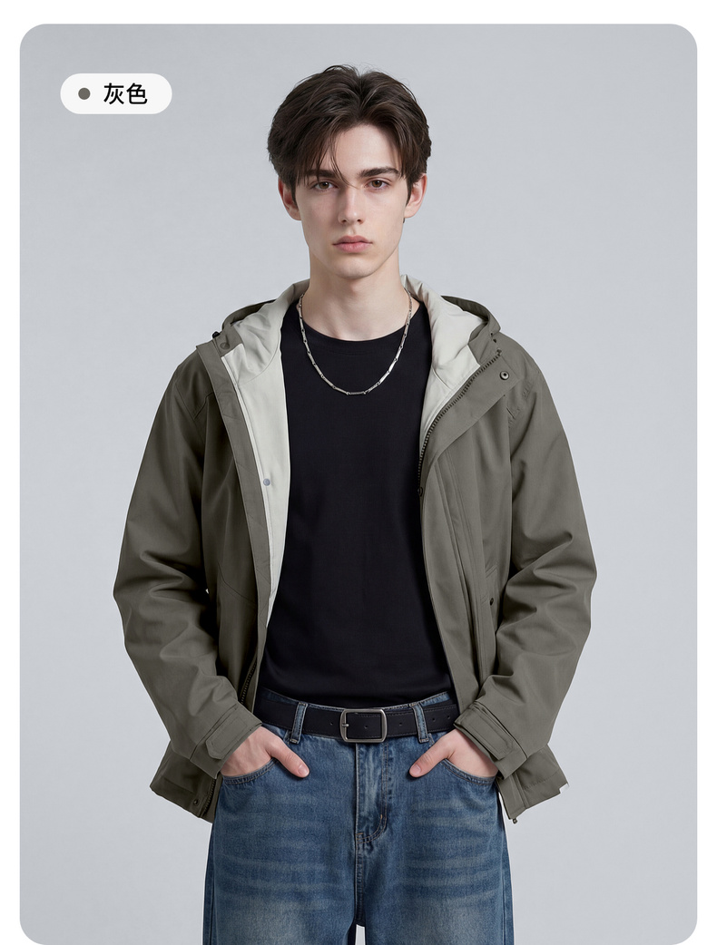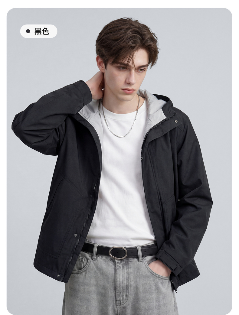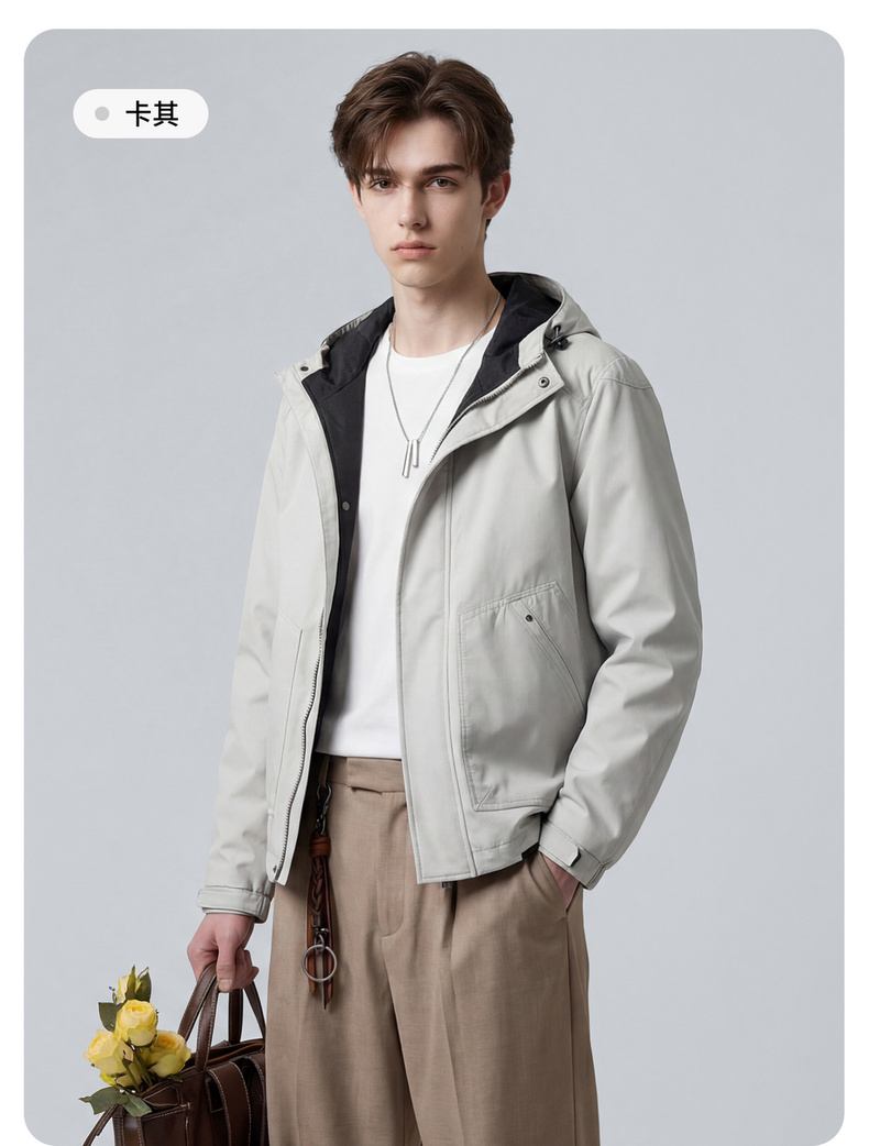 【休闲风】圣得西时尚工装连帽夹克外套男款2026新款春季撞色上衣