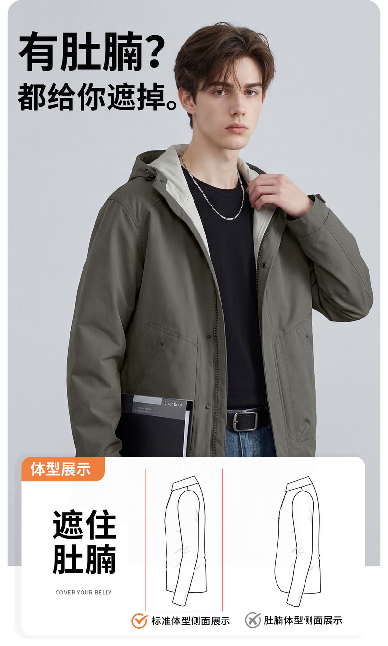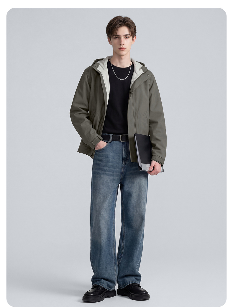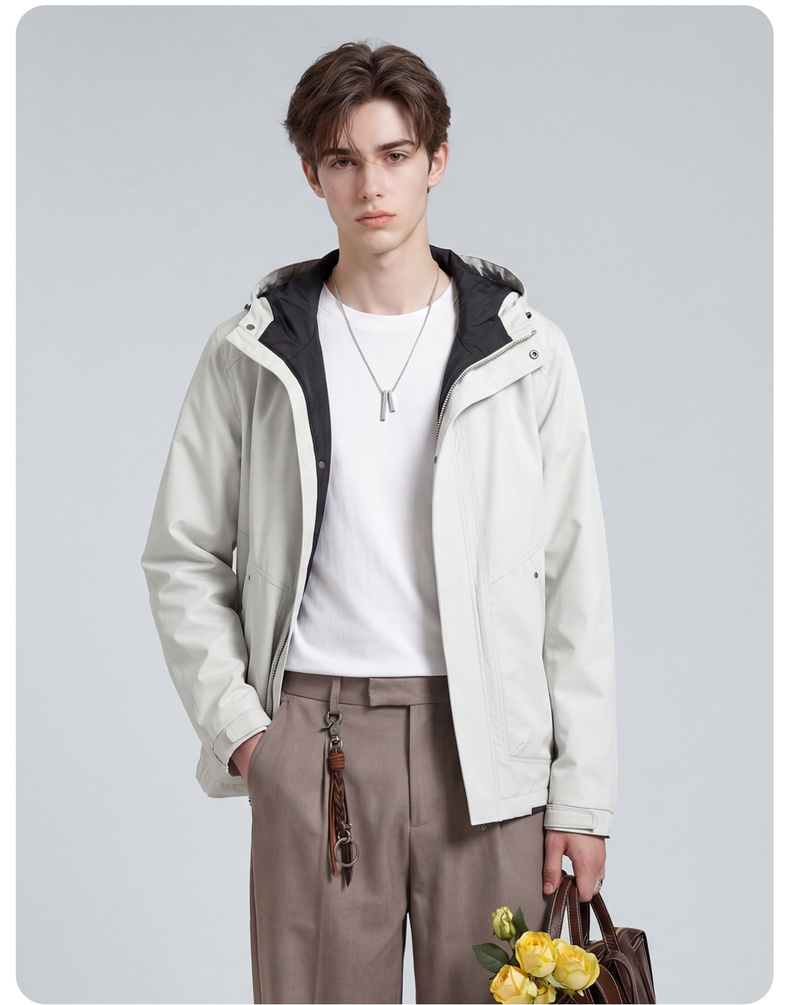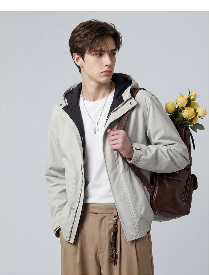 【休闲风】圣得西时尚工装连帽夹克外套男款2026新款春季撞色上衣