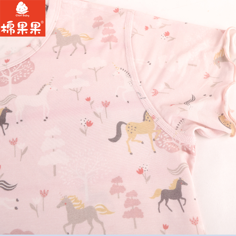 棉果果夏季新品5A抗菌女童80-130码莫代尔长款套头T恤M221140424329