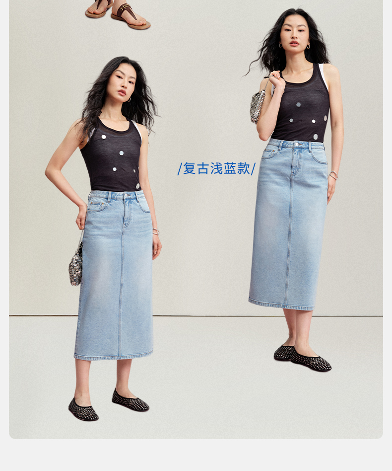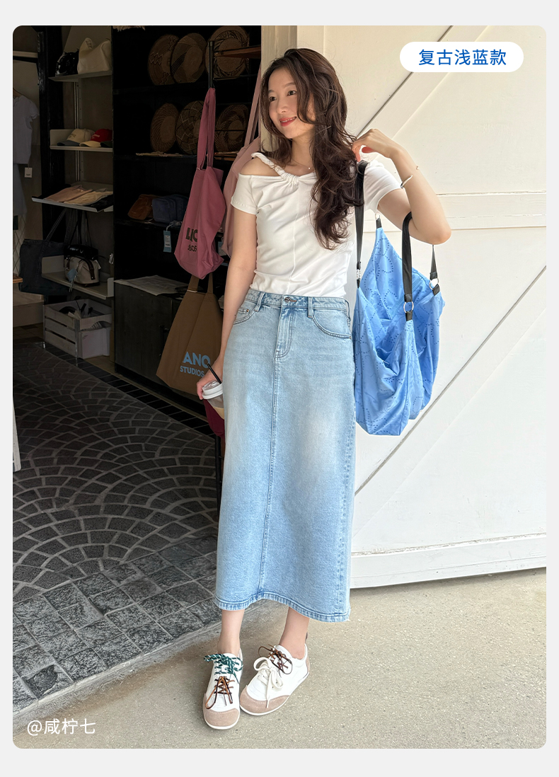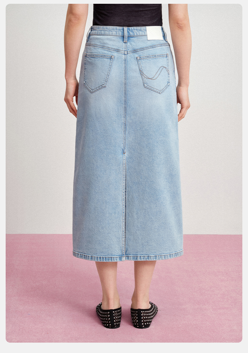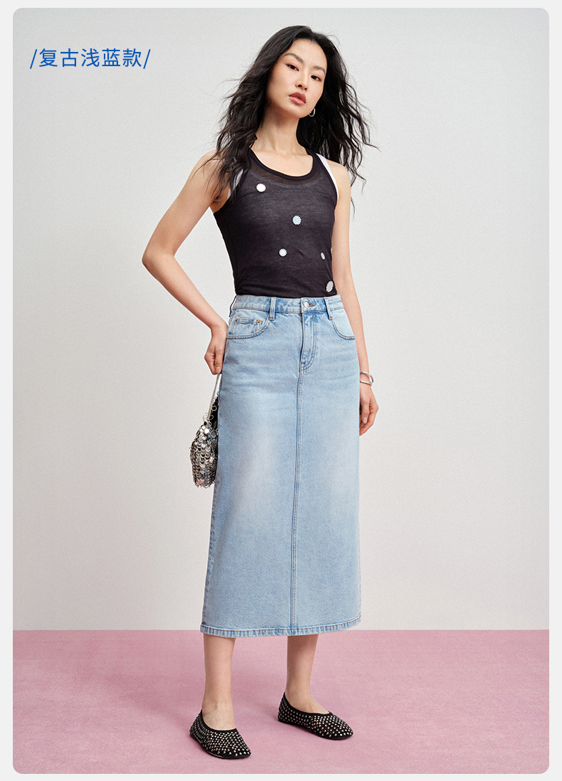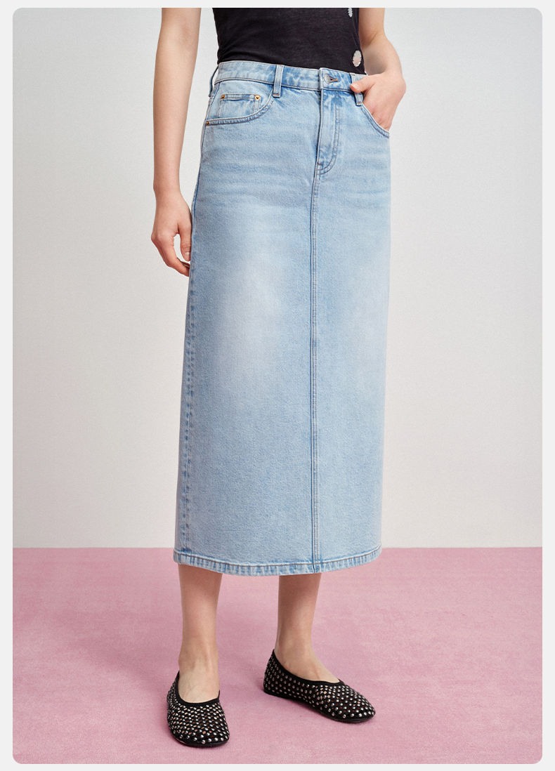 【牛仔半裙】simplepieces夏新款SPS牛仔女显瘦后开叉直筒半身裙