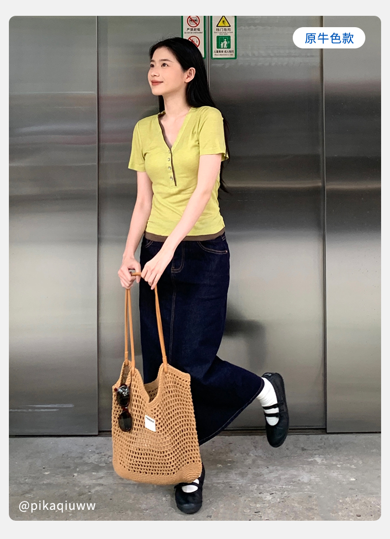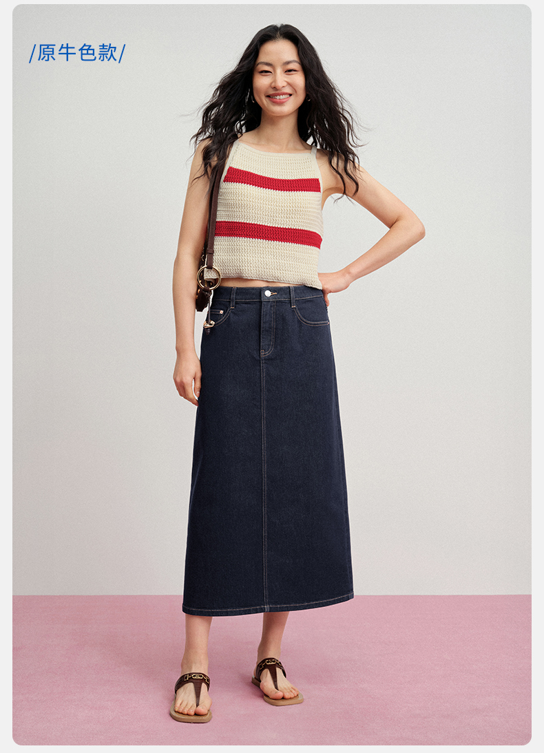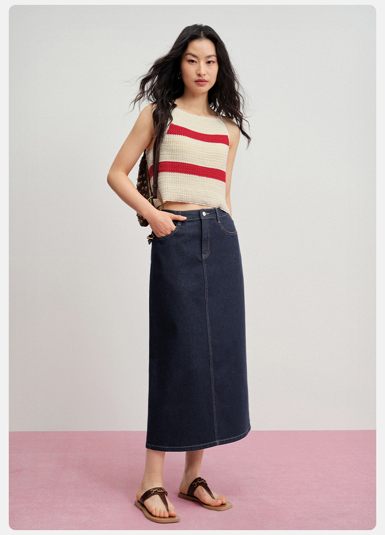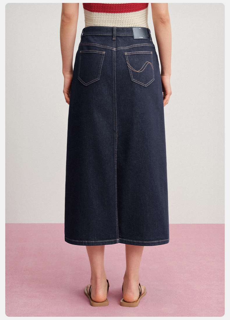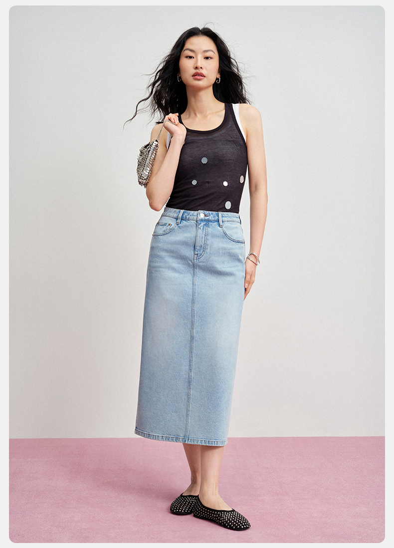 【牛仔半裙】simplepieces夏新款SPS牛仔女显瘦后开叉直筒半身裙