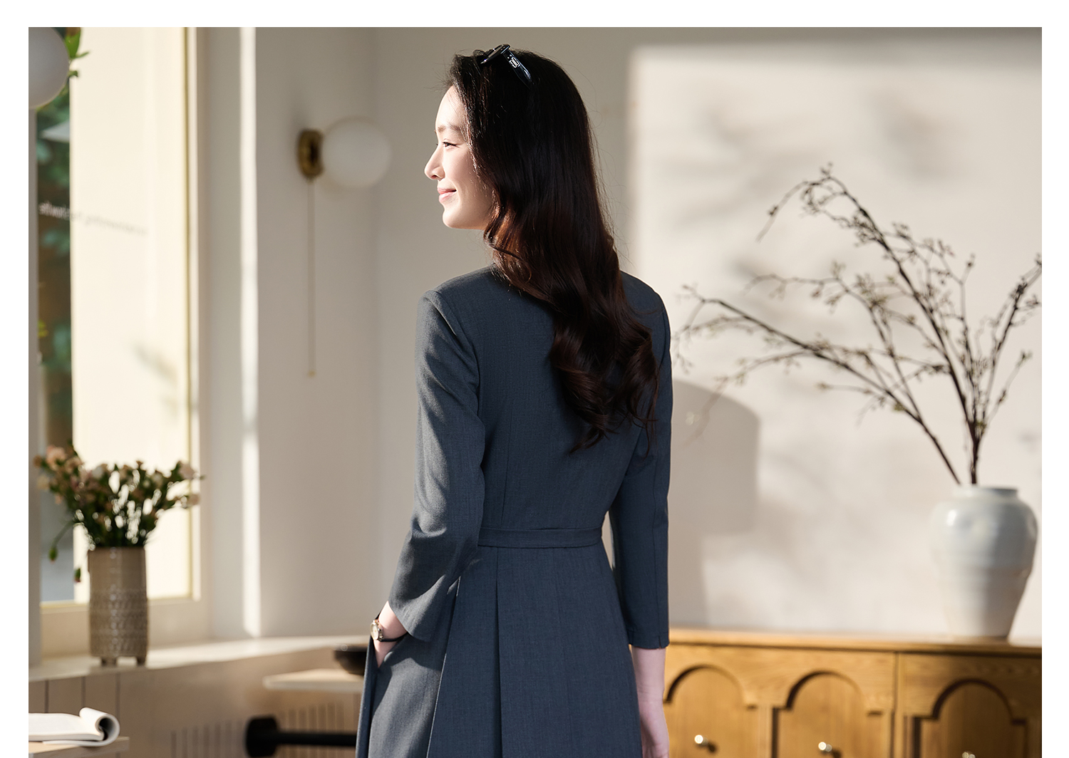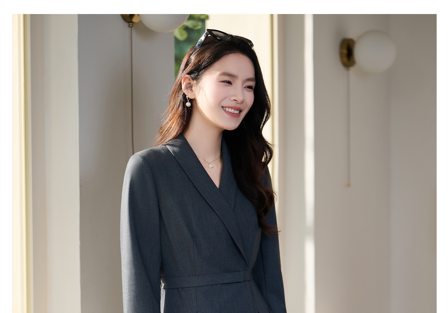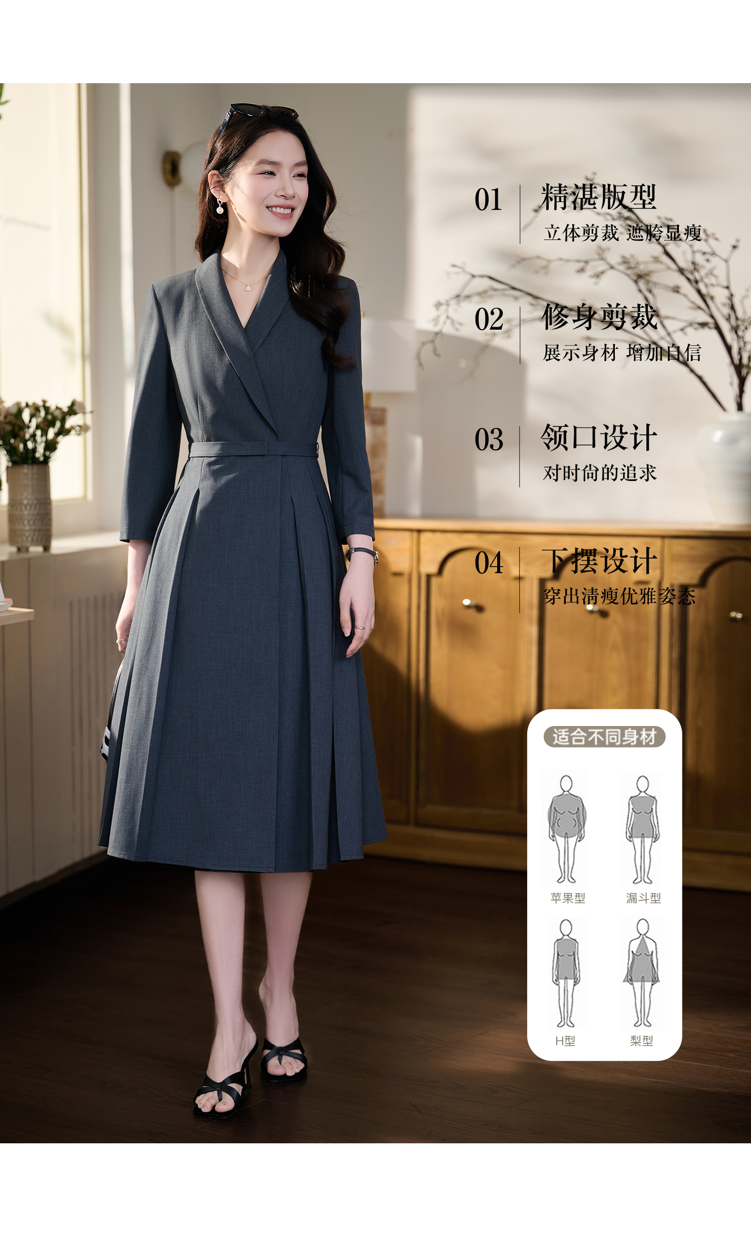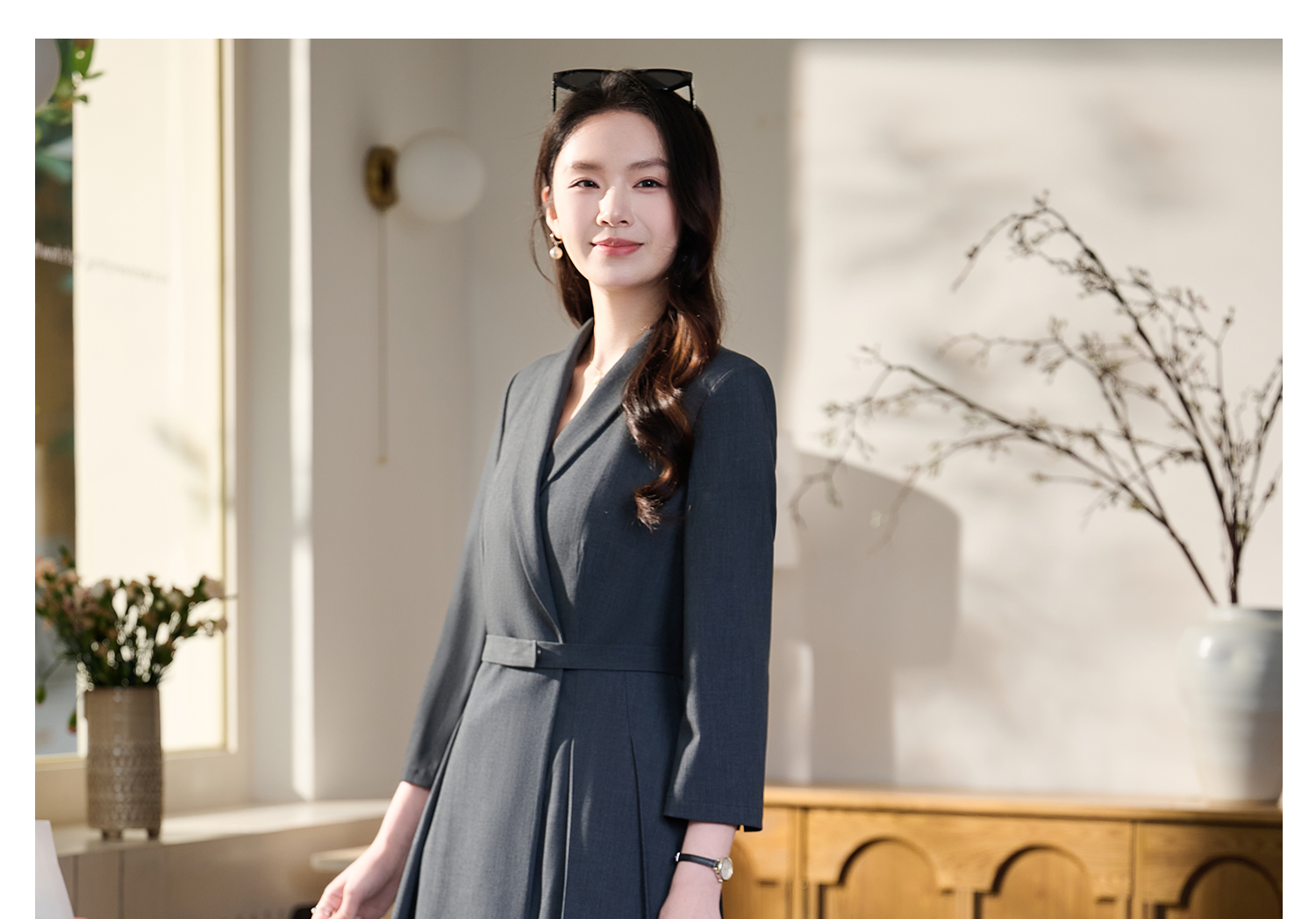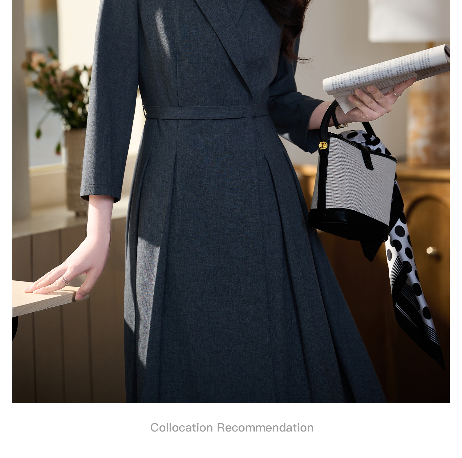 都市精英王妃裙 米思阳2026春季新款青果领通勤OL裙子女修身减龄职场西装连衣裙女1031