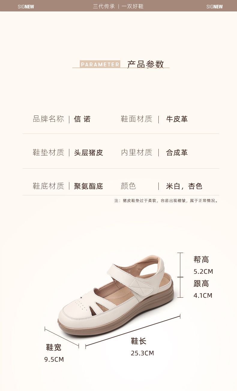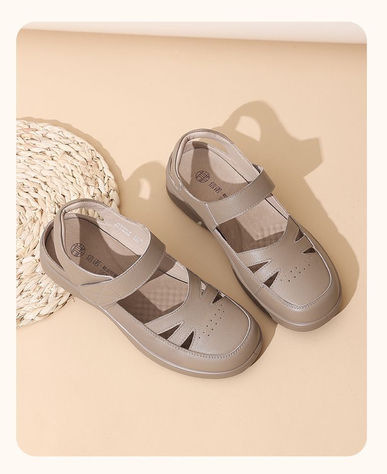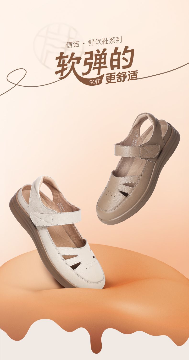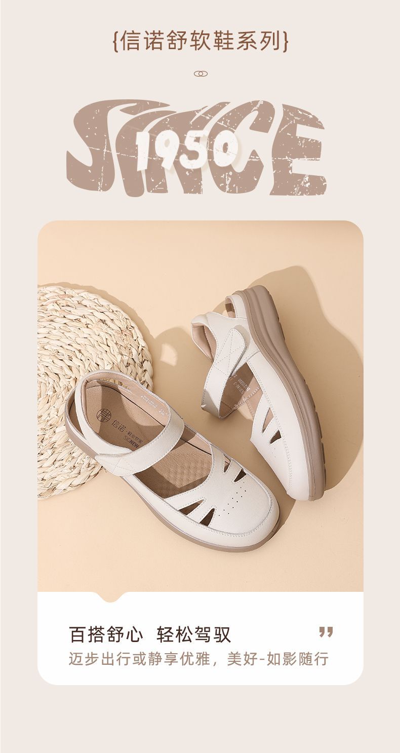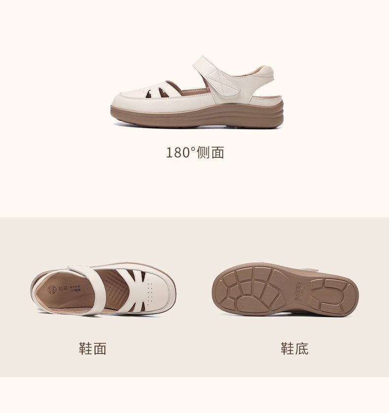 信诺真皮罗马凉鞋镂空包头女鞋2025夏季透气凉鞋舒适软底妈妈鞋子5C8166-3