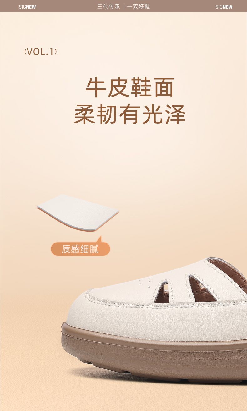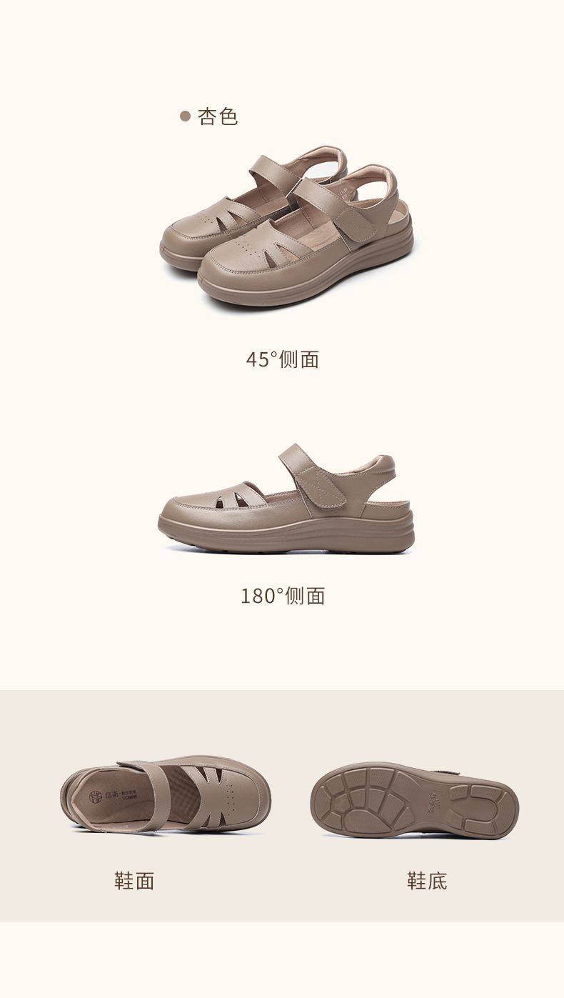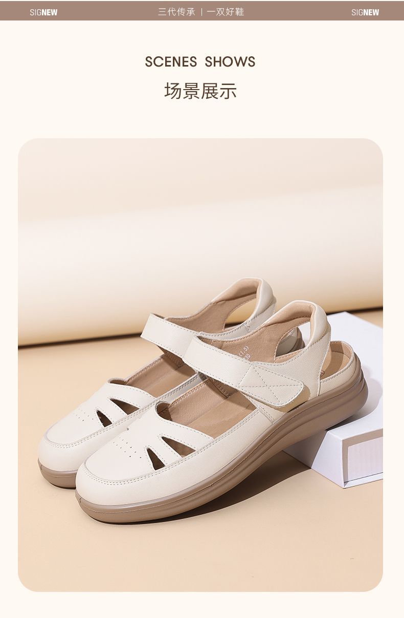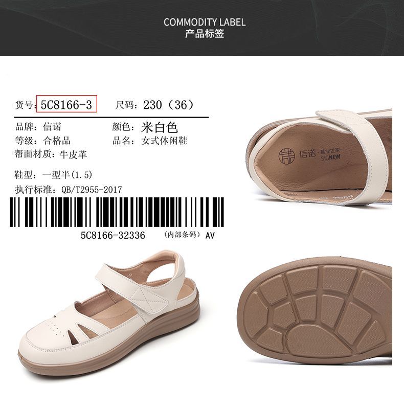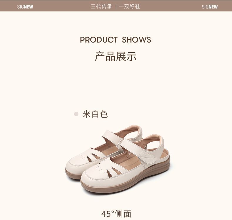 信诺真皮罗马凉鞋镂空包头女鞋2025夏季透气凉鞋舒适软底妈妈鞋子5C8166-3