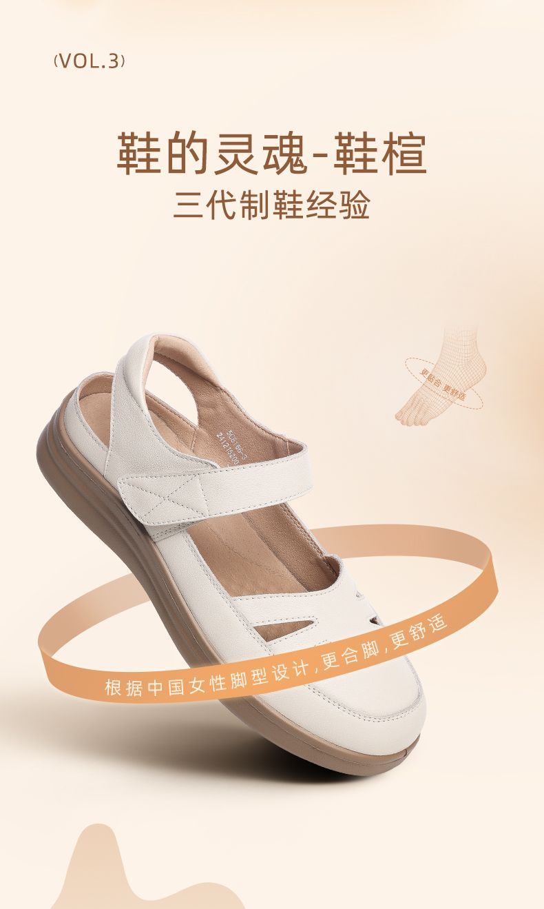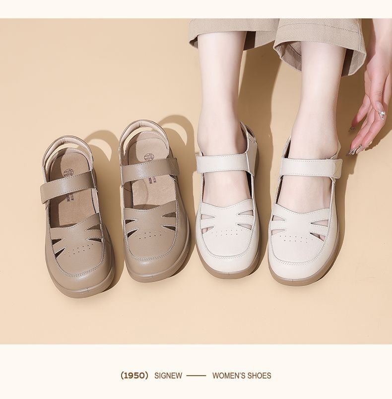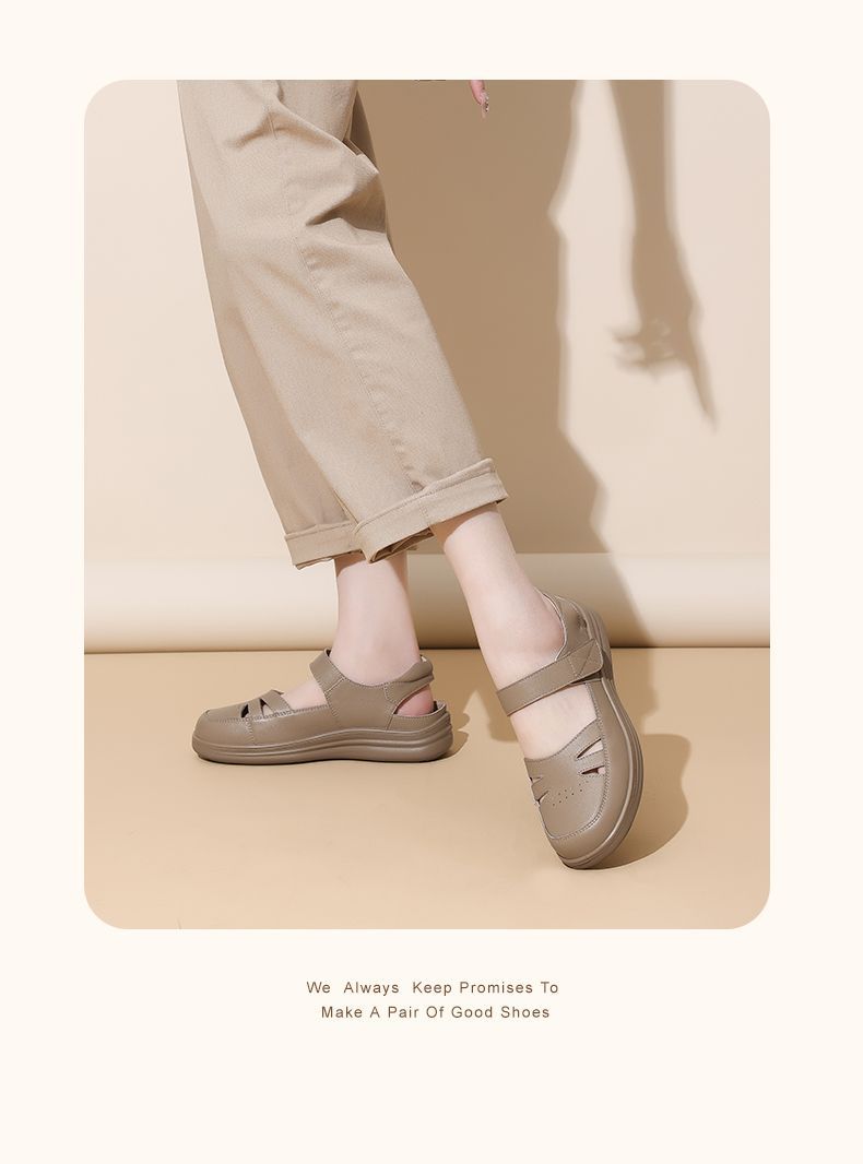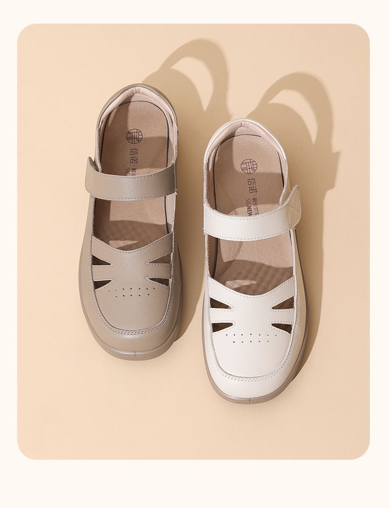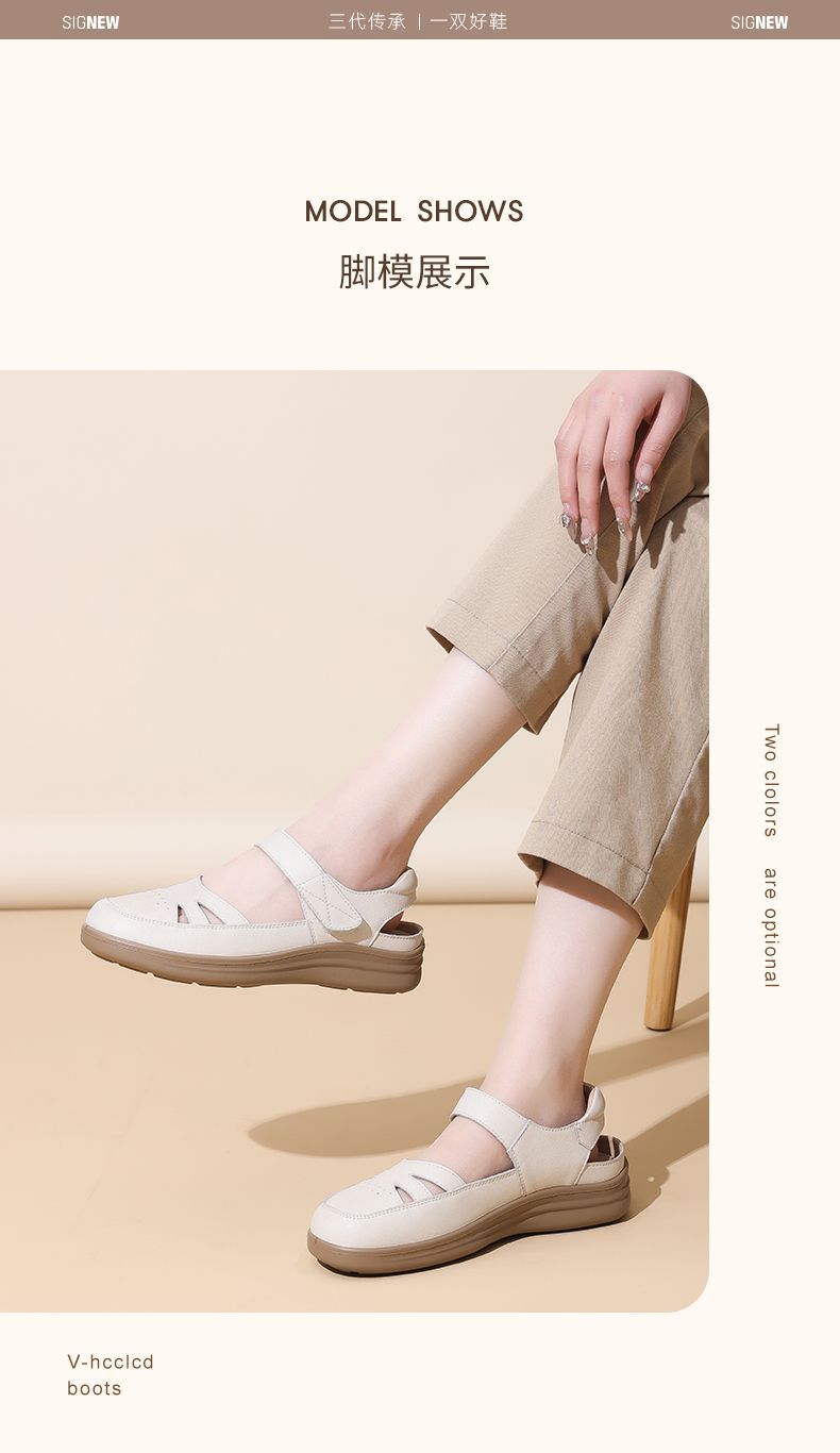 信诺真皮罗马凉鞋镂空包头女鞋2025夏季透气凉鞋舒适软底妈妈鞋子5C8166-3