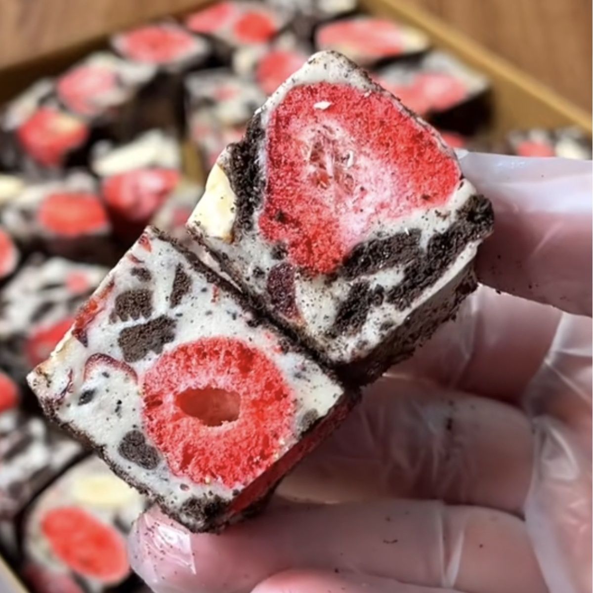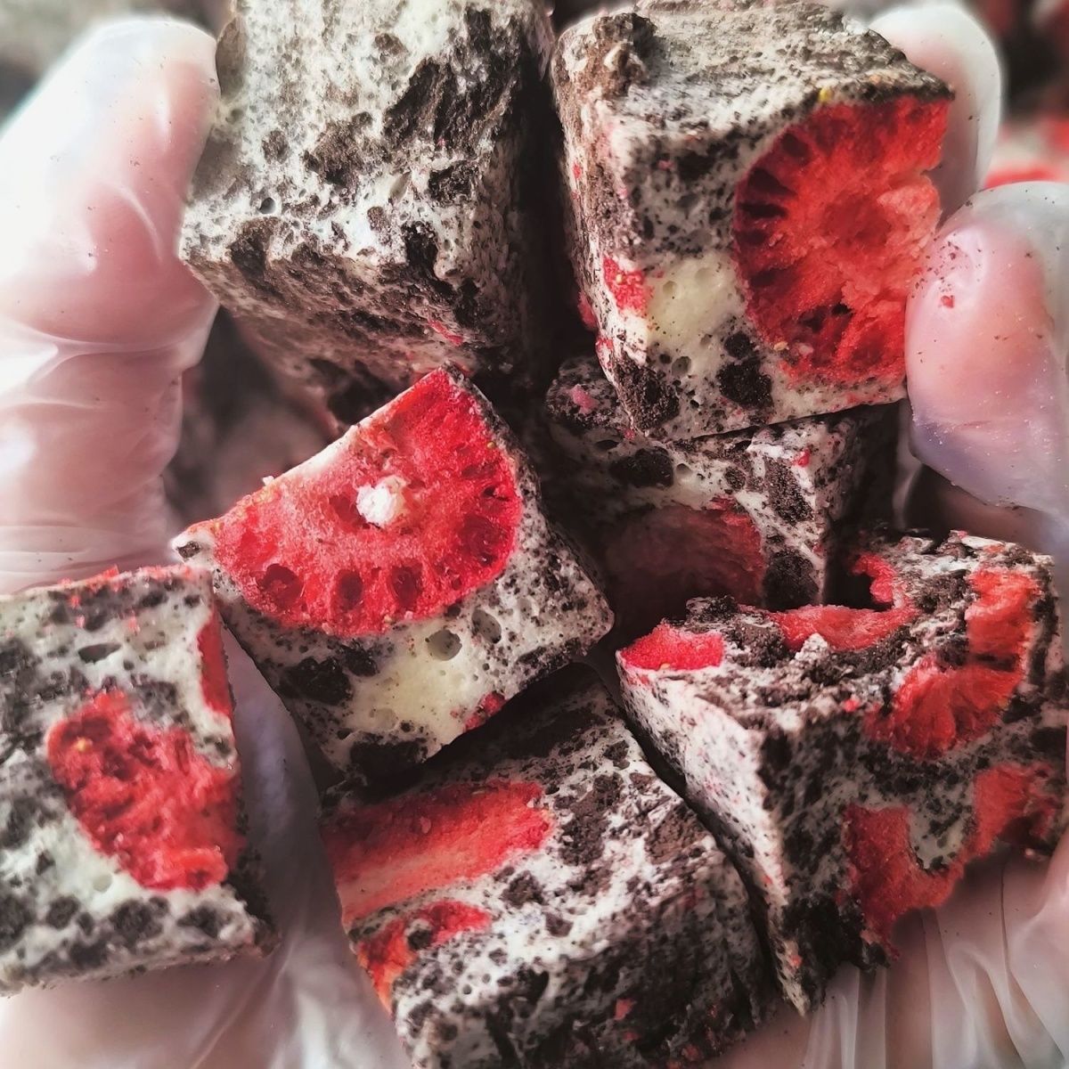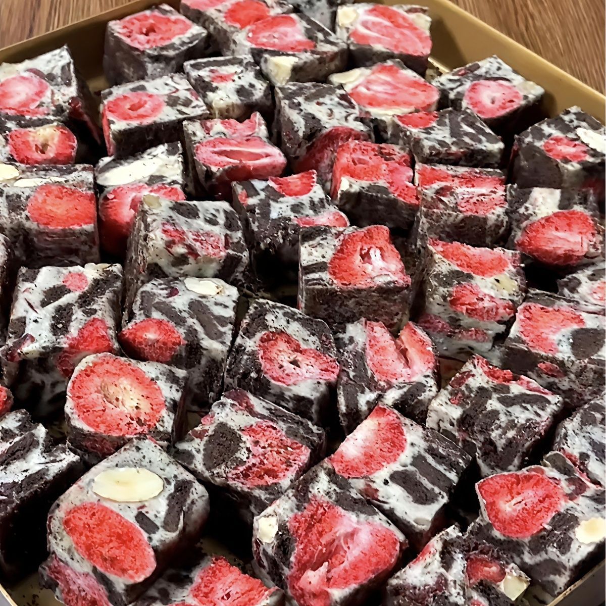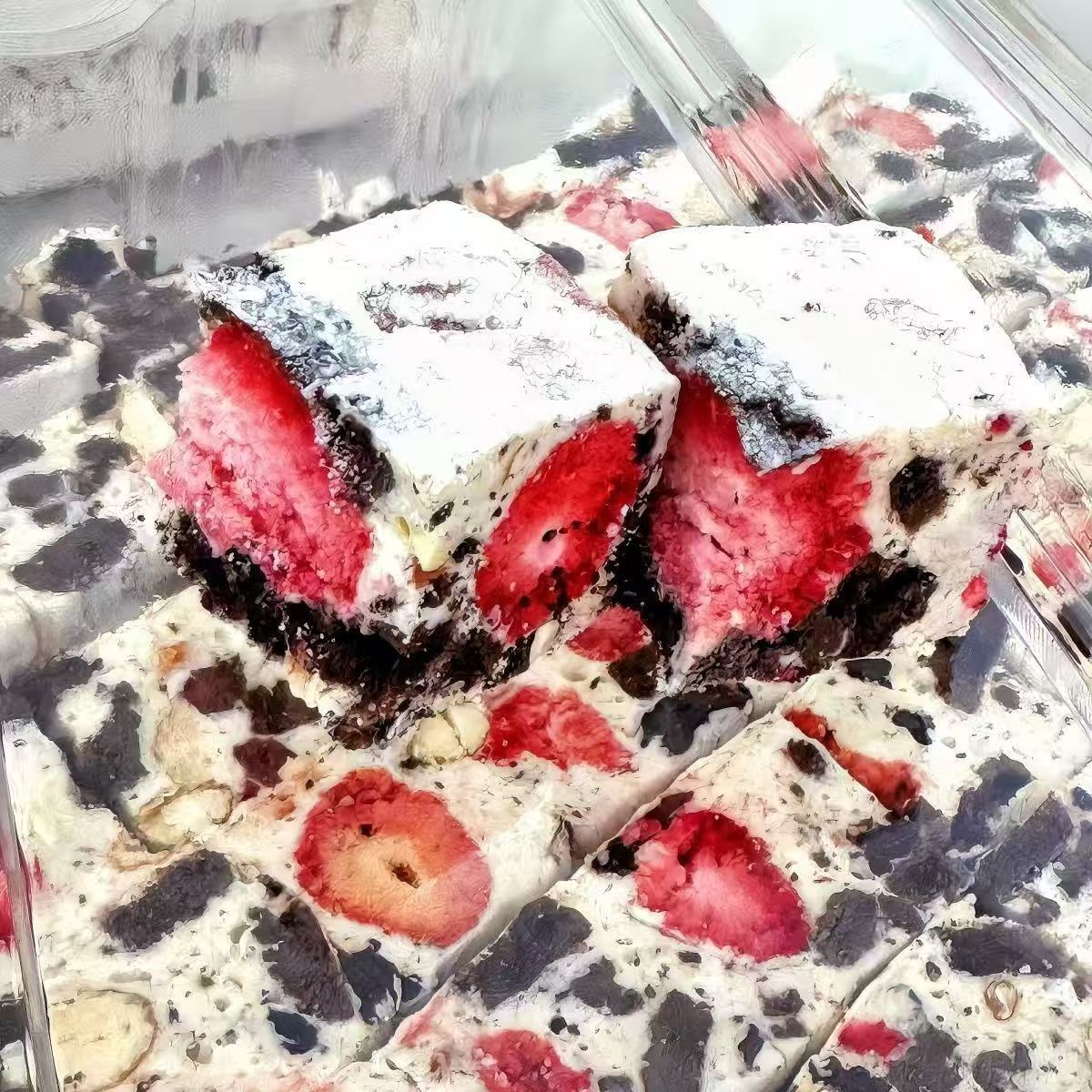 奥利碎巧克力味草莓羊奶芙网红休闲零食雪花酥草莓干糕点心 代发